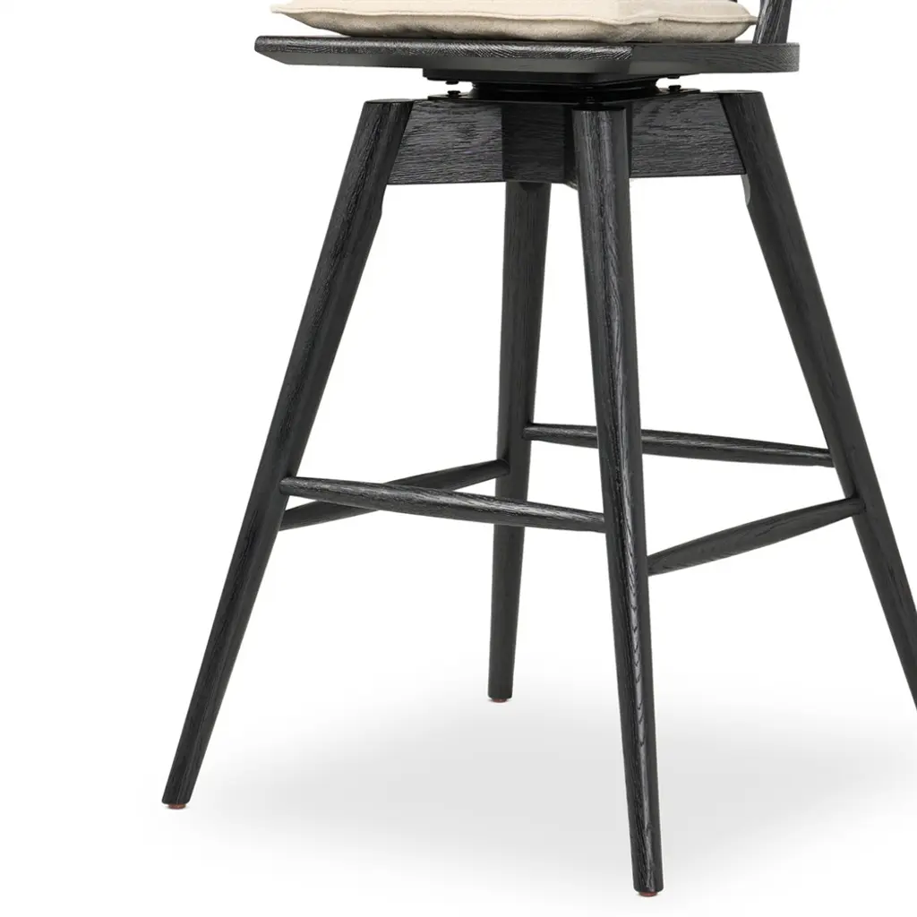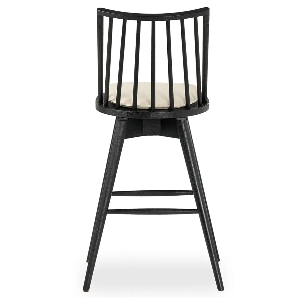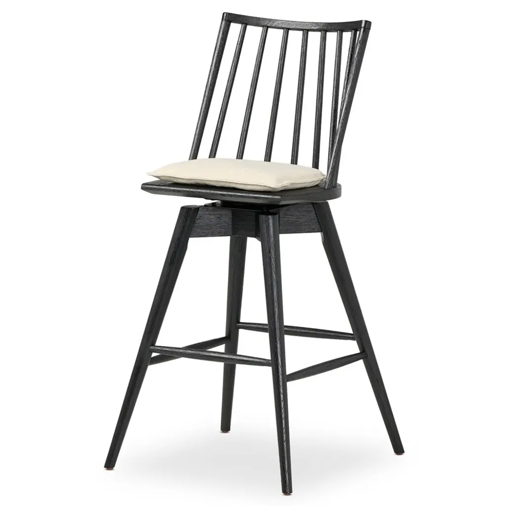 Lara Rustic Lodge Cream Performance Black Oak Swivel Windsor Bar Stool