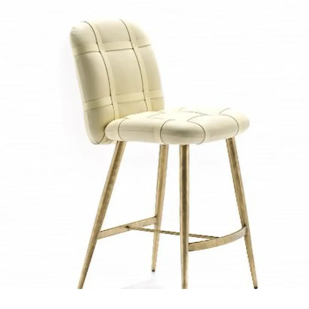 Avion Pelle Bar is a stool made of fine Fasem leather. The frame is made of steel in various finishes. The seat and backrest are padded and enclosed in a full-grain Fasem leather net, either tone-on-tone or contrasting. The sense of comfort of the chair is also evident in the stool, which adds a touch of contemporary design to any environment. The structure, which provides comfort like the seat, is available in two sizes (67 and 77 cm) to fit different heights of tables, islands, and peninsulas.