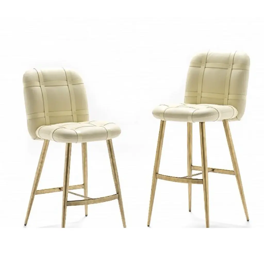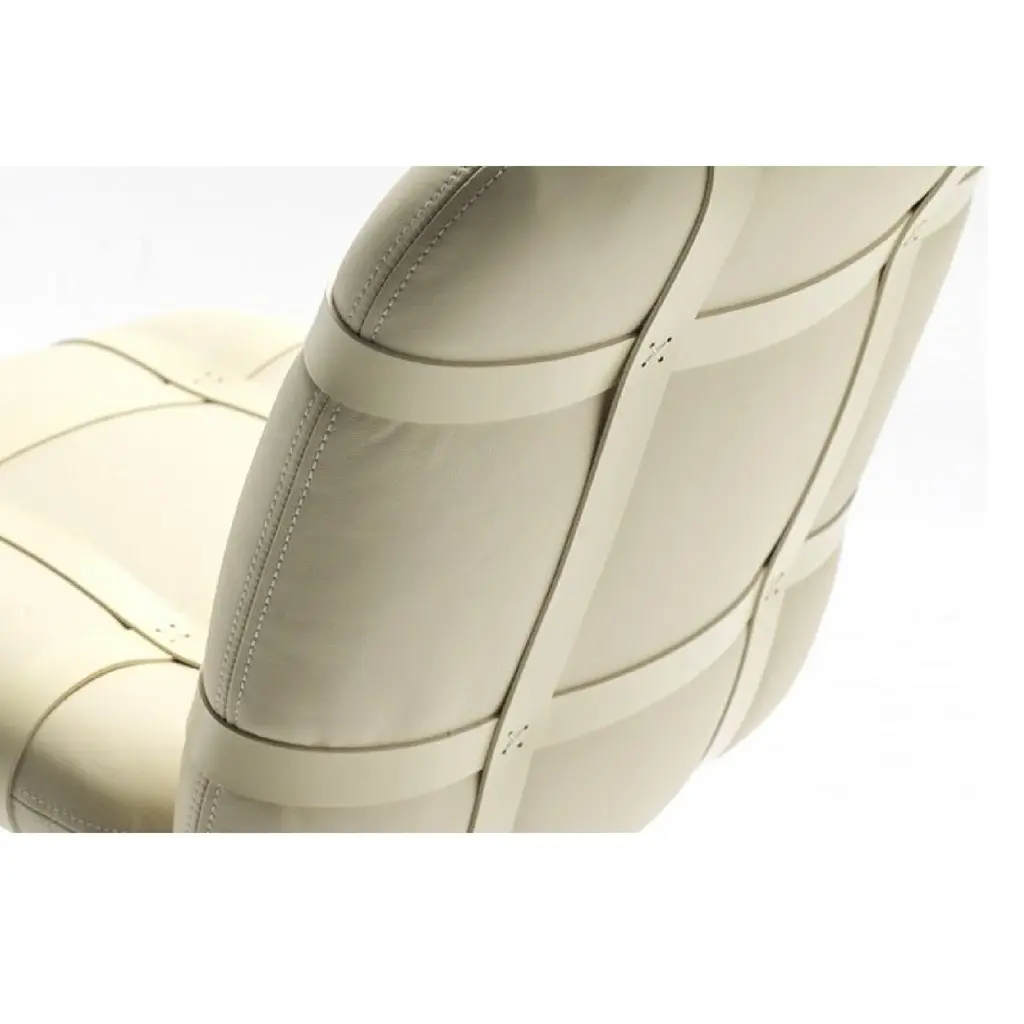 Avion Pelle Bar is a stool made of fine Fasem leather. The frame is made of steel in various finishes. The seat and backrest are padded and enclosed in a full-grain Fasem leather net, either tone-on-tone or contrasting. The sense of comfort of the chair is also evident in the stool, which adds a touch of contemporary design to any environment. The structure, which provides comfort like the seat, is available in two sizes (67 and 77 cm) to fit different heights of tables, islands, and peninsulas.