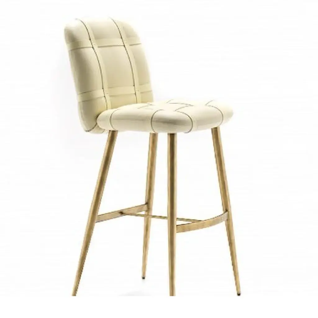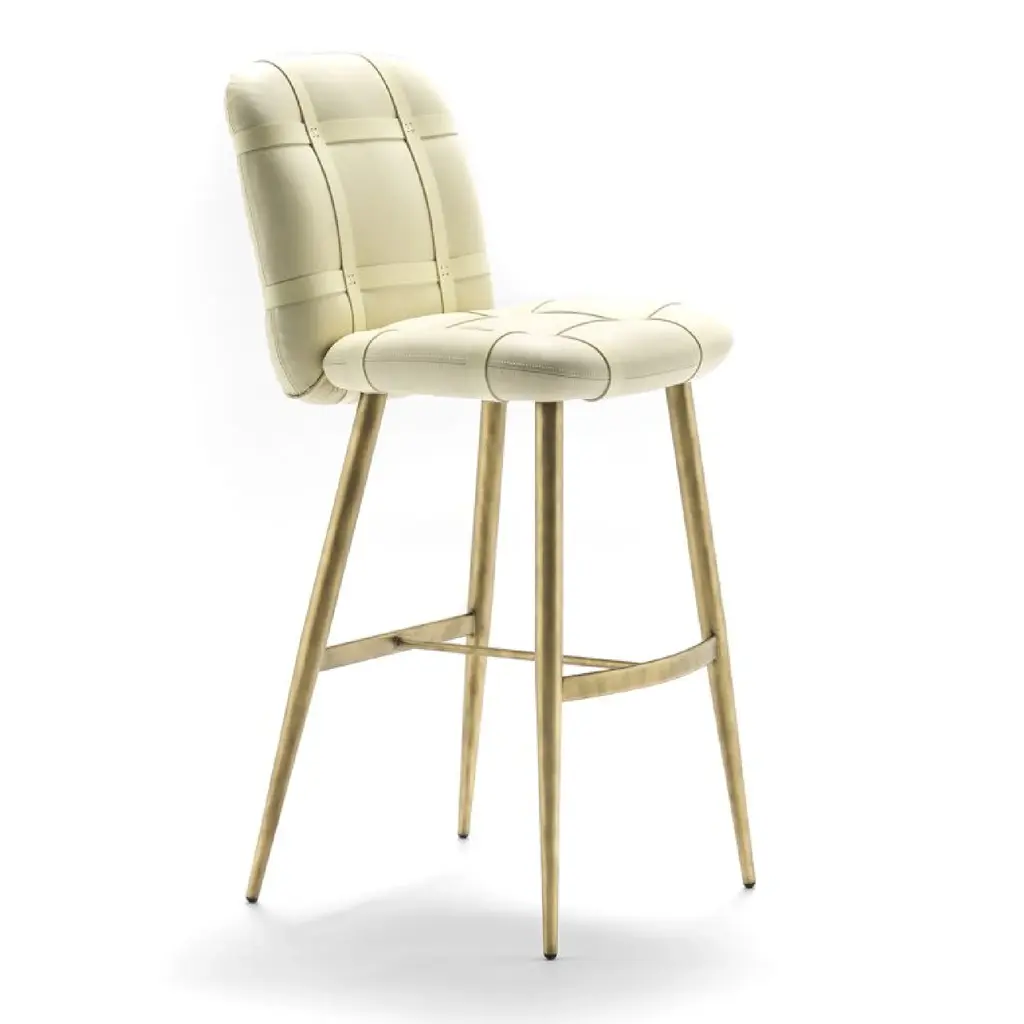 Avion Pelle Bar is a stool made of fine Fasem leather. The frame is made of steel in various finishes. The seat and backrest are padded and enclosed in a full-grain Fasem leather net, either tone-on-tone or contrasting. The sense of comfort of the chair is also evident in the stool, which adds a touch of contemporary design to any environment. The structure, which provides comfort like the seat, is available in two sizes (67 and 77 cm) to fit different heights of tables, islands, and peninsulas.