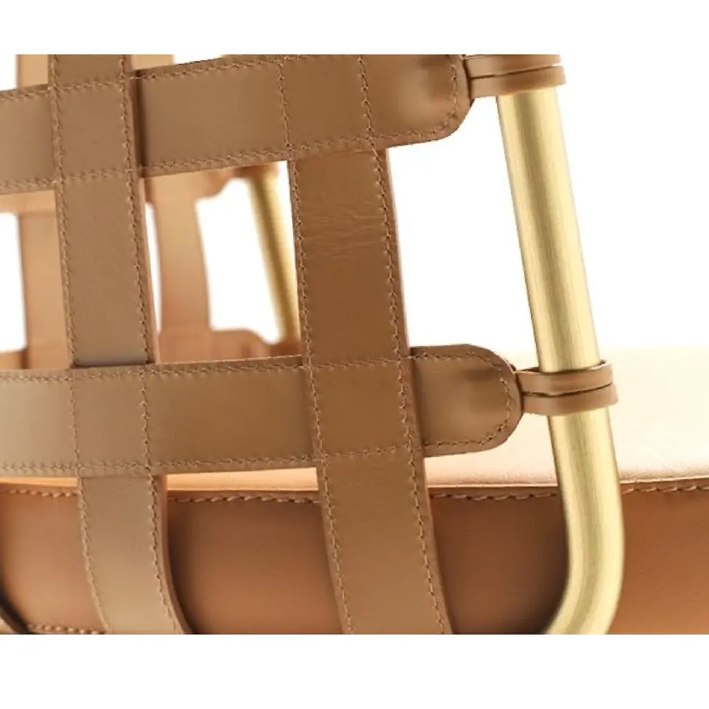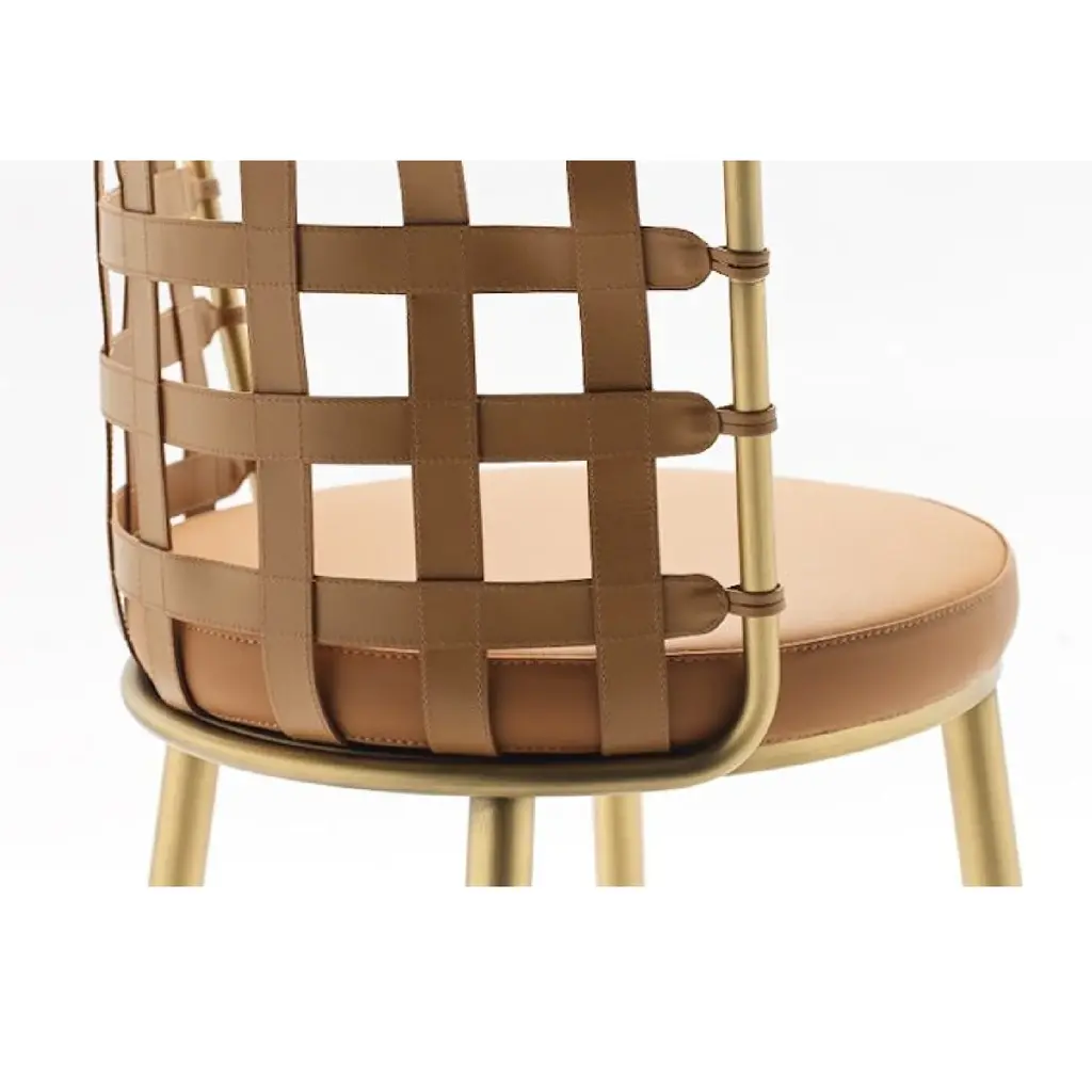 The Lola bar stool features a steel structure available in various finishes and a padded seat covered in high-quality leather in different shades. A notable detail is the backrest, crafted with a frame technique where strips of full-grain leather are stitched together, showcasing exceptional artisan skill in cutting, finishing, and assembly. The stool offers comfort comparable to that of the seat and is available in two heights (65 and 75 cm) to fit different table, island, and peninsula heights. The structure, which provides comfort similar to the seat, is available in two heights (65 and 75 cm) to adapt to various table, island, and peninsula heights."