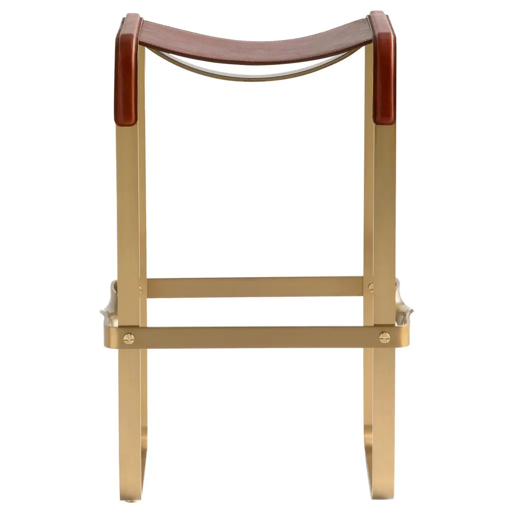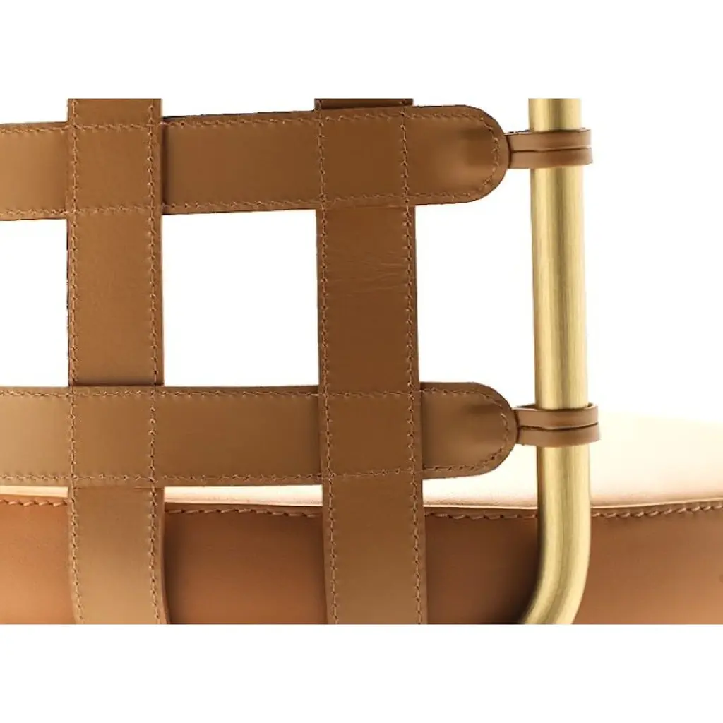 The Lola bar stool features a steel structure available in various finishes and a padded seat covered in high-quality leather in different shades. A notable detail is the backrest, crafted with a frame technique where strips of full-grain leather are stitched together, showcasing exceptional artisan skill in cutting, finishing, and assembly. The stool offers comfort comparable to that of the seat and is available in two heights (65 and 75 cm) to fit different table, island, and peninsula heights. The structure, which provides comfort similar to the seat, is available in two heights (65 and 75 cm) to adapt to various table, island, and peninsula heights."