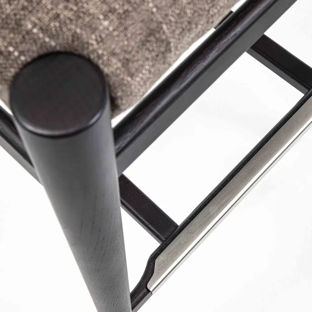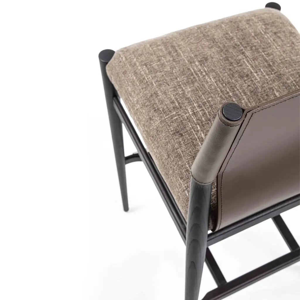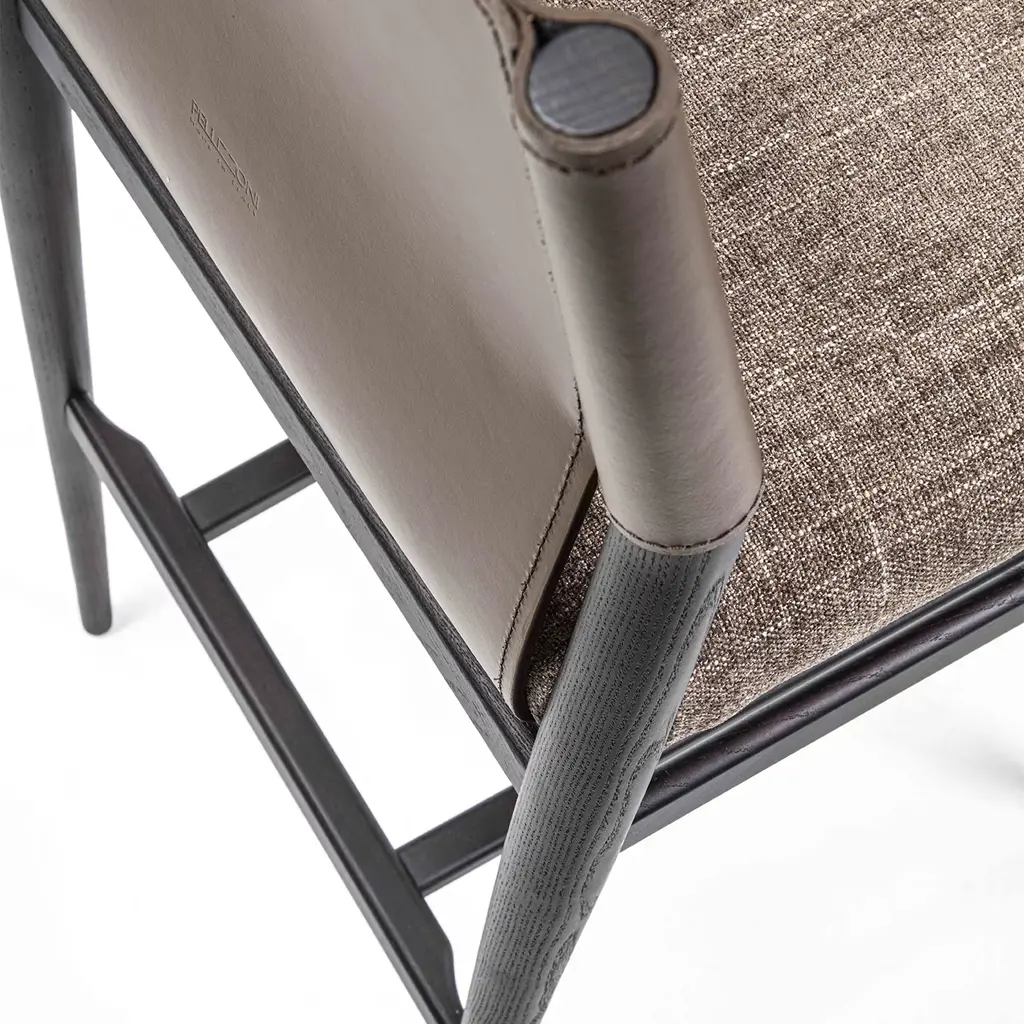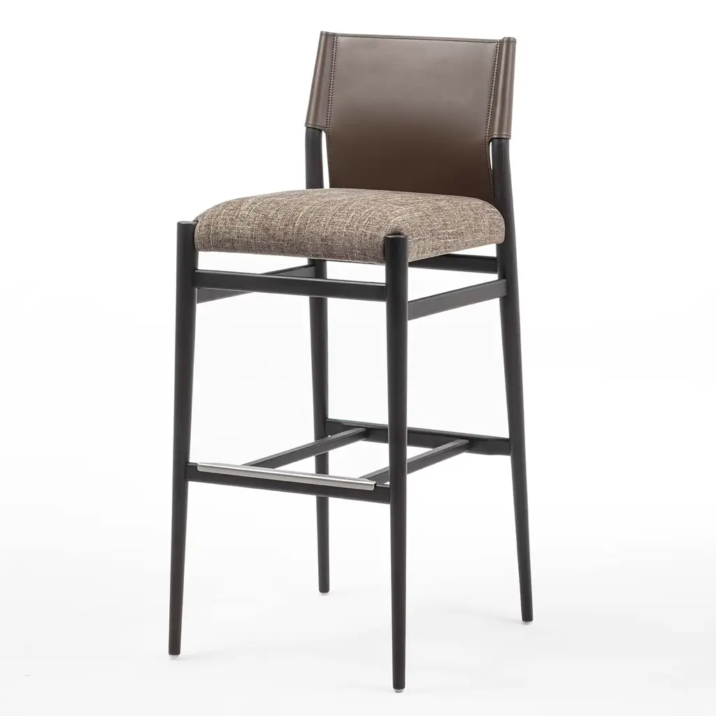 The Ledermann Bar Stool combines refined craftsmanship with contemporary elegance. It features conical wooden legs, a padded seat upholstered in premium fabric, and a backrest wrapped in luxurious leather for a sophisticated touch. The footrest in sandblasted stainless steel, also available painted in a variety of colors, enhances both comfort and style. A perfect blend of design and functionality, this bar stool elevates any refined interior. Contact the Concierge for additional information.