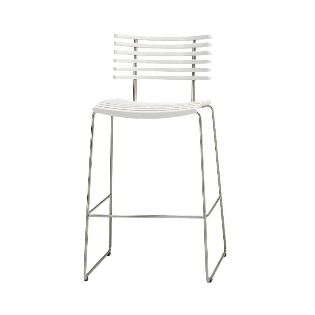 Leopard Barstool Designer: Henrik Lehm Manufactured by: Naver Collection Leopard barstool in wood and stainless steel. A seat cushion in black leather is available as an accessory.
