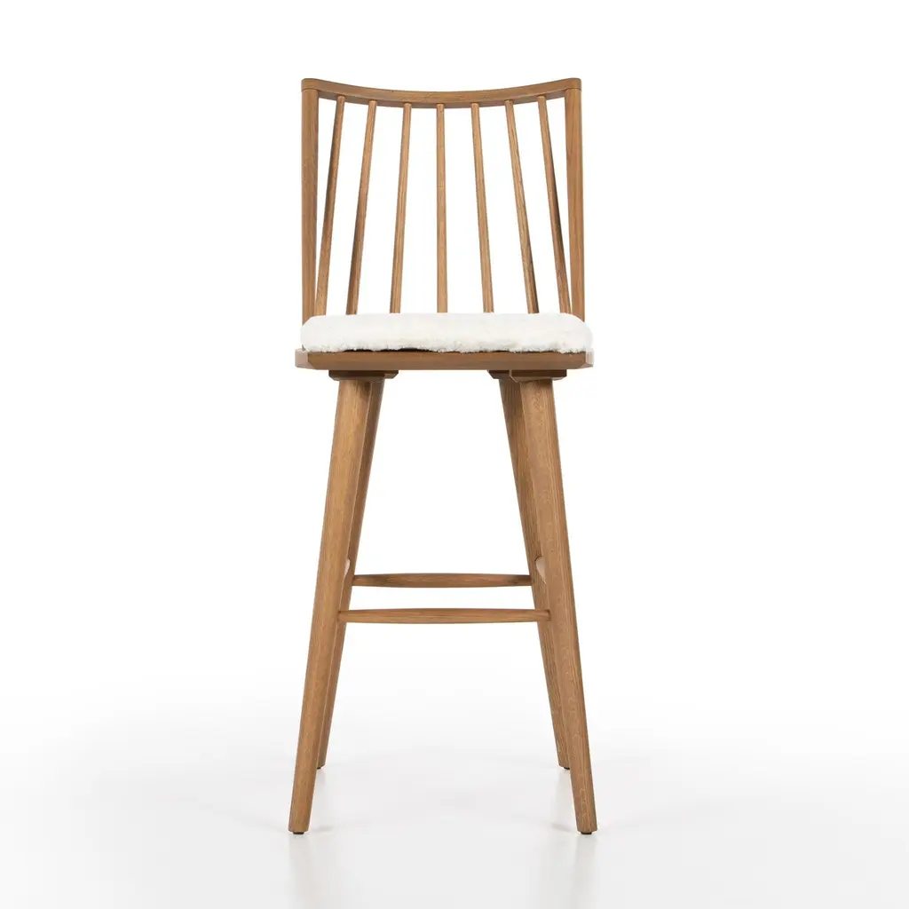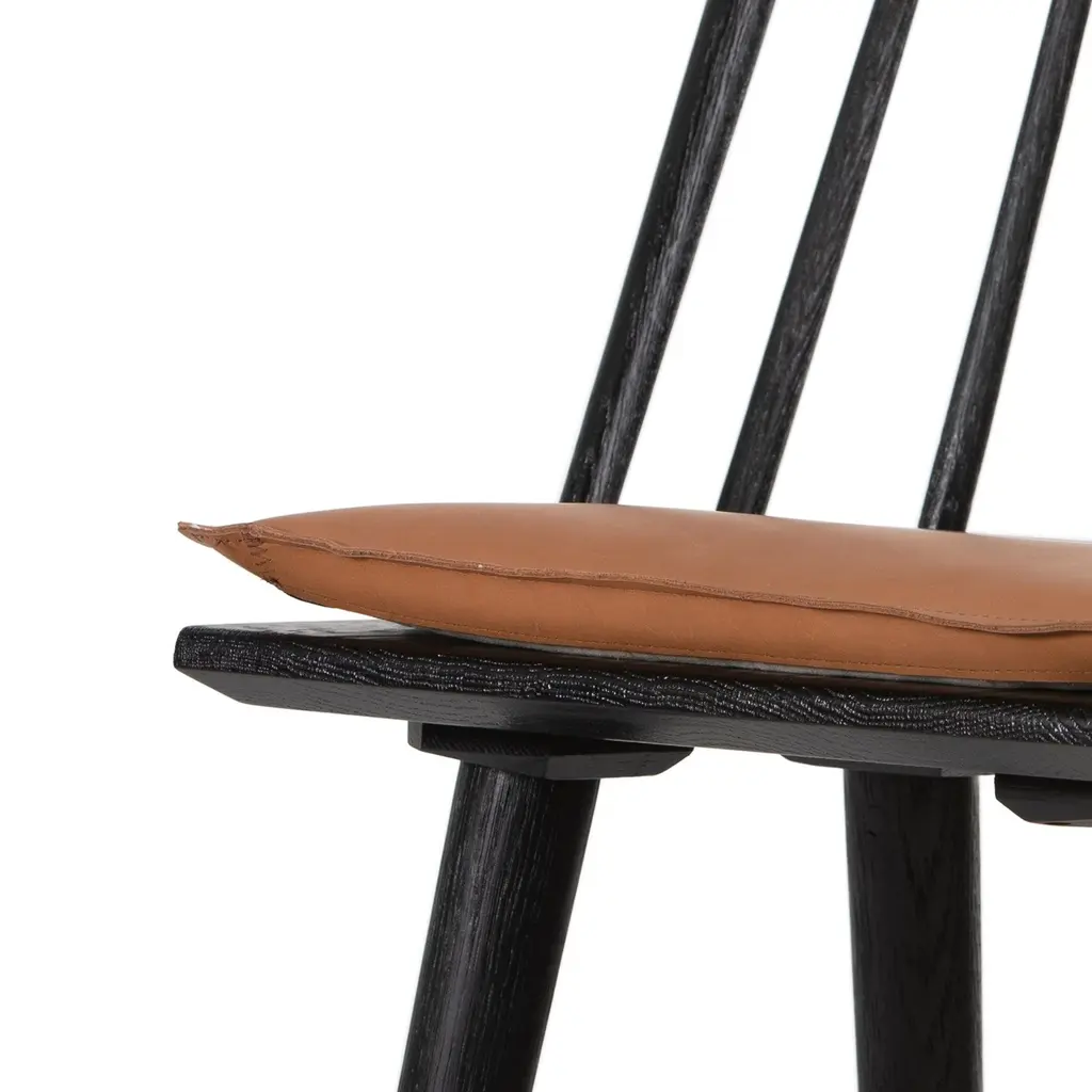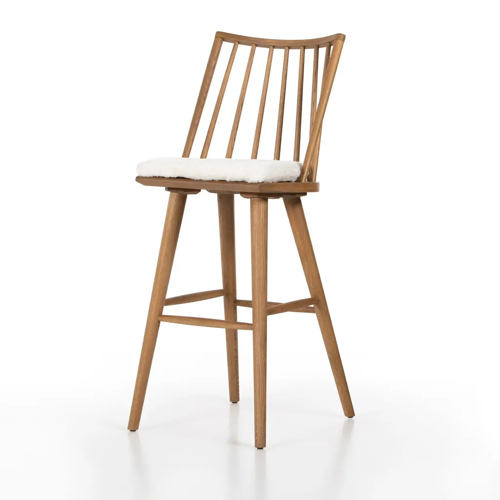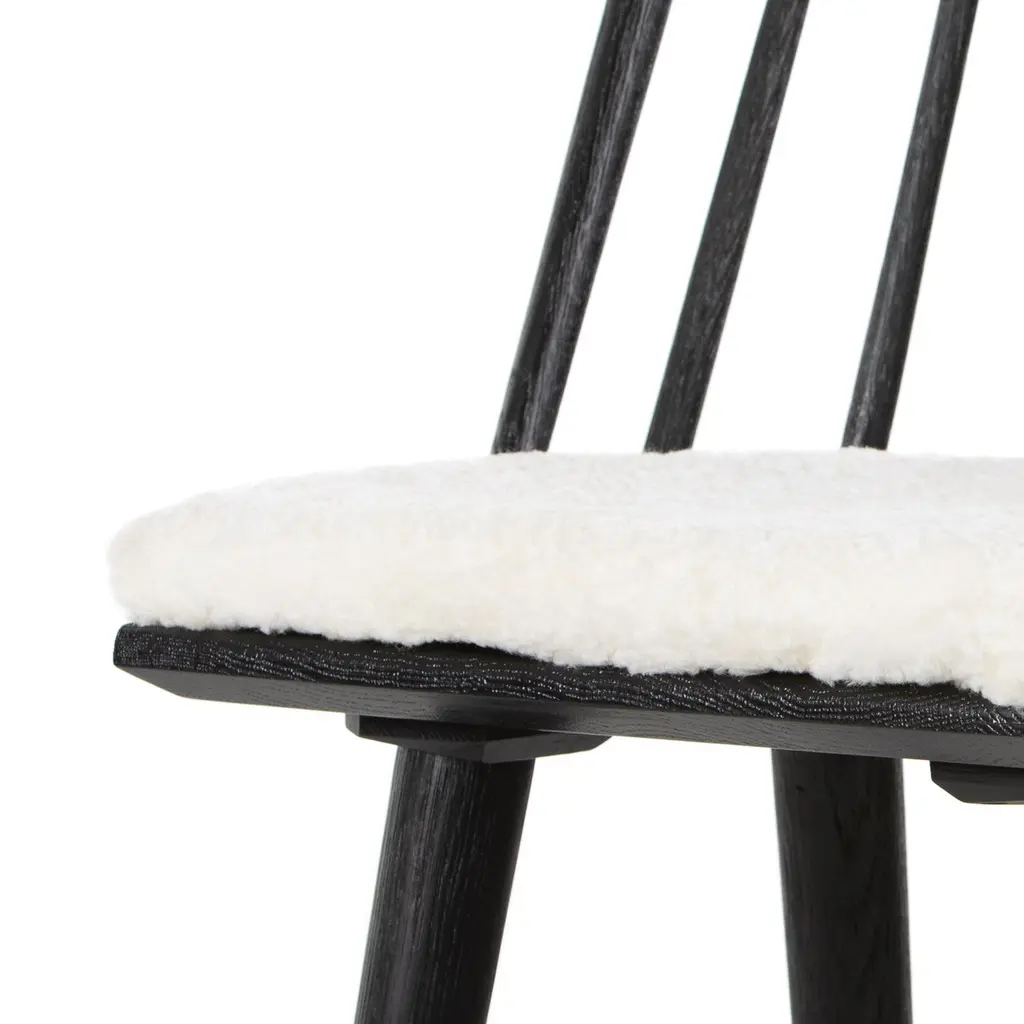 Try a more contemporary take on the traditional Windsor. This tall beauty is wire-brushed to play up oak's natural cathedral graining. A loose seat cushion of sheared sheepskin or tan top-grain leather works comfort and contrast into the mix.