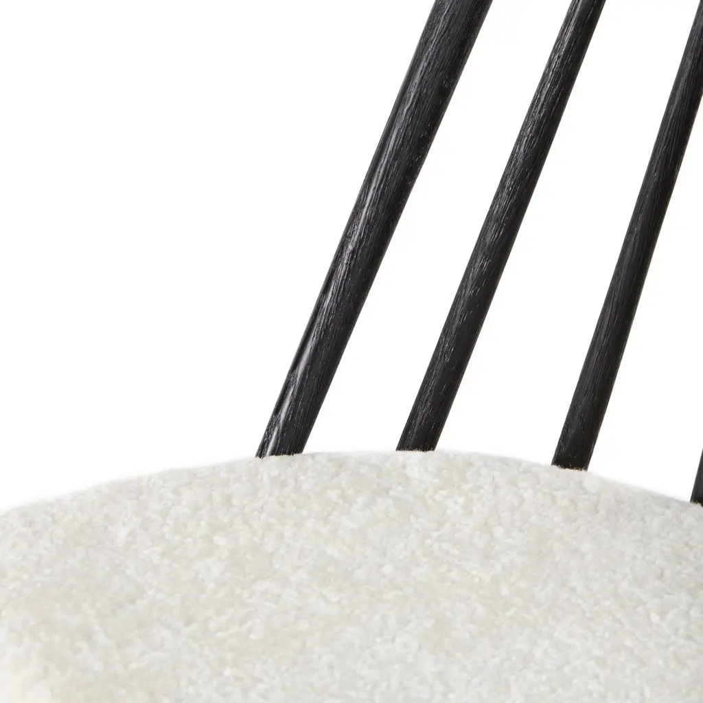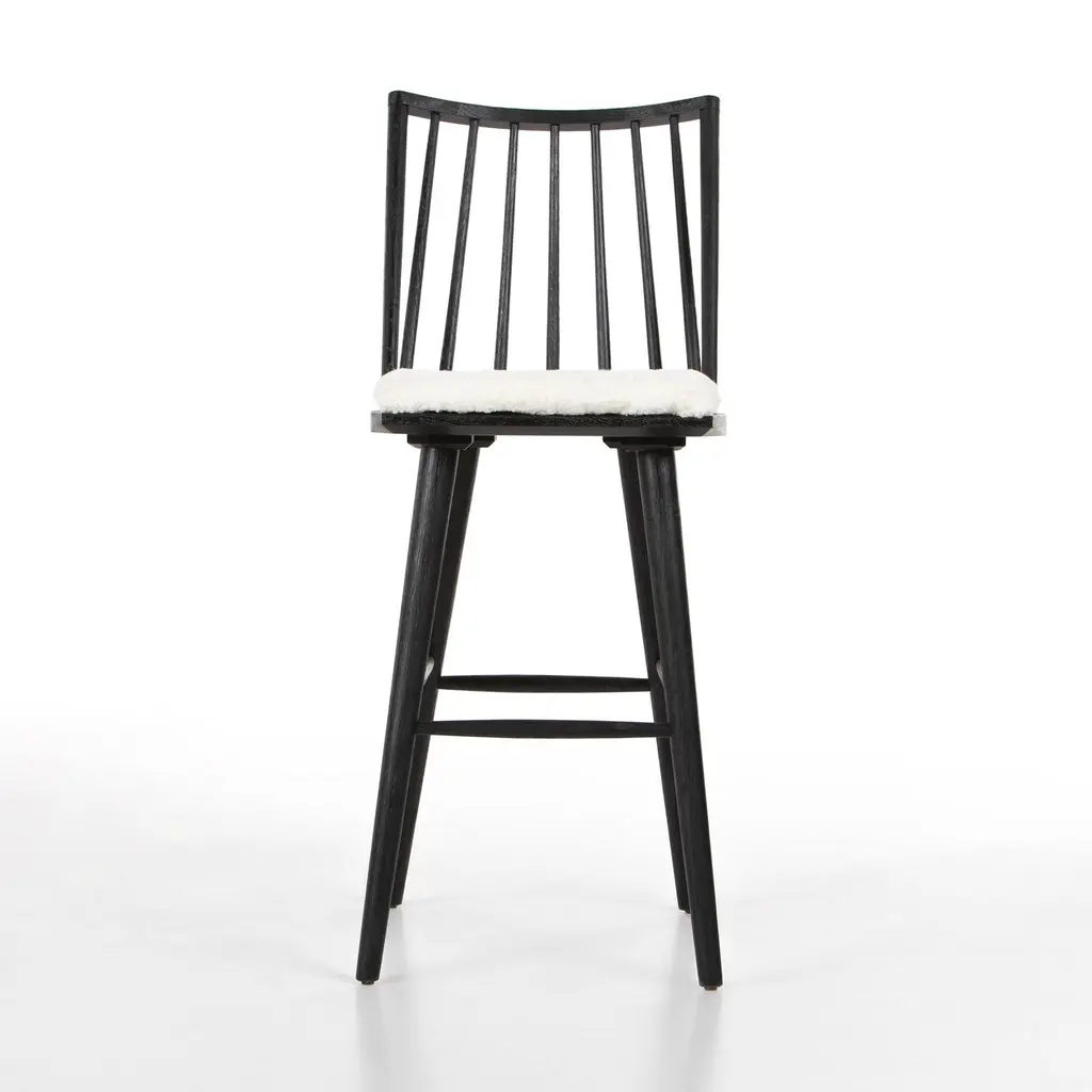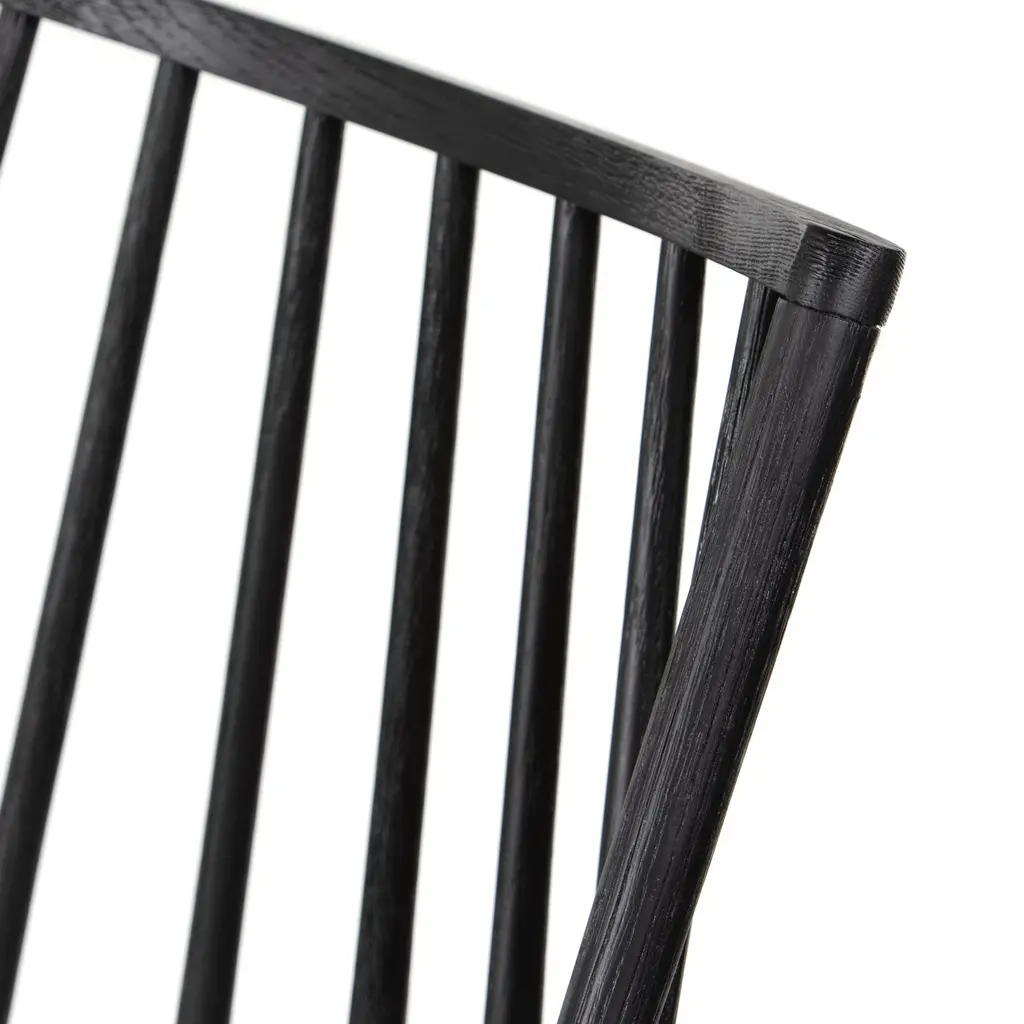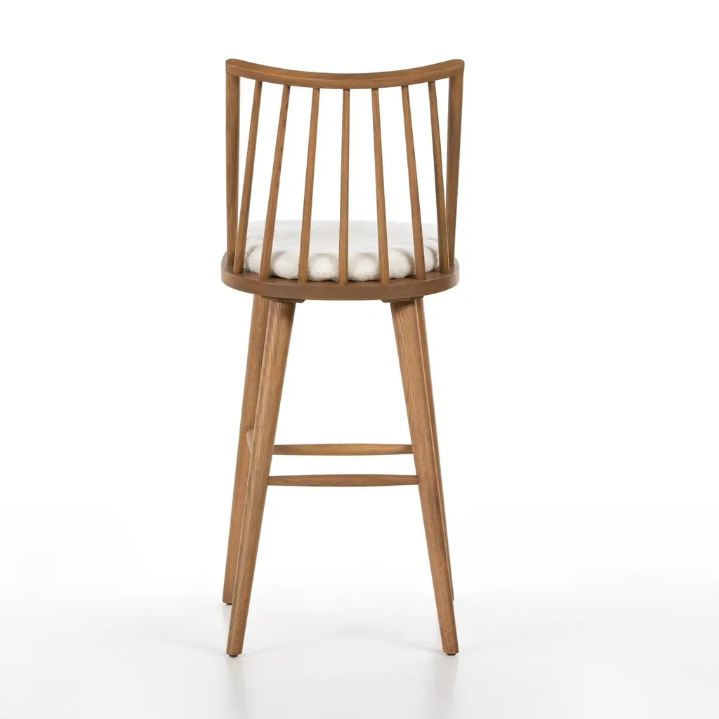 Try a more contemporary take on the traditional Windsor. This tall beauty is wire-brushed to play up oak's natural cathedral graining. A loose seat cushion of sheared sheepskin or tan top-grain leather works comfort and contrast into the mix.