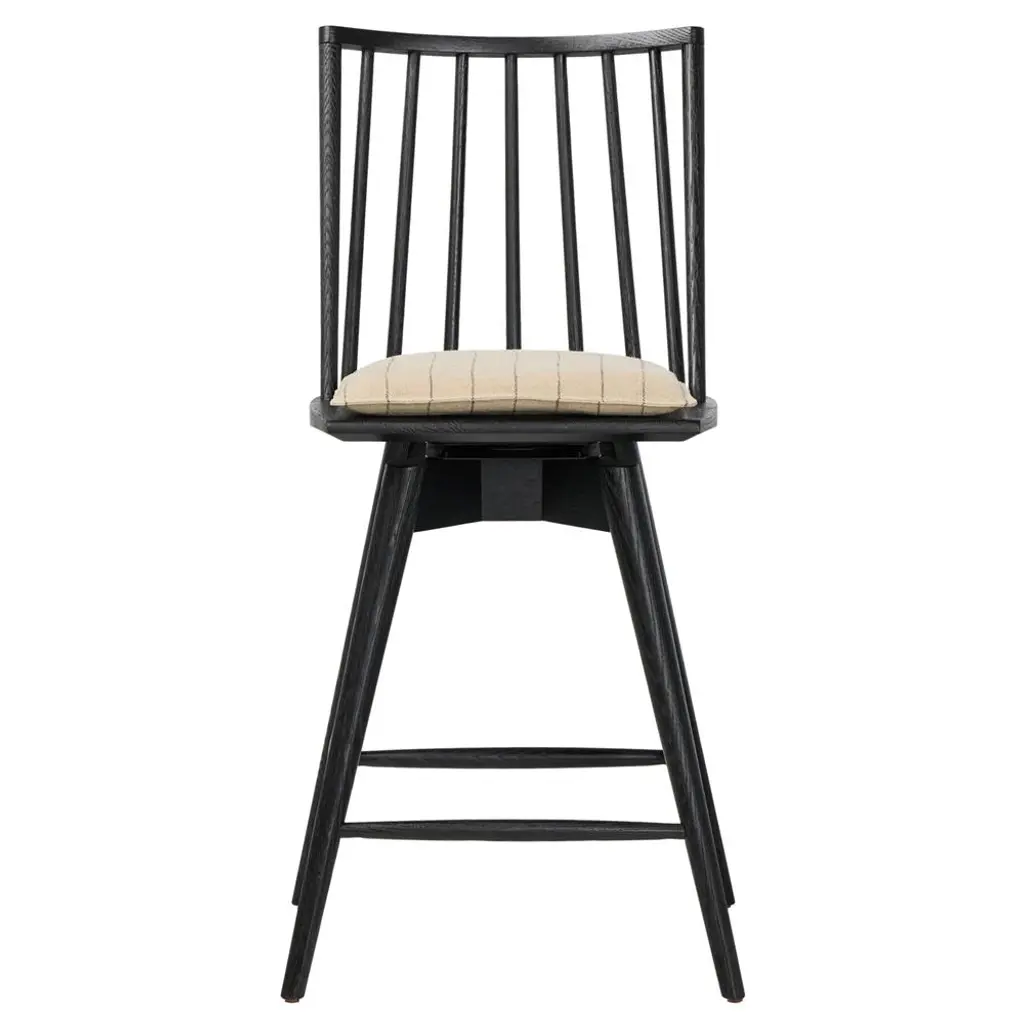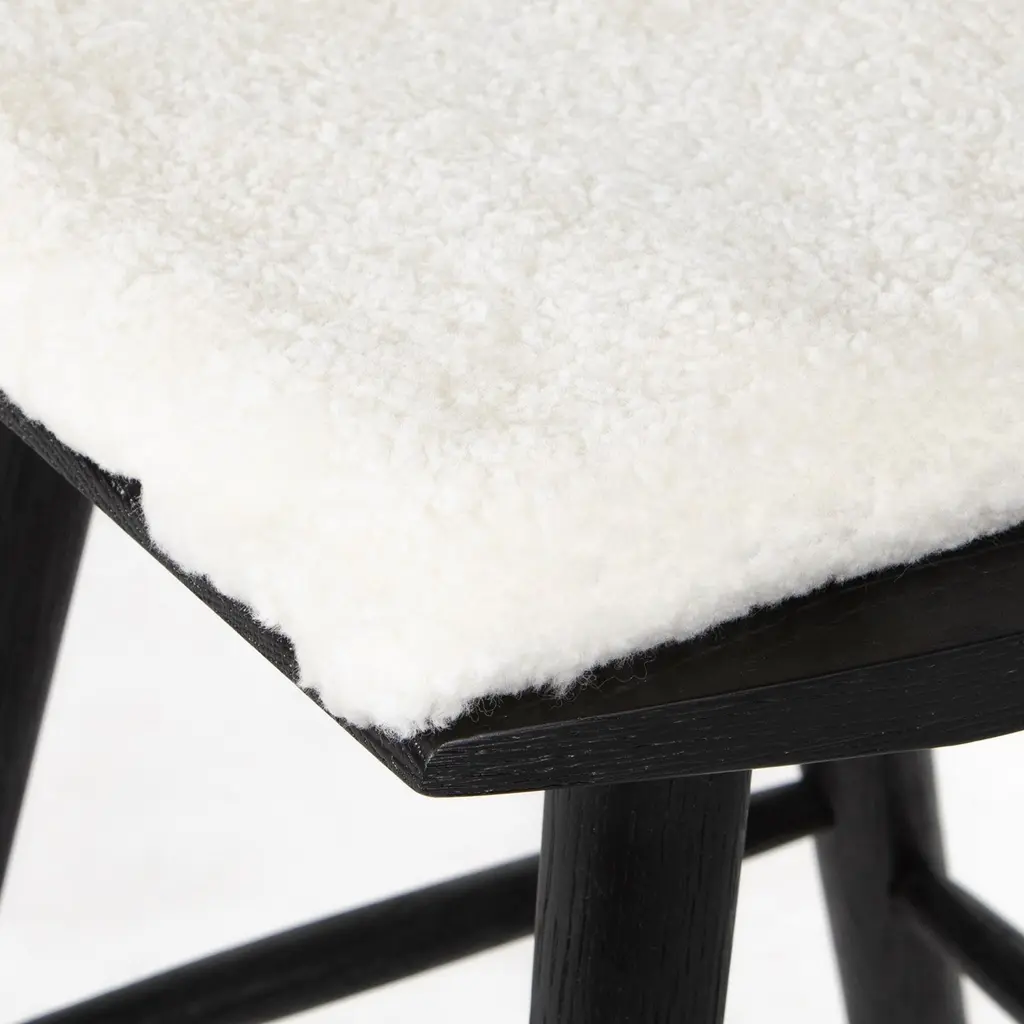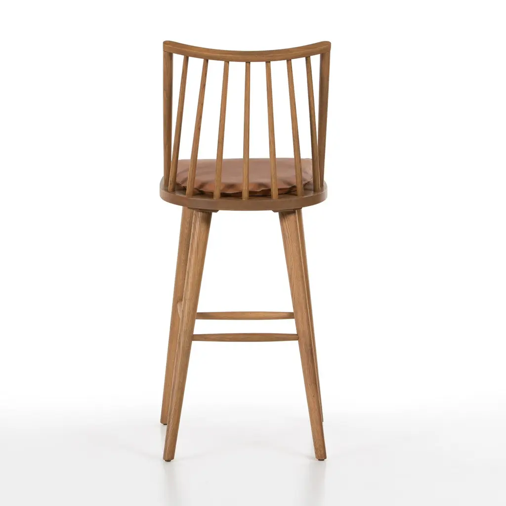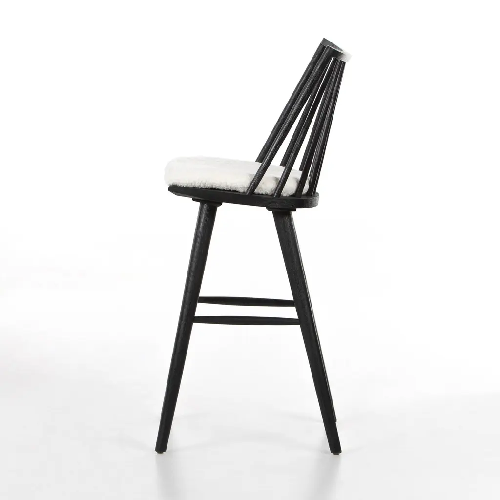 Try a more contemporary take on the traditional Windsor. This tall beauty is wire-brushed to play up oak's natural cathedral graining. A loose seat cushion of sheared sheepskin or tan top-grain leather works comfort and contrast into the mix.