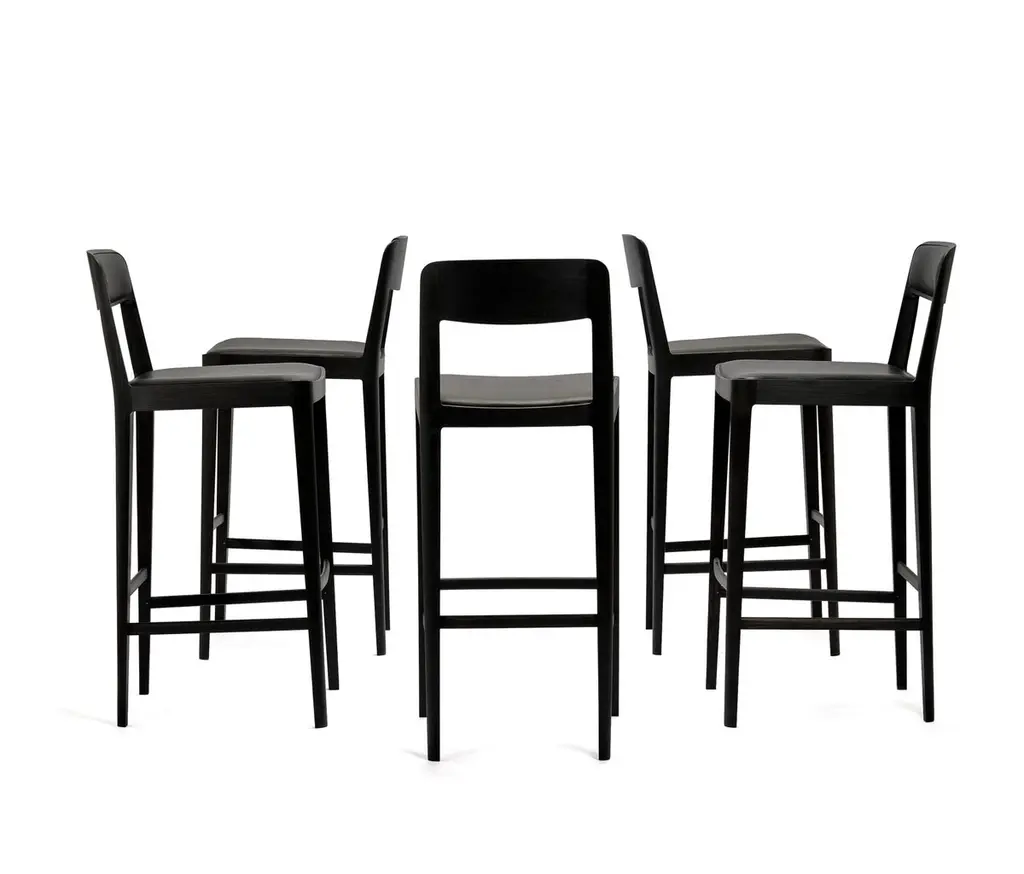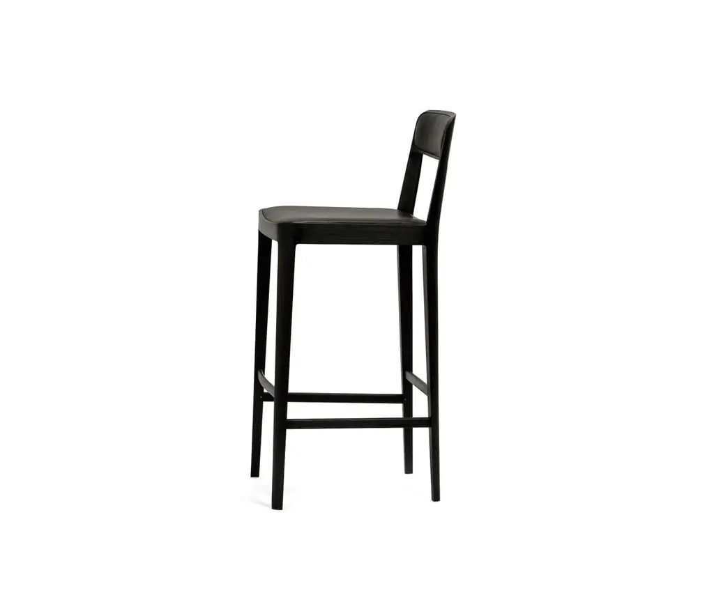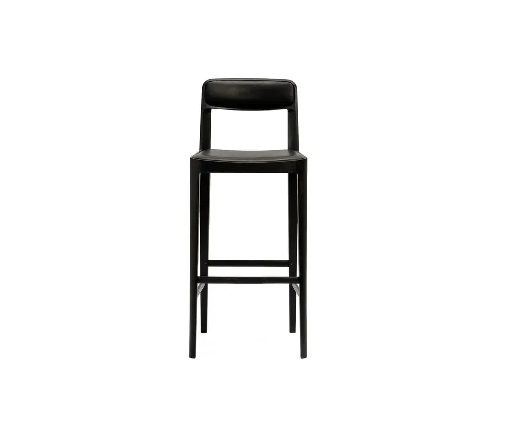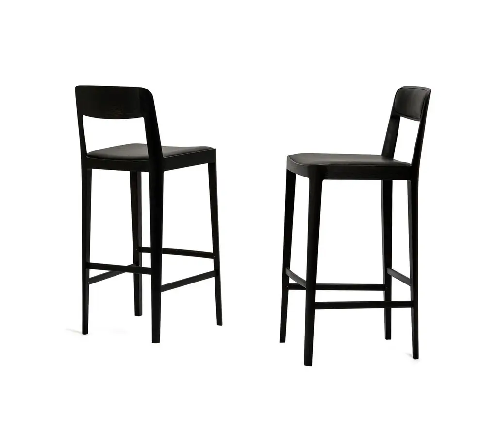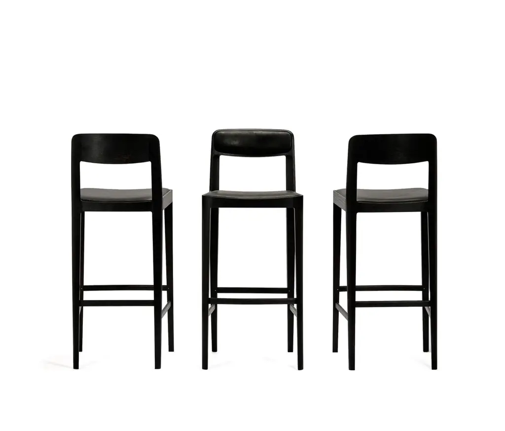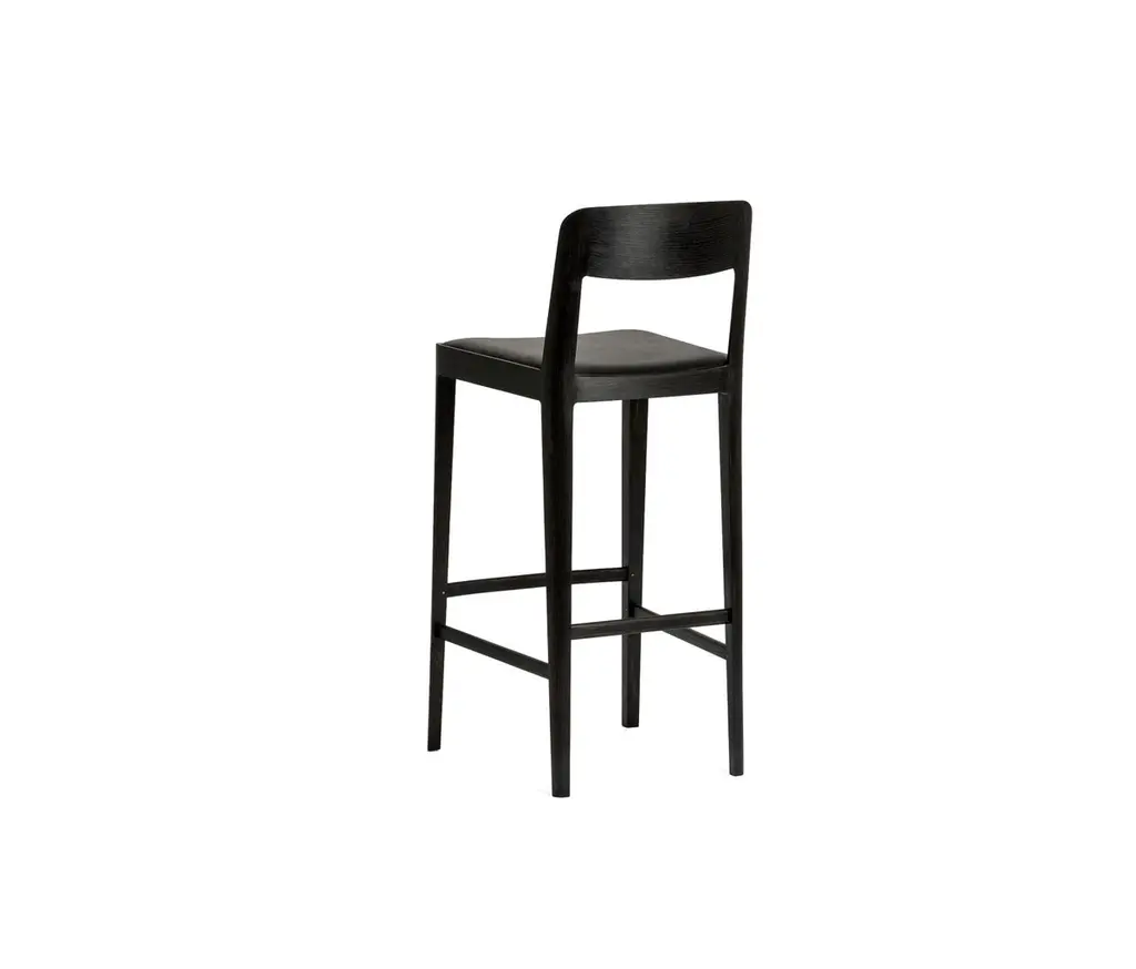 Linea Barstool, Blackened Oak With Upholstered Seat And Backrest In Leather