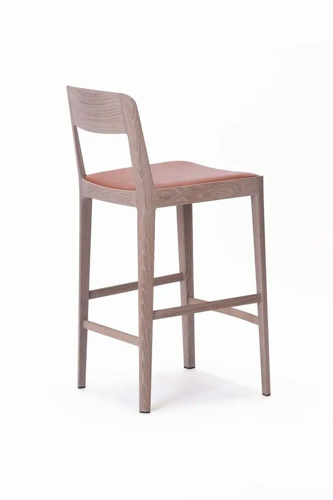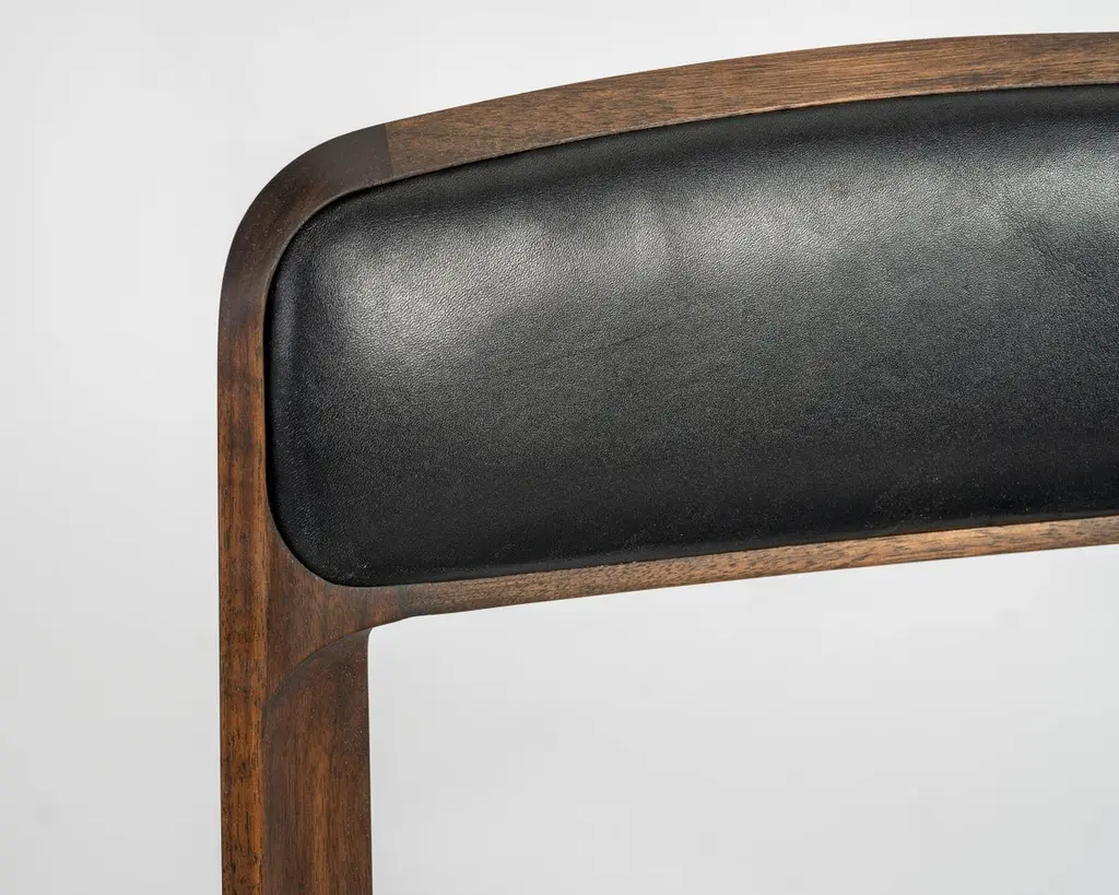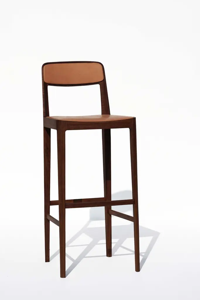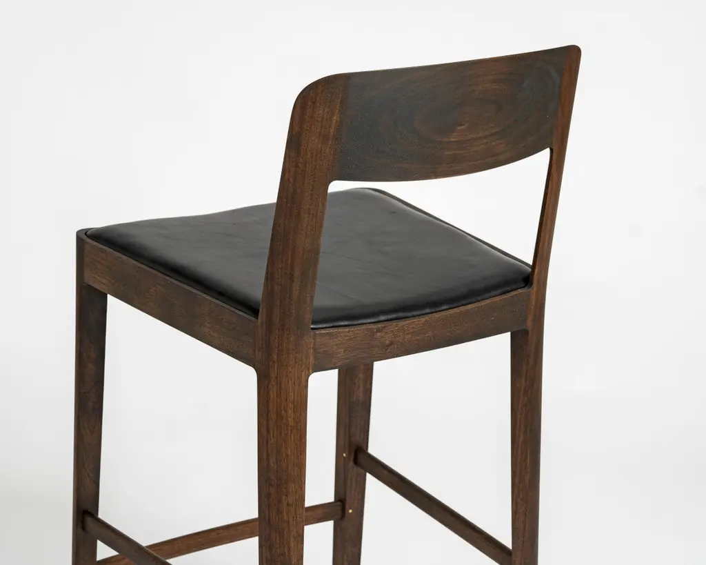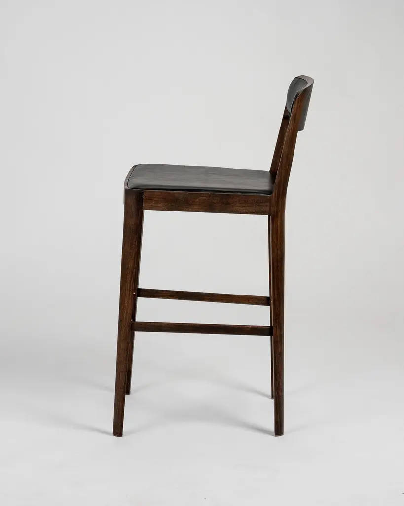 Linea Barstool, Walnut With Upholstered Seat And Backrest In Leather (Black)