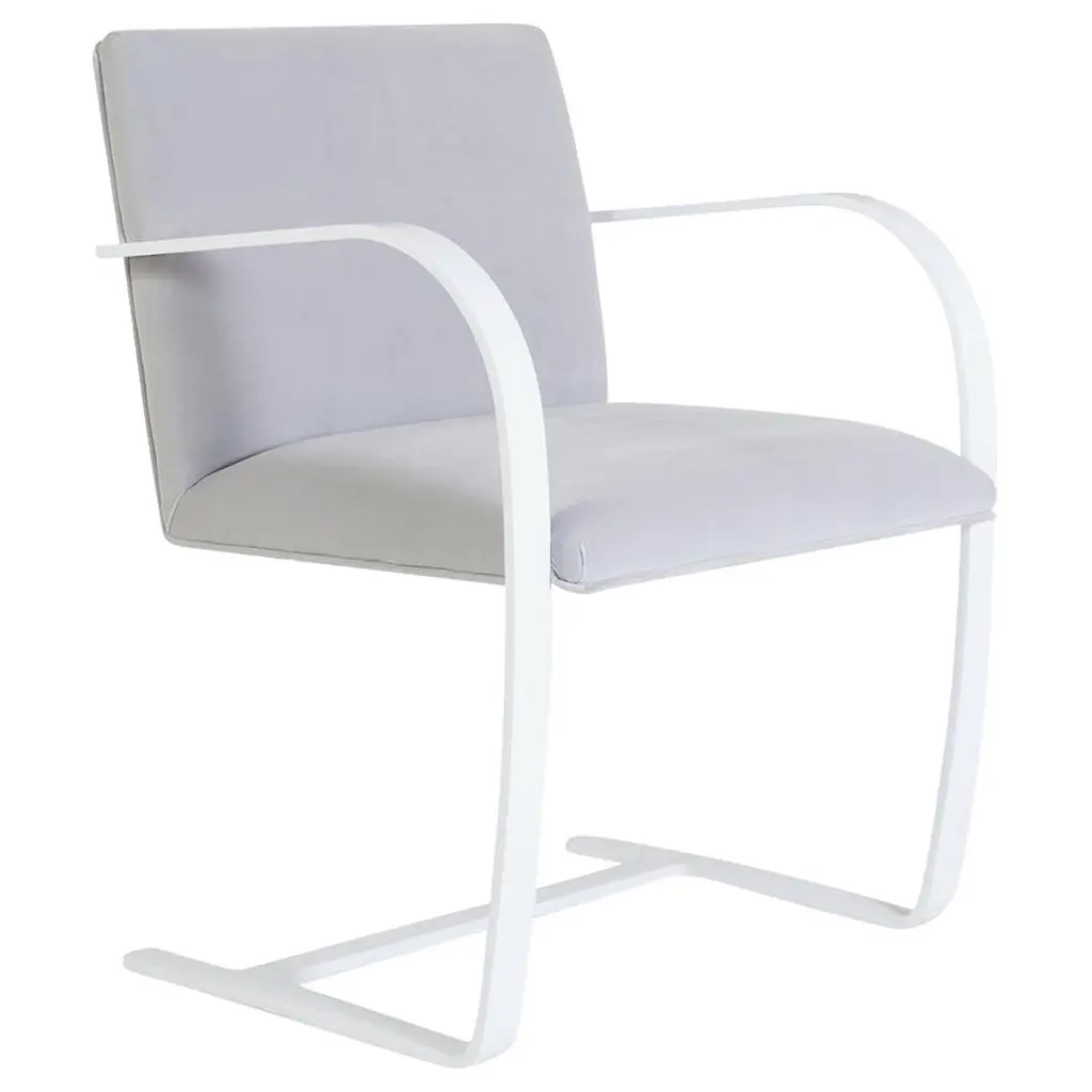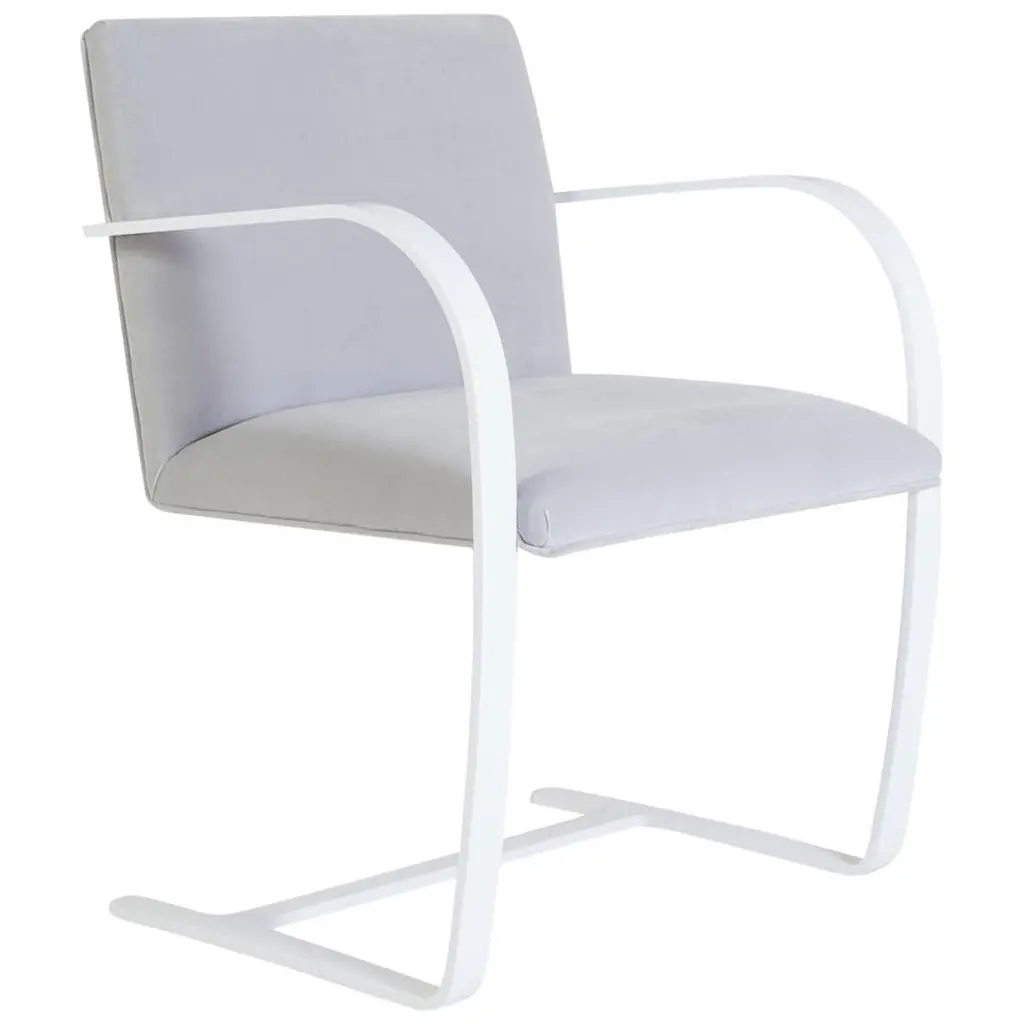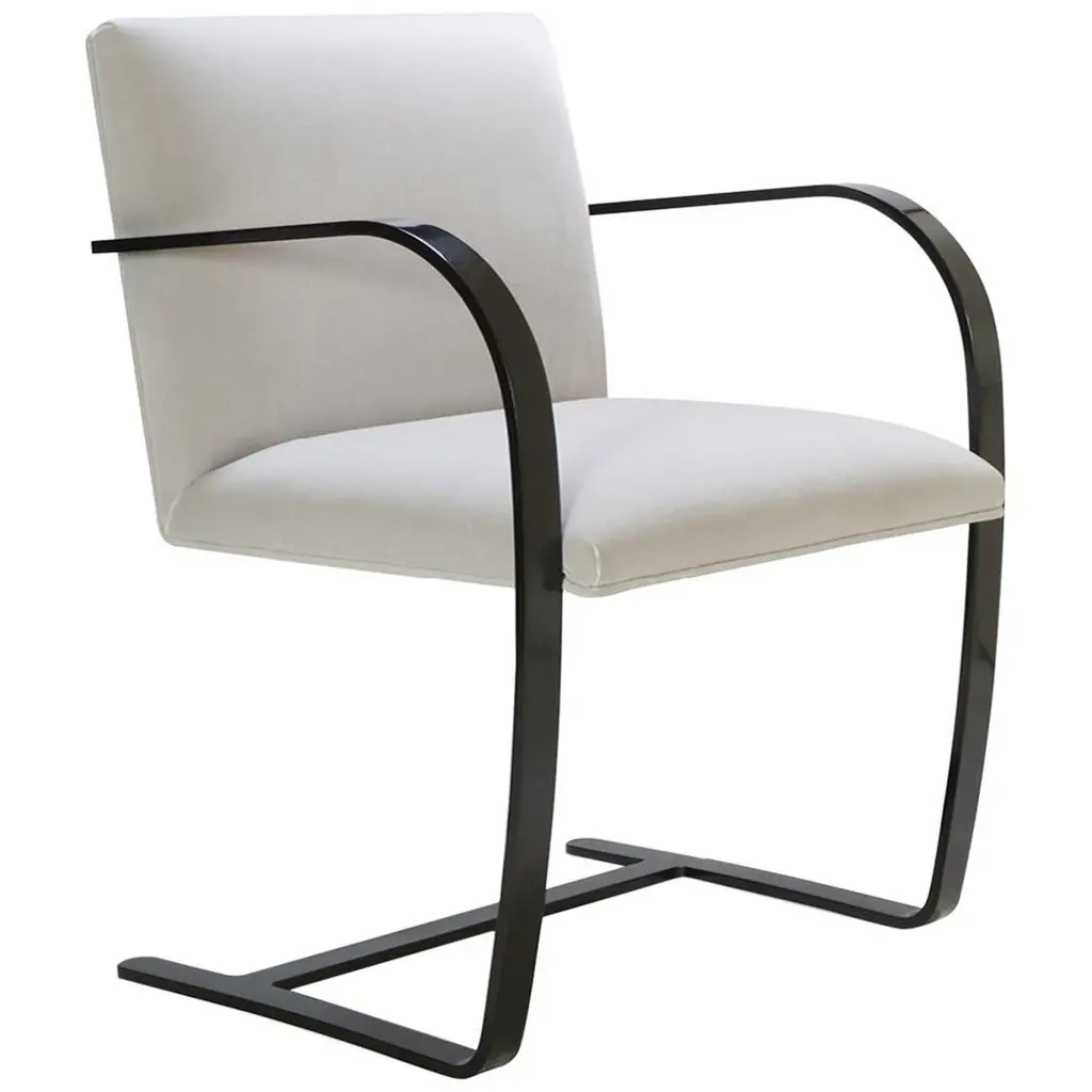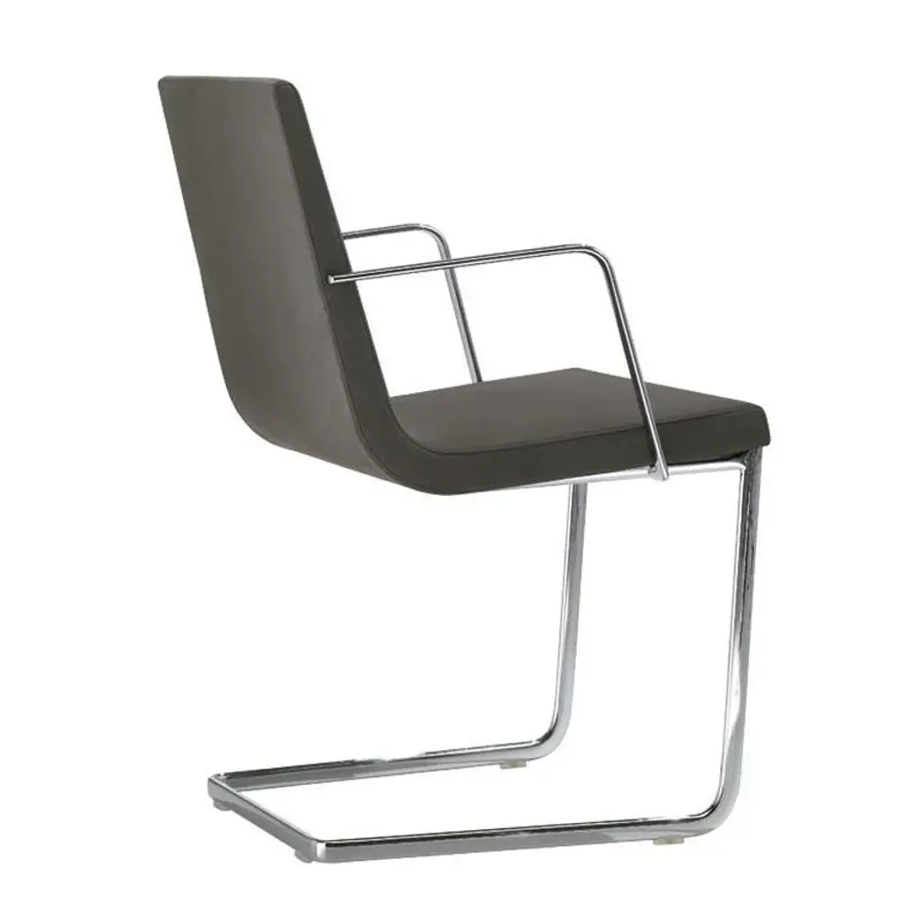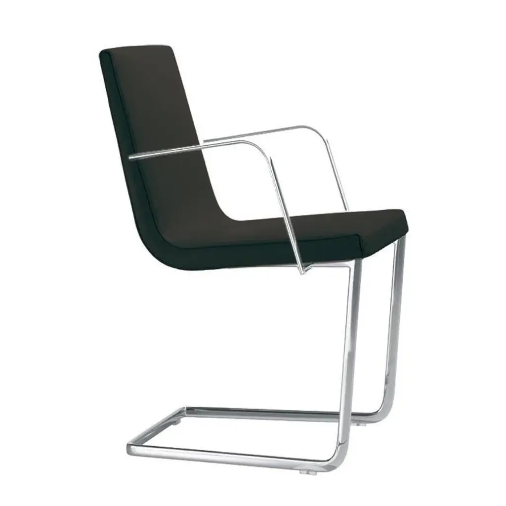 Armchair with upholstered seat and backrest and steel oval plate cantilever base in polished chrome finish. Optional: Upholstered arms. Lineal Comfort is a collection of upholstered chairs, seats, armchairs and barstools. The design is constructed from flexible injected foam with either solid wood, steel or aluminum polished metal bases. It is an ideal addition to any private, public or space. It utilizes the pure forms from the Lineal family of seating with a luxurious, resistant and comfortable materials. It is featured in a wide range of upholsteries and wood finishes, increasing its versatility and ability to integrate into architectural spaces of very different styles and purposes.