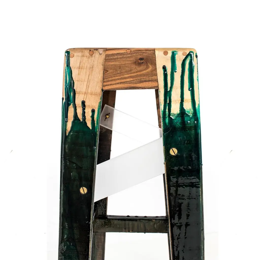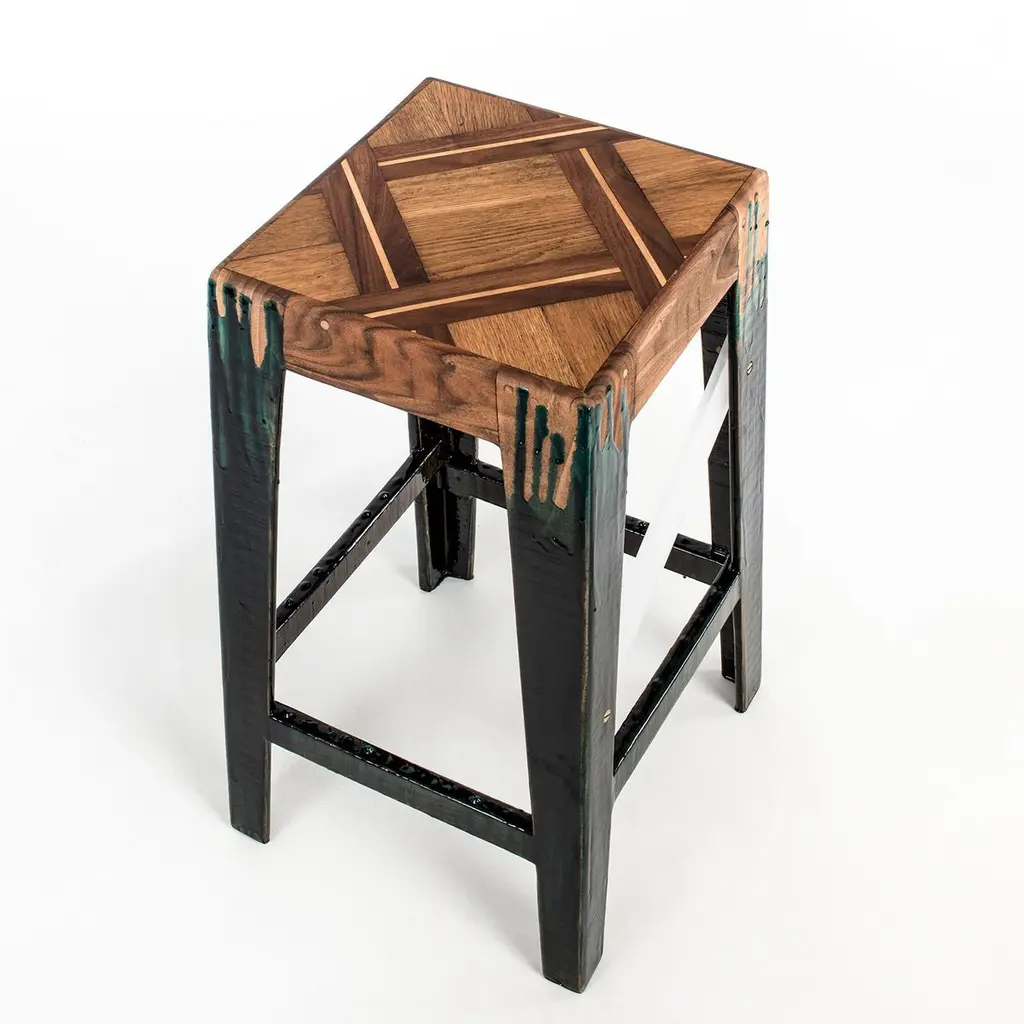 'Liquid' Wooden Stool In Walnut And Colored Resin By Hillsideout