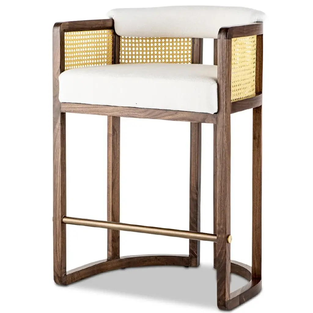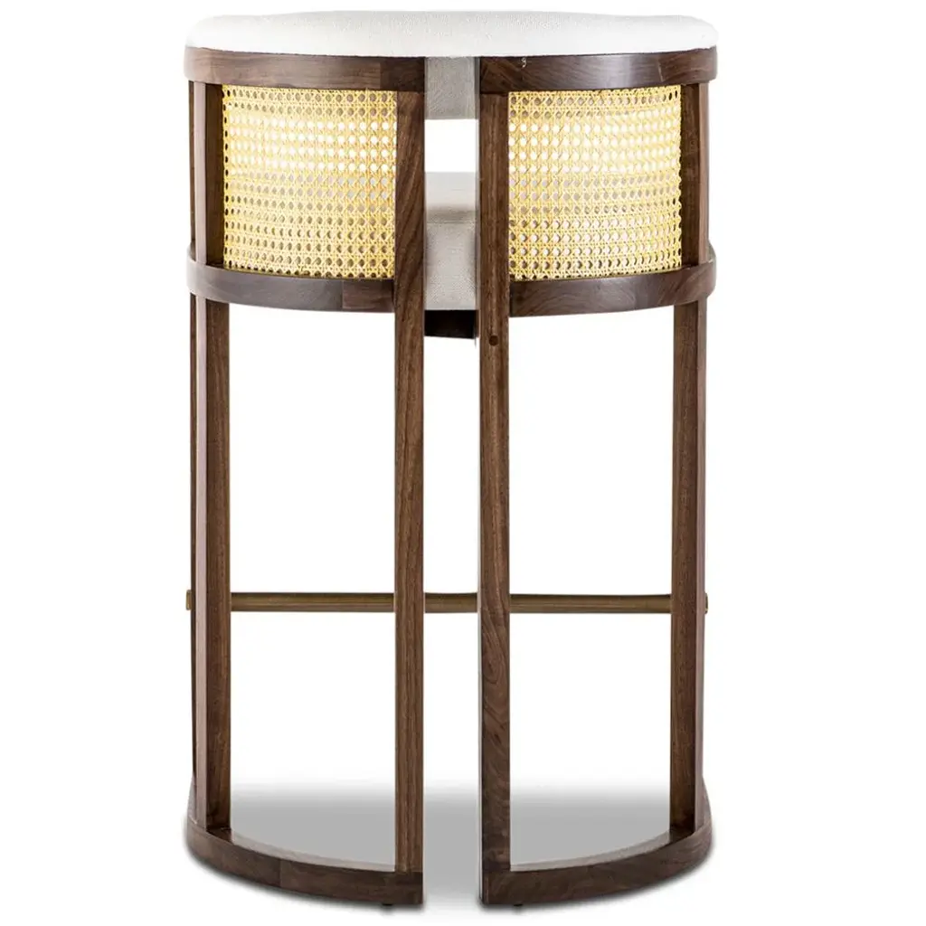 Livingston Walnut And Rattan And Linen Barstool By Egg Designs