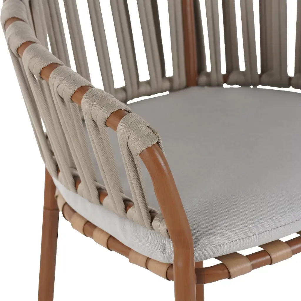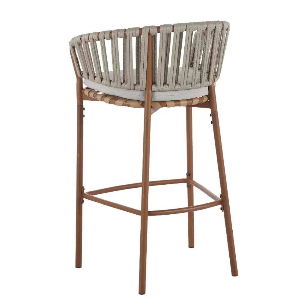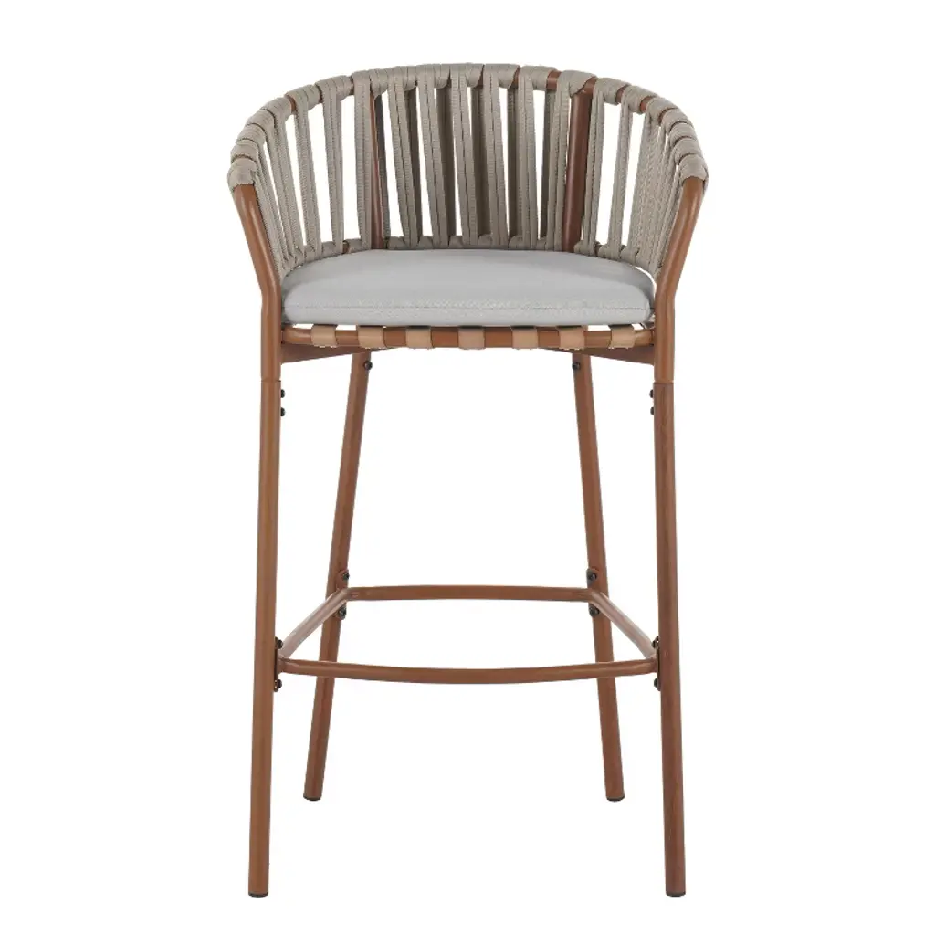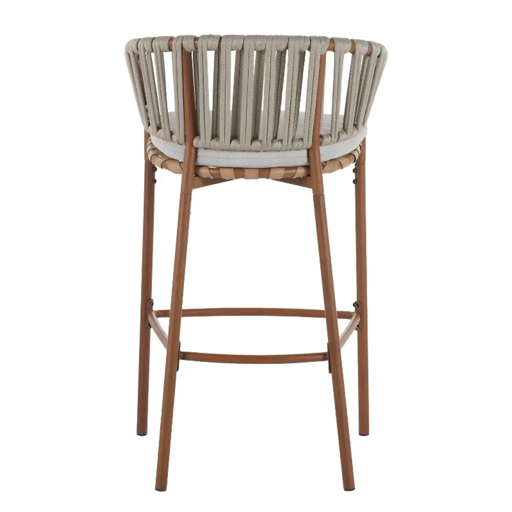 Lodi Outdoor Metal Rope Barstool, Teak Finished Frame And Beige Cushion, Set Of 2