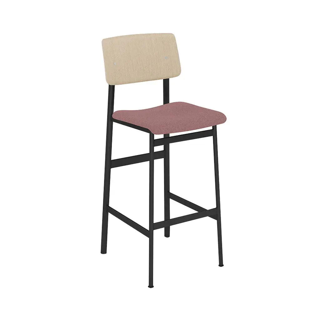 Upholstery-clad cushioning ups the comfort level as well as adding a customizing option to Mutto’s bar stool version of designer Thomas Bentzen's Loft seating. Possessing a generously scaled curved seat and backrest, it still keeps to its minimal footprint with the legs being positioned neatly under the seat. The wood-backed stool with a crisp powder-coated steel frame hews to Scandinavian codes and a range of fine fabric or leather upholstery options allow for a unique look to suit its intended environs.