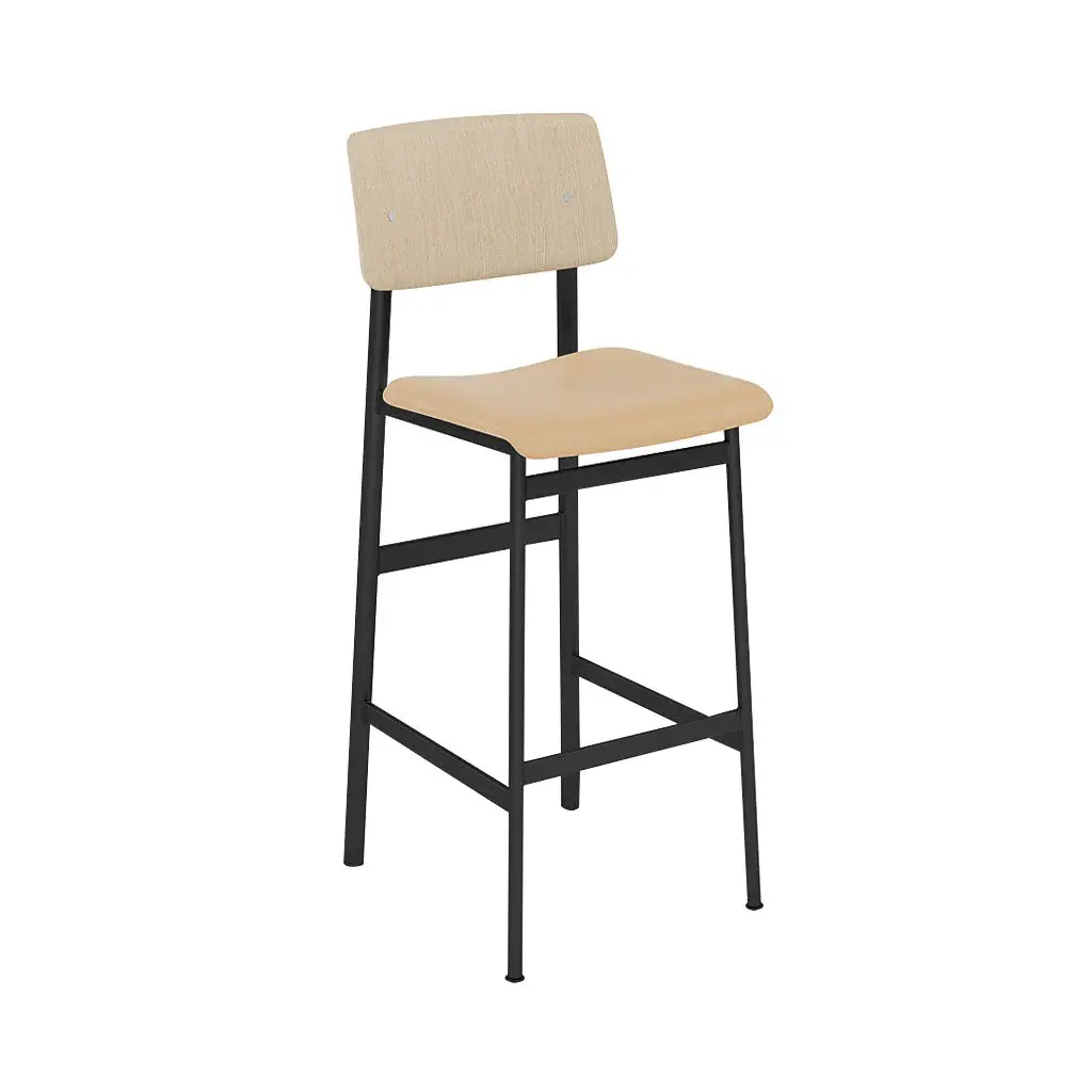 Upholstery-clad cushioning ups the comfort level as well as adding a customizing option to Mutto’s bar stool version of designer Thomas Bentzen's Loft seating. Possessing a generously scaled curved seat and backrest, it still keeps to its minimal footprint with the legs being positioned neatly under the seat. The wood-backed stool with a crisp powder-coated steel frame hews to Scandinavian codes and a range of fine fabric or leather upholstery options allow for a unique look to suit its intended environs.