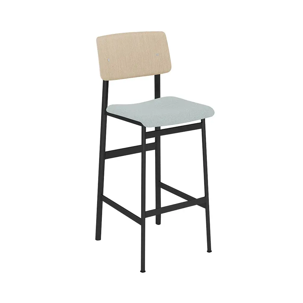 Upholstery-clad cushioning ups the comfort level as well as adding a customizing option to Mutto’s bar stool version of designer Thomas Bentzen's Loft seating. Possessing a generously scaled curved seat and backrest, it still keeps to its minimal footprint with the legs being positioned neatly under the seat. The wood-backed stool with a crisp powder-coated steel frame hews to Scandinavian codes and a range of fine fabric or leather upholstery options allow for a unique look to suit its intended environs.