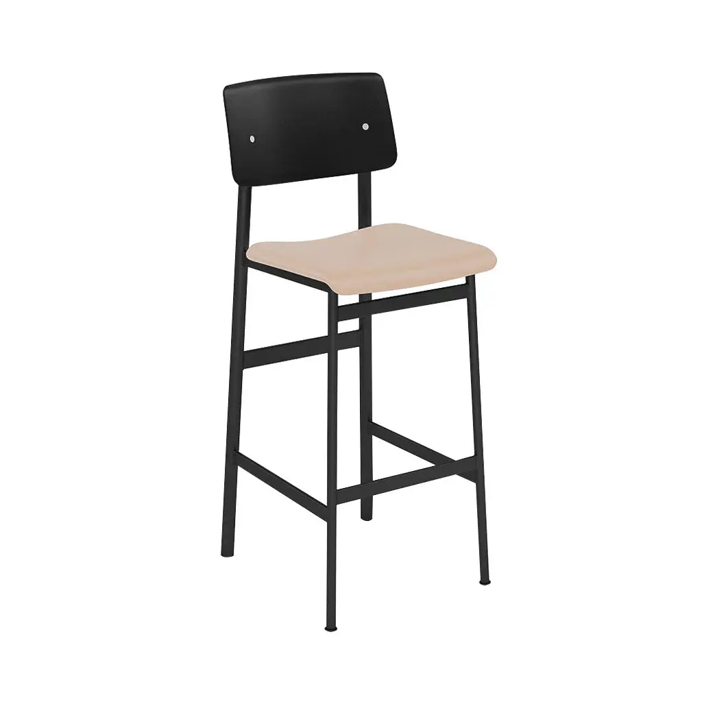 Upholstery-clad cushioning ups the comfort level as well as adding a customizing option to Mutto’s bar stool version of designer Thomas Bentzen's Loft seating. Possessing a generously scaled curved seat and backrest, it still keeps to its minimal footprint with the legs being positioned neatly under the seat. The wood-backed stool with a crisp powder-coated steel frame hews to Scandinavian codes and a range of fine fabric or leather upholstery options allow for a unique look to suit its intended environs.