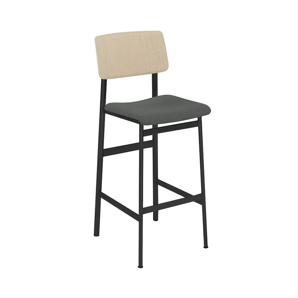 Upholstery-clad cushioning ups the comfort level as well as adding a customizing option to Mutto’s bar stool version of designer Thomas Bentzen's Loft seating. Possessing a generously scaled curved seat and backrest, it still keeps to its minimal footprint with the legs being positioned neatly under the seat. The wood-backed stool with a crisp powder-coated steel frame hews to Scandinavian codes and a range of fine fabric or leather upholstery options allow for a unique look to suit its intended environs.