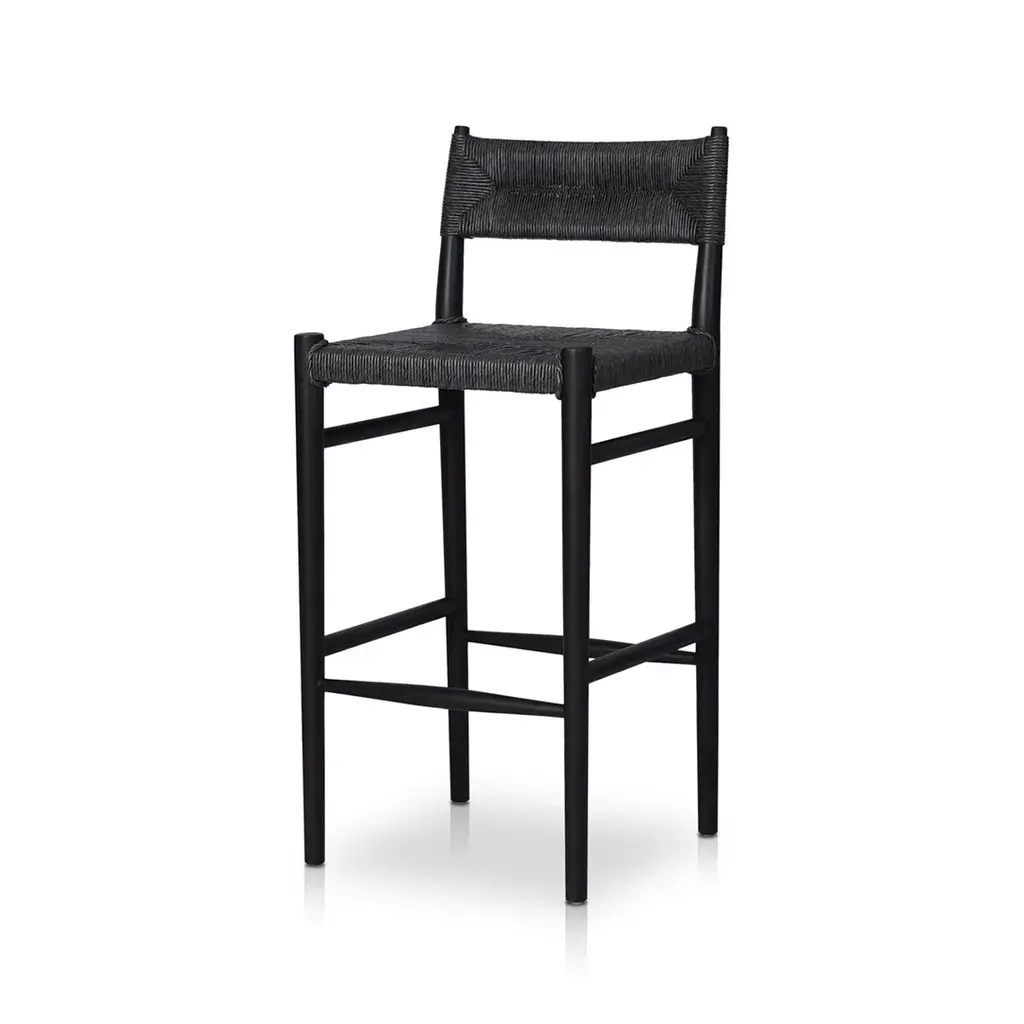 With a beautiful finish, slim, tapered teak frames this woven all-weather wicker bar stool. Cover or store indoors during inclement weather and when not in use. Ships In 10-14 Business Days Ships In 10-14 Business Days All-weather woven wicker seat and back Natural teak frame This image is for illustrative purposes only. The colors shown are accurate within the constraints of lighting, photography, and the color accuracy of your screen.