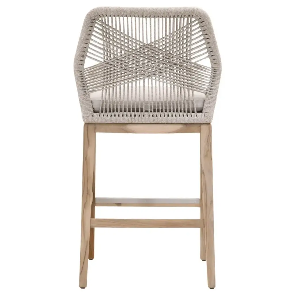 Loom Outdoor Barstool Taupe & White Flat Rope, Performance Pumice, Gray Teak