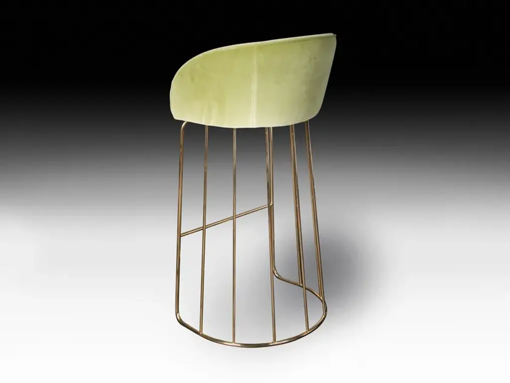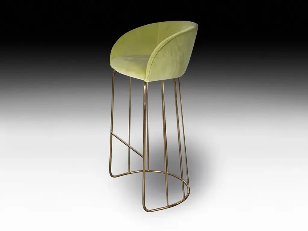 Louise is a bar stool with padded seat and backrest, base in glossy brass finish.