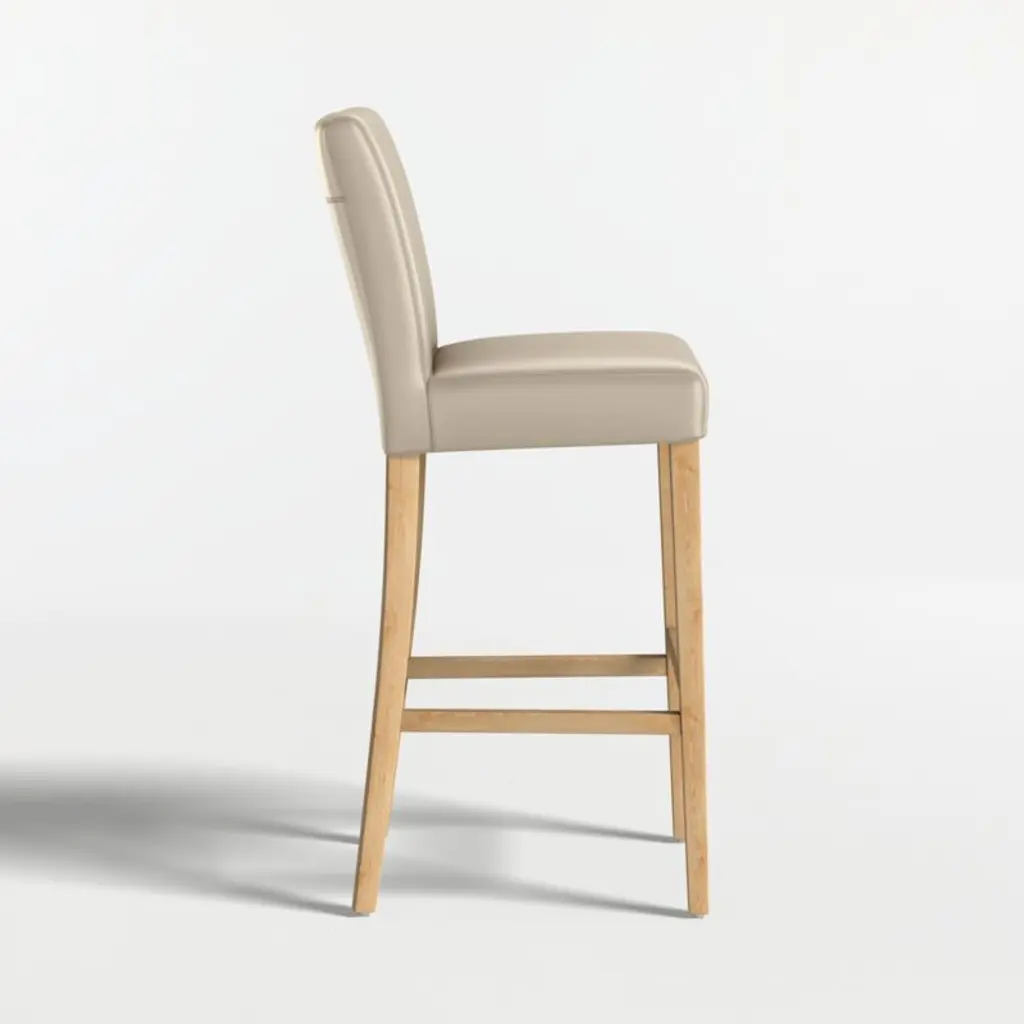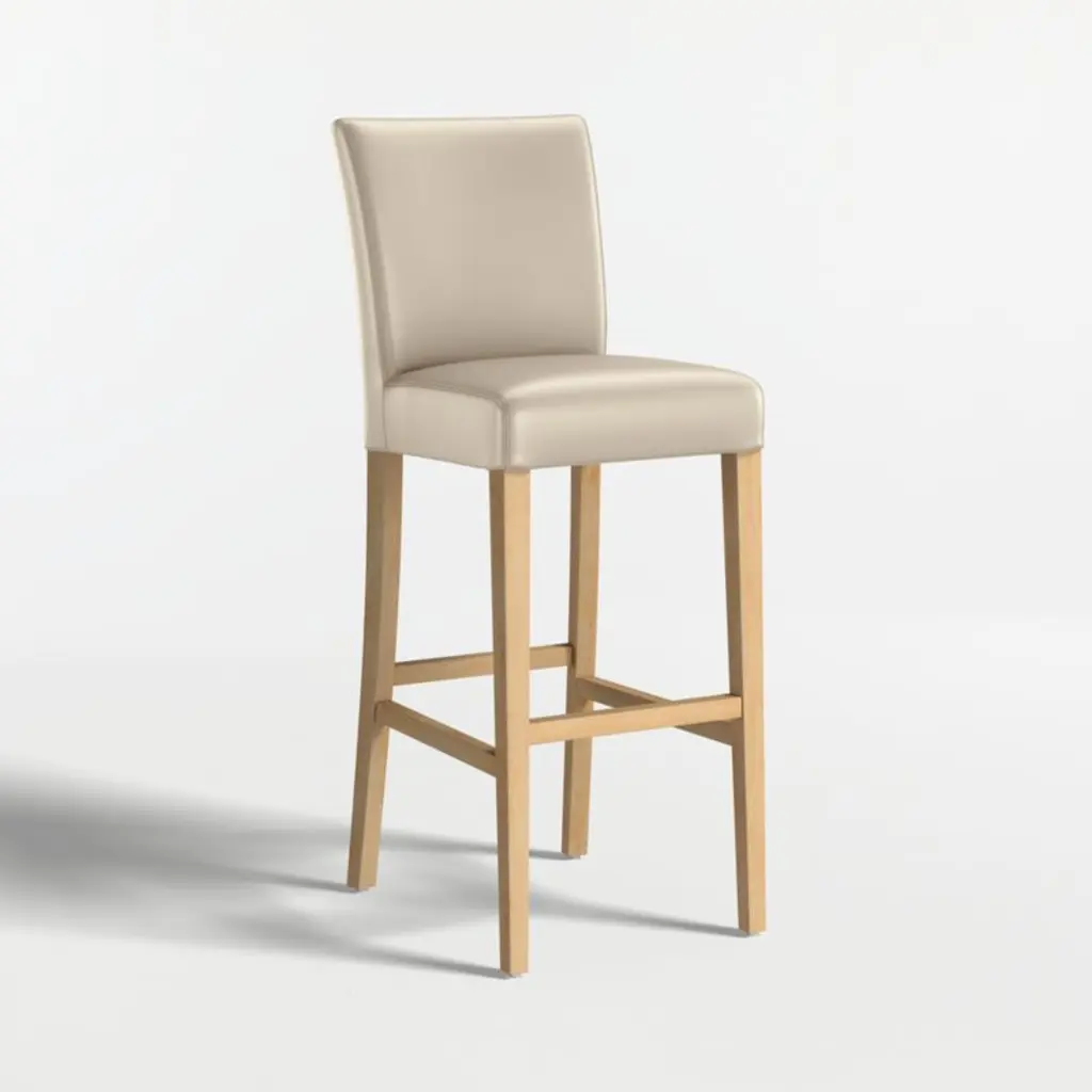 Lowe Bone Leather Bar Stool With Natural Wood Legs