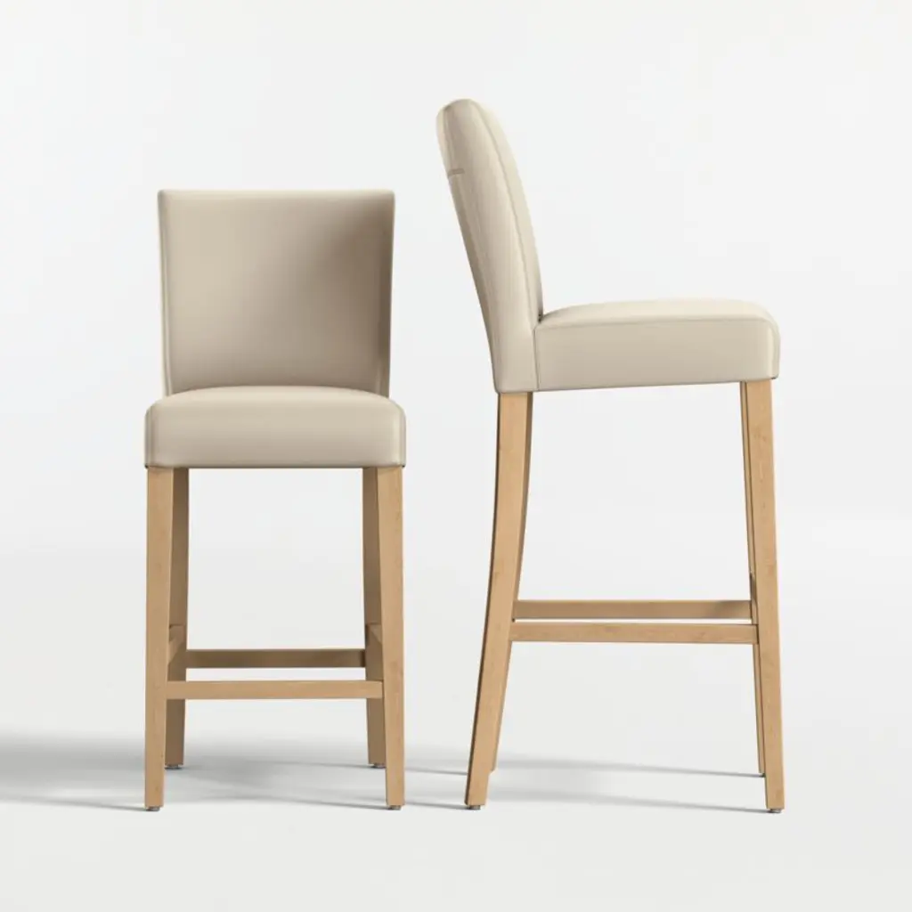 With a roomy cushioned seat and back, our Lowe bar stool is designed for lingering at a bar or high dining table. Sleek leather tailors the cushioned, tight seat in sophistication, pairing perfectly with slim hardwood legs. Our Lowe collection's many seating options in an array of coordinating leathers and fabrics mix and match for the perfect look.