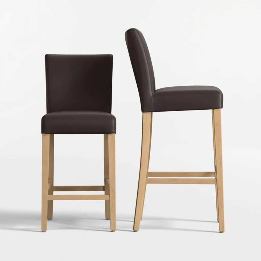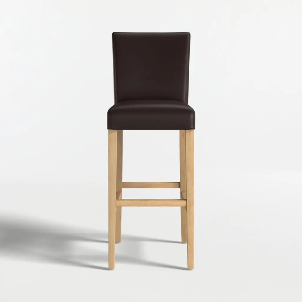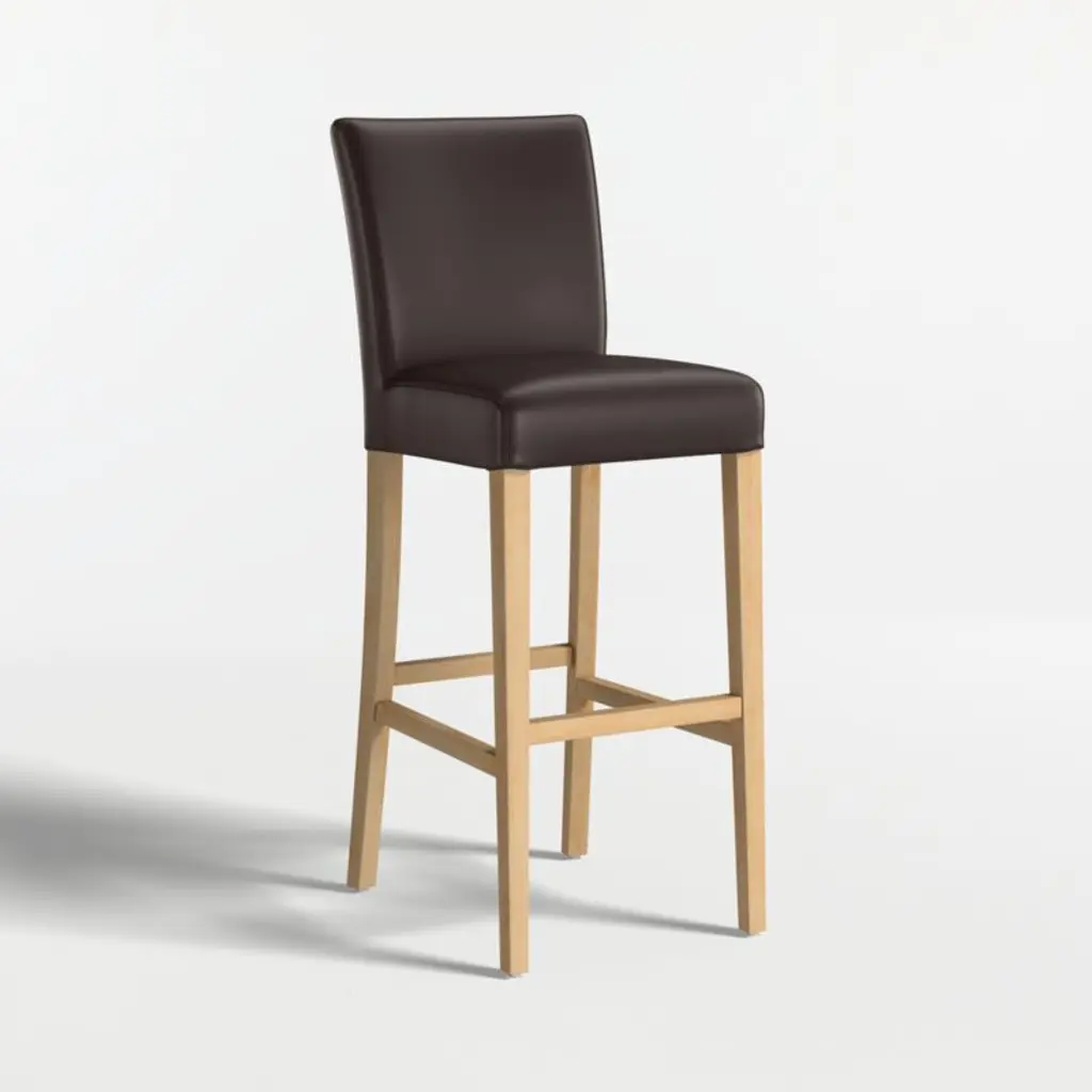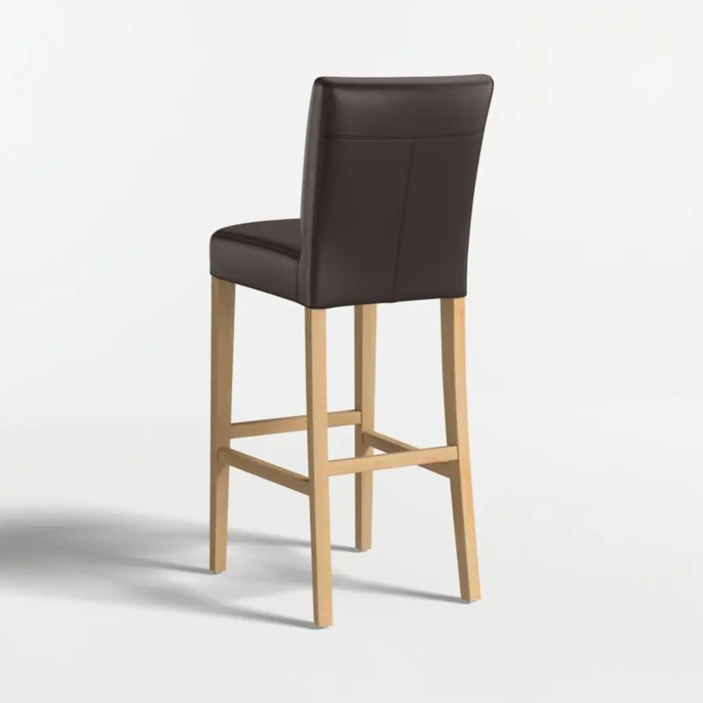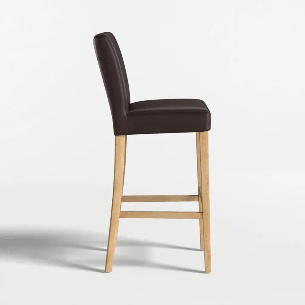 Lowe Chocolate Leather Bar Stool With Natural Wood Legs