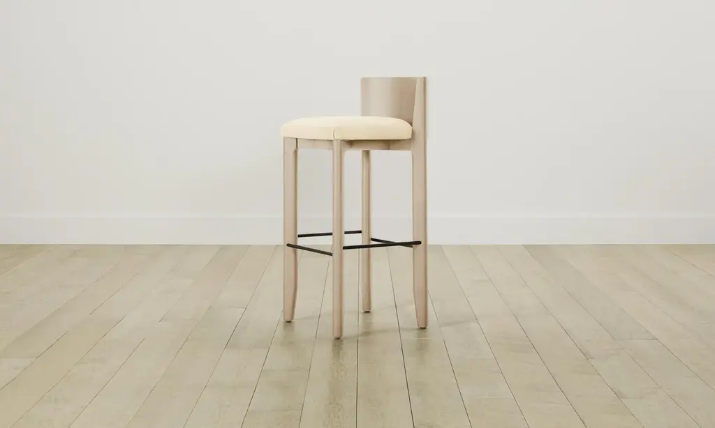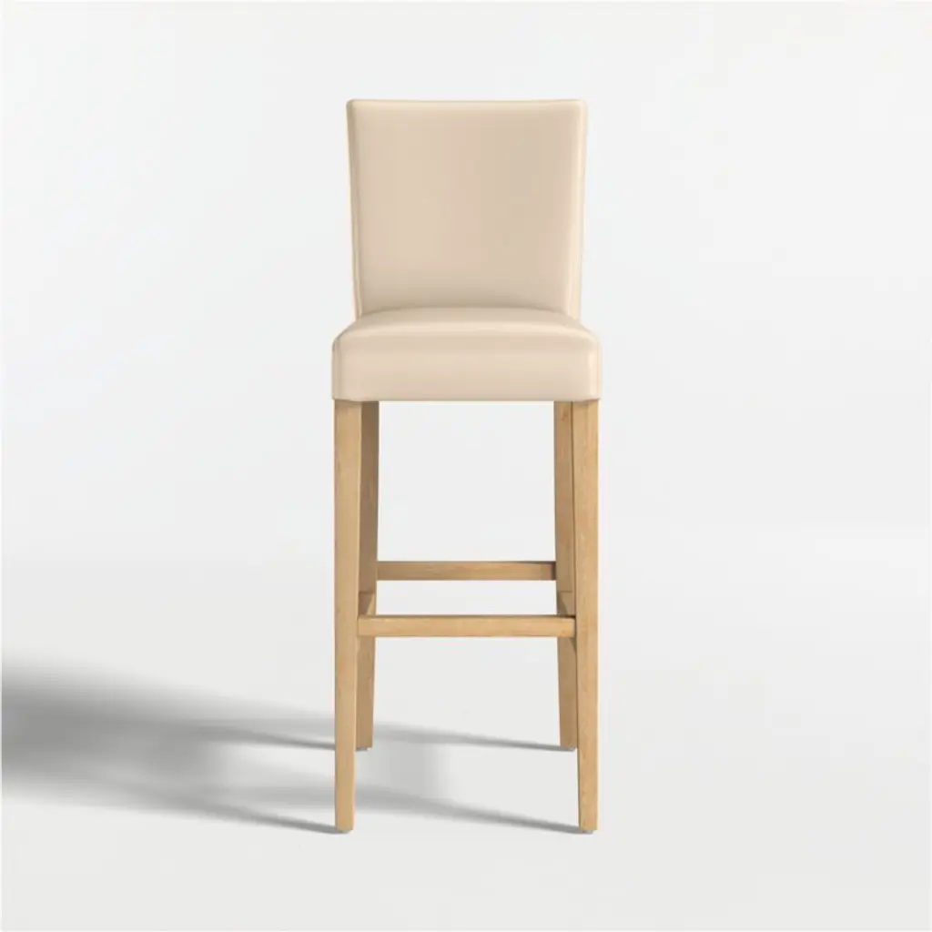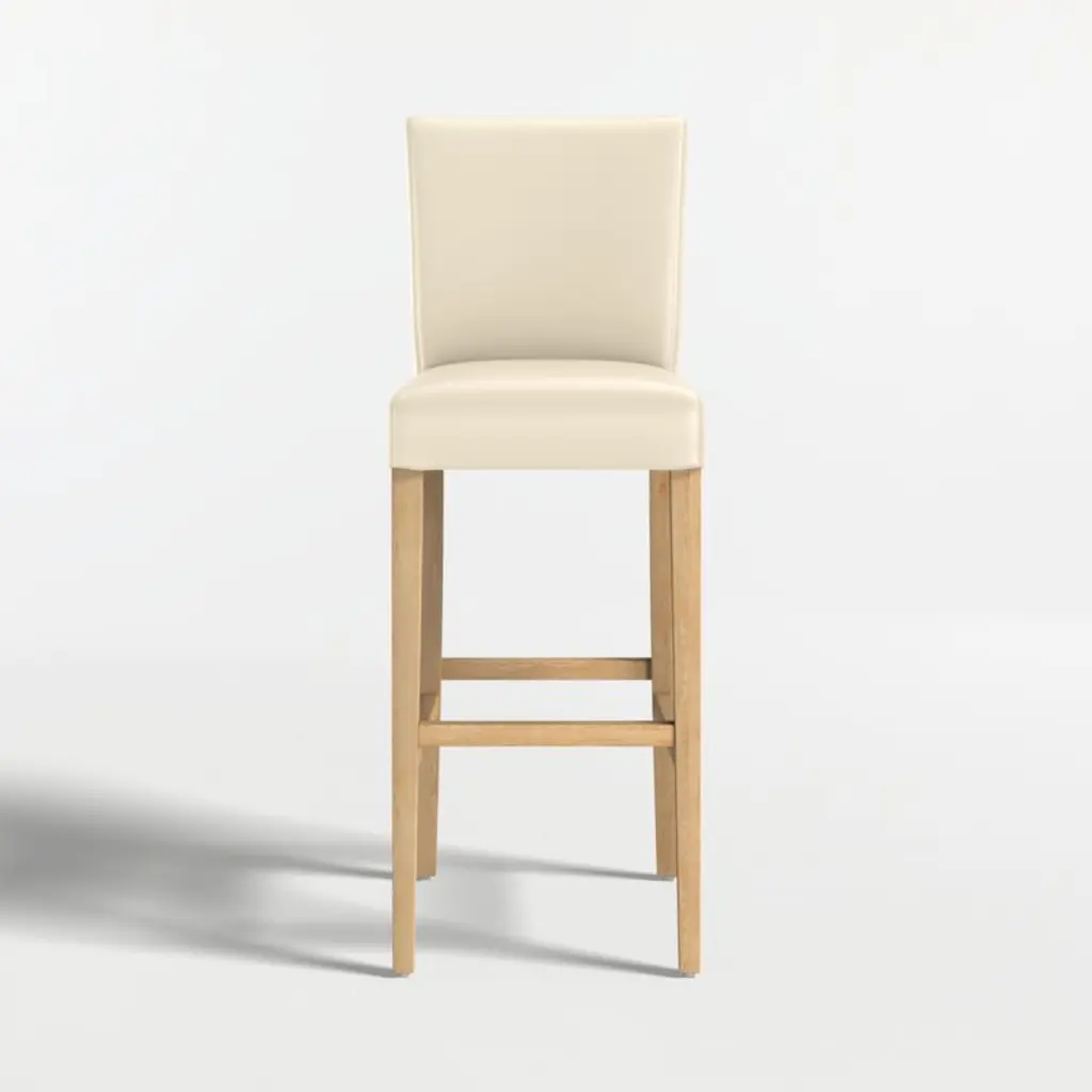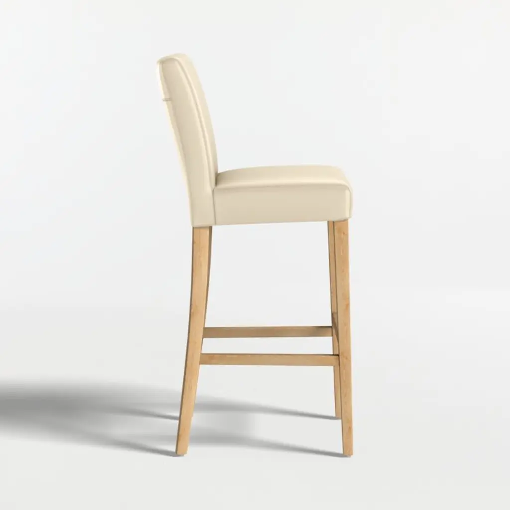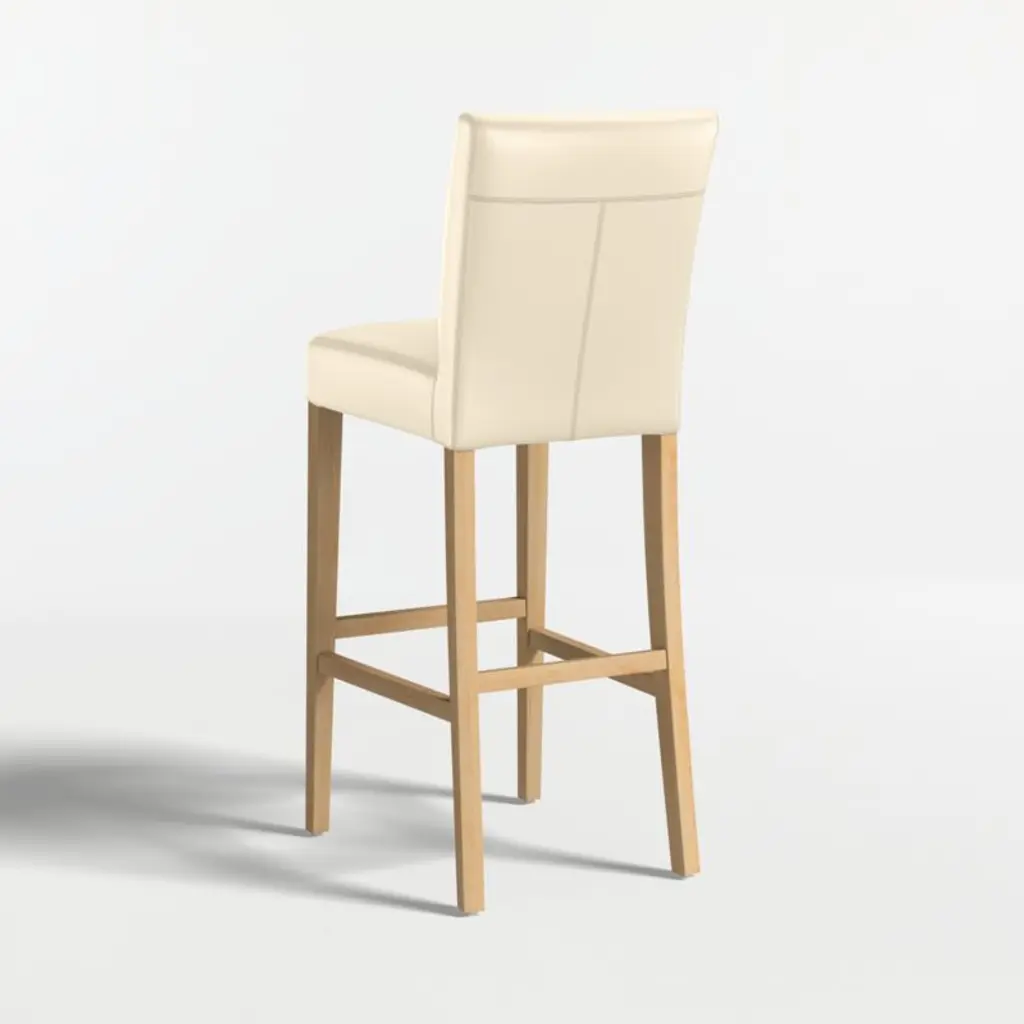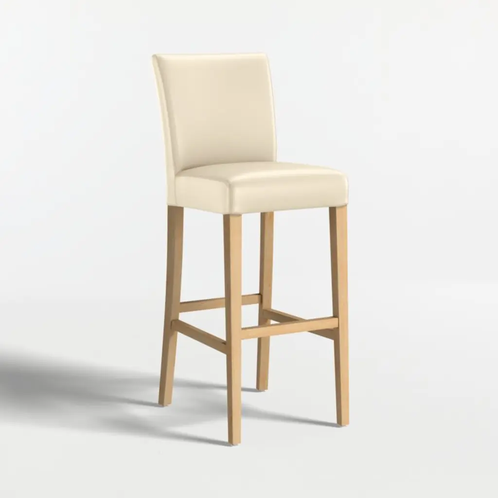 Lowe Ivory Leather Bar Stool With Natural Wood Legs