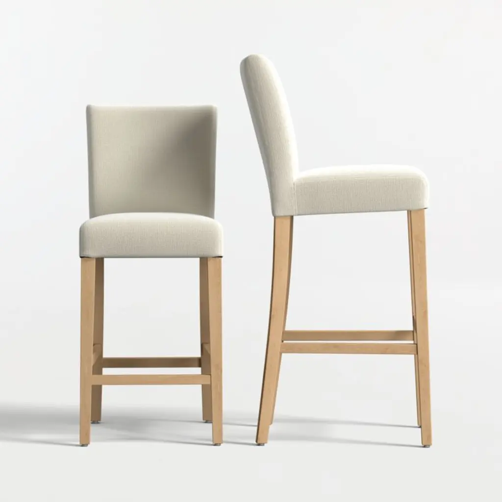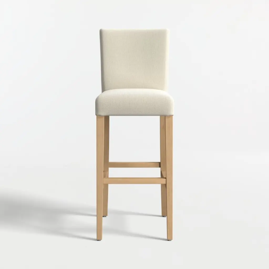 Designed for comfort with design-conscious style, our Lowe bar stool is meant for lingering at a bar or high dining table. Fabric upholstery tailors the cushioned tight seat and back, partnering perfectly with sustainably sourced hardwood legs.