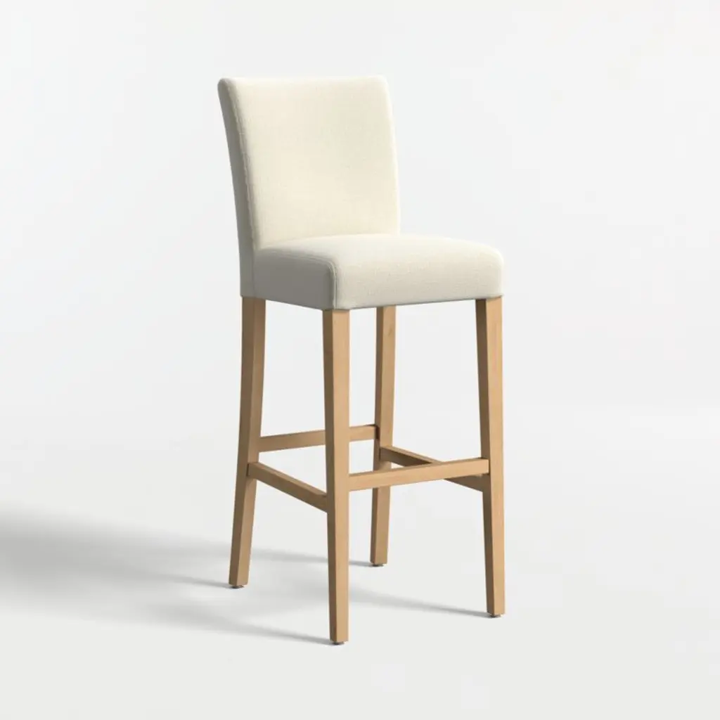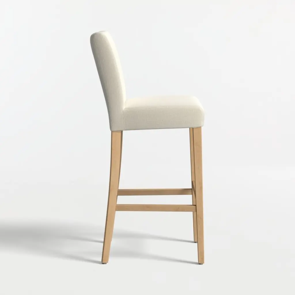Lowe Ivory Upholstered Bar Stool With Natural Wood Legs