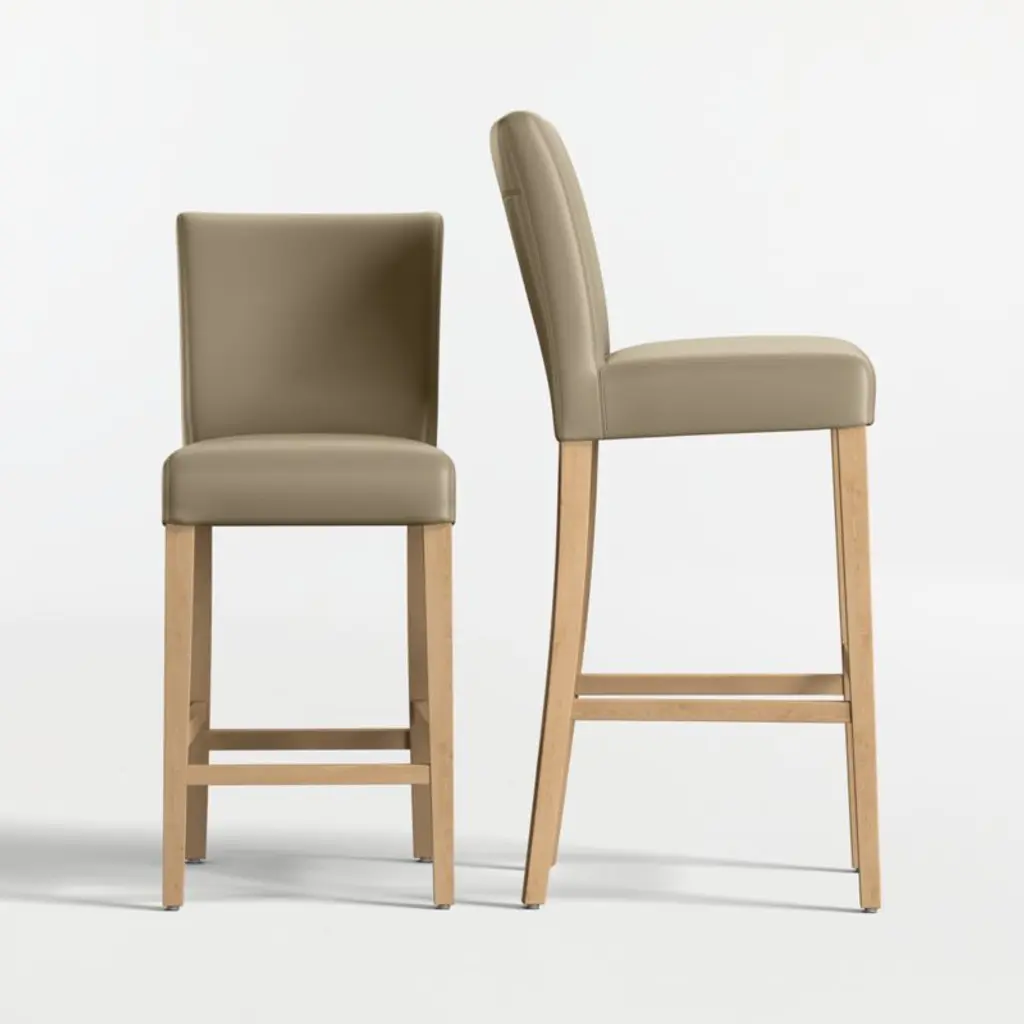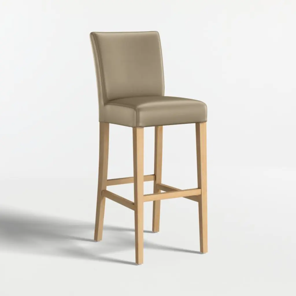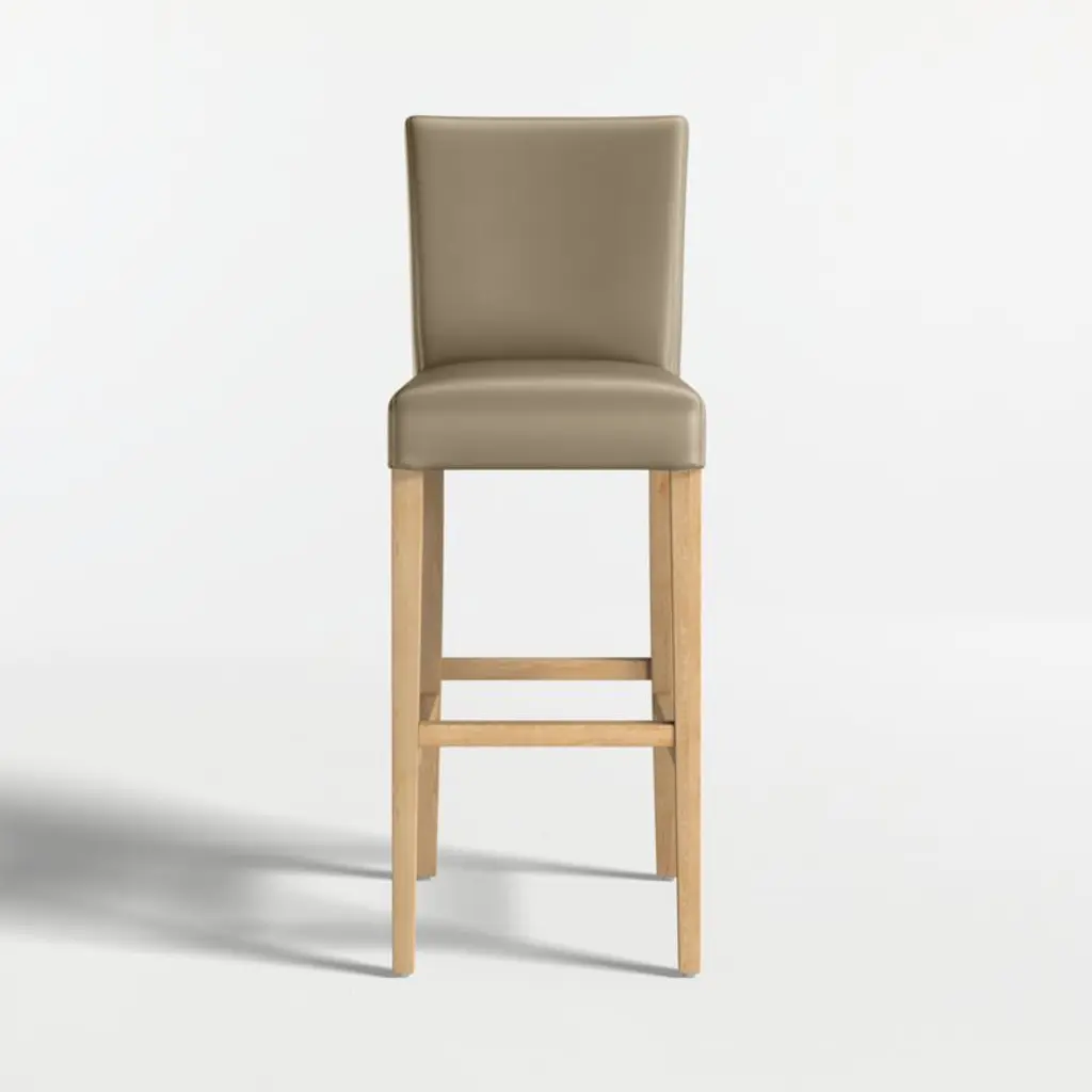 With a roomy cushioned seat and back, our Lowe bar stool is designed for lingering at a bar or high dining table. Sleek leather tailors the cushioned, tight seat in sophistication, pairing perfectly with slim hardwood legs. Our Lowe collection's many seating options in an array of coordinating leathers and fabrics mix and match for the perfect look.