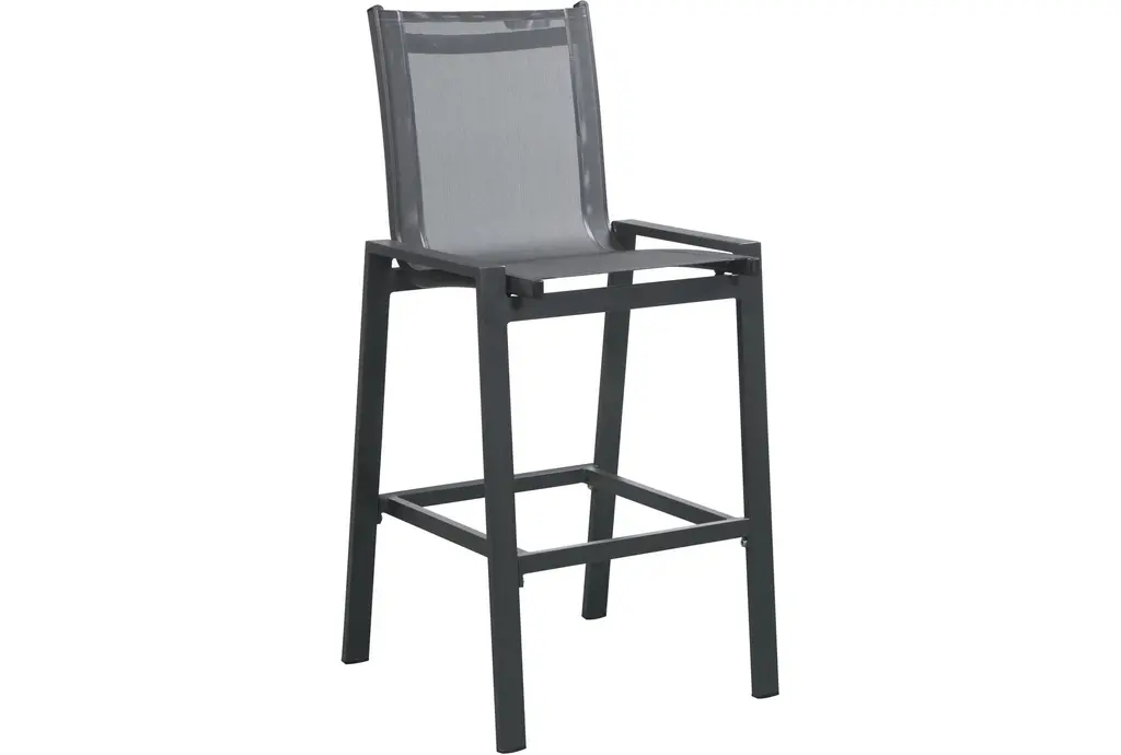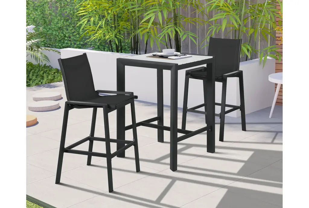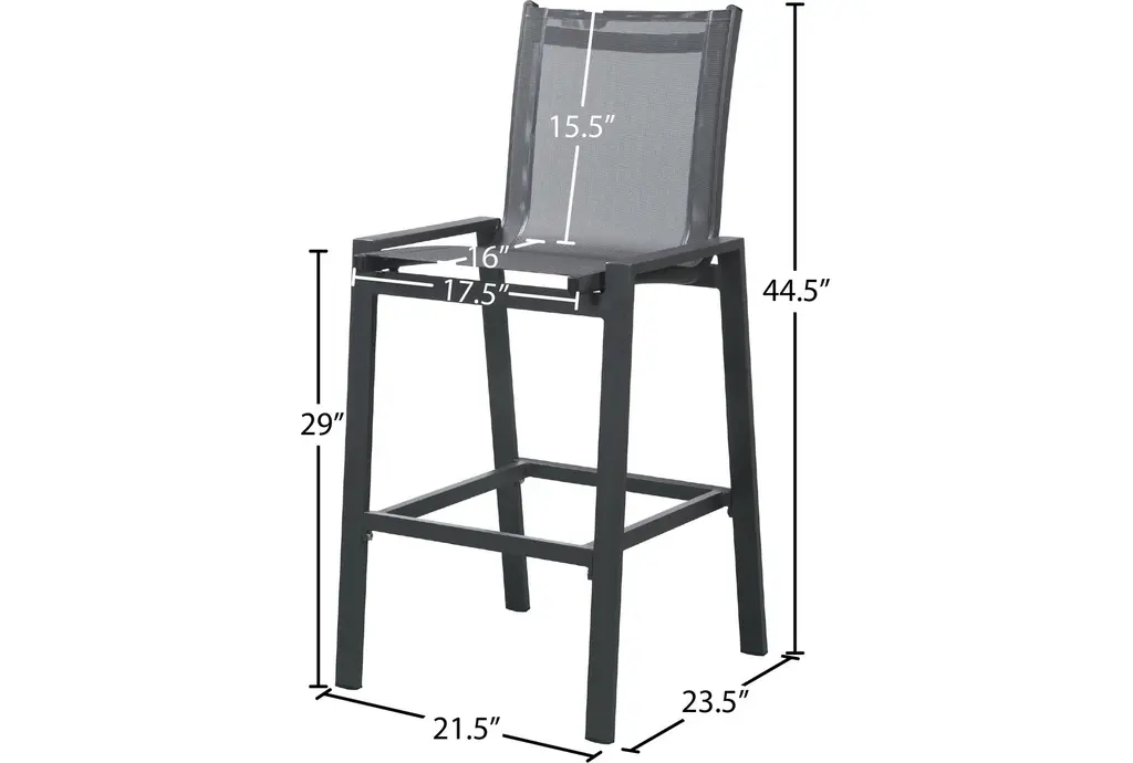Enhance your outdoor patio with the Lucas Black Mesh Water Resistant Fabric Outdoor Patio Aluminum Mesh Barstool Set Of 2. These modern barstools are designed to withstand the elements and provide comfortable seating for your outdoor space. The combination of water-resistant mesh fabric and sturdy aluminum ensures durability and a sleek look for years to come.