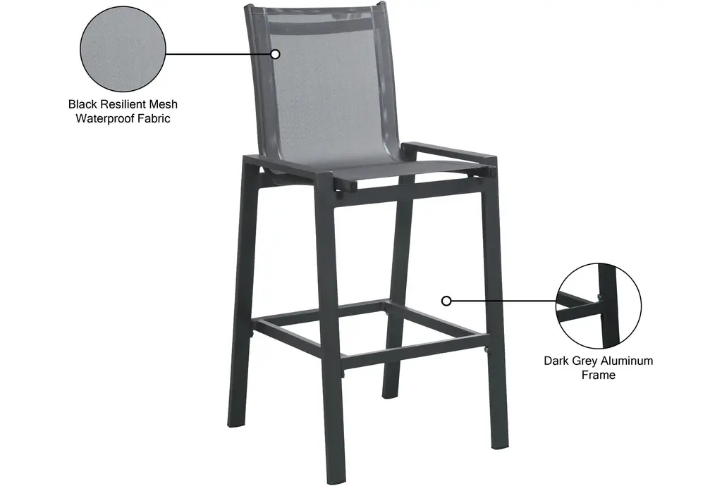 Lucas Black Mesh Water Resistant Fabric Outdoor Patio Aluminum Mesh Barstool Set Of 2