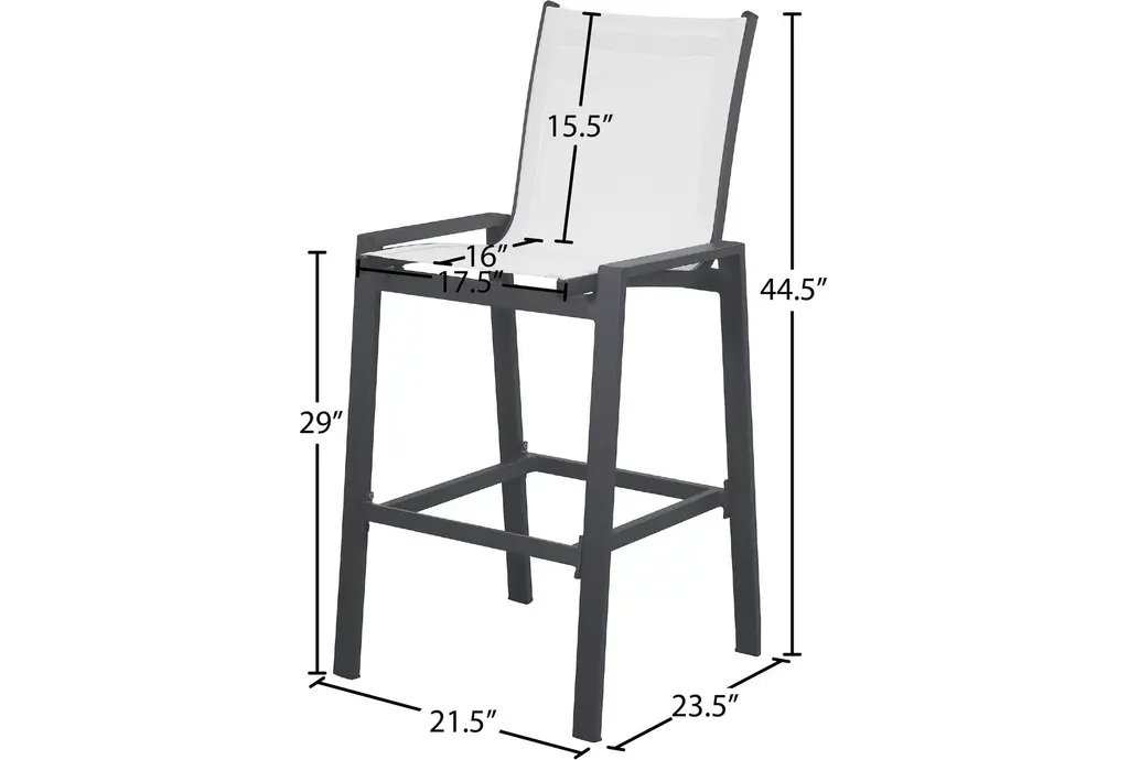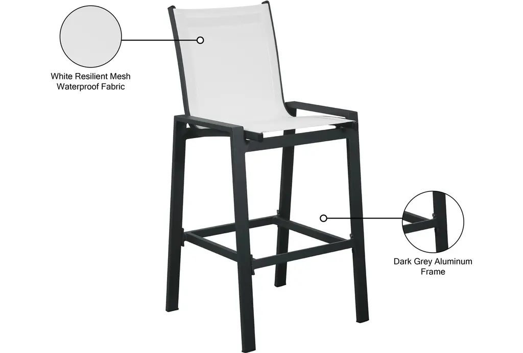 Enhance your outdoor space with the Lucas White Mesh Water Resistant Fabric Outdoor Patio Aluminum Mesh Barstool Set Of 2. These armless barstools offer a modern look that is both functional and stylish, perfect for any patio or terrace. The water resistant mesh fabric and sturdy aluminum frame ensure durability and comfort, making them ideal for outdoor use.
