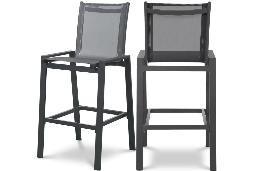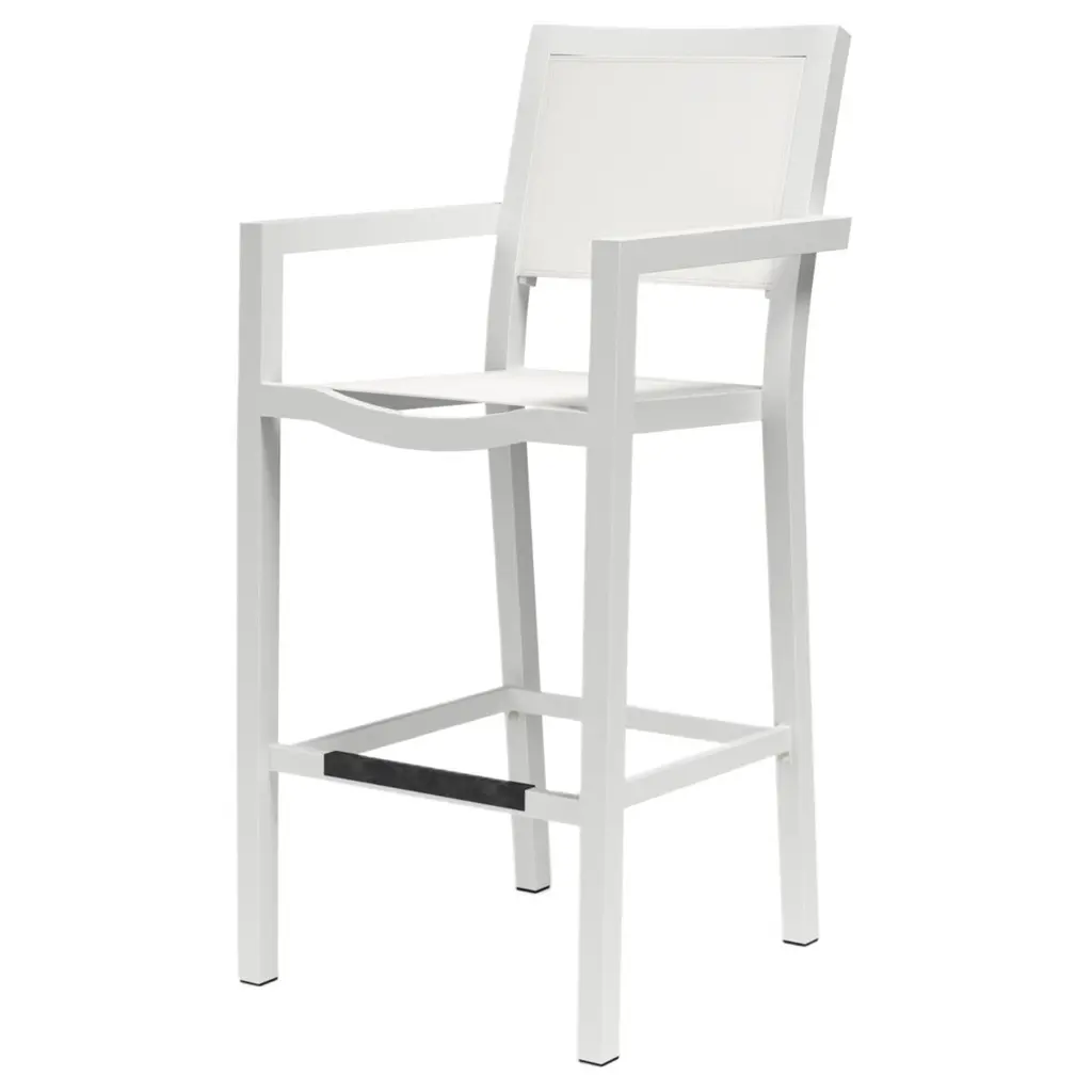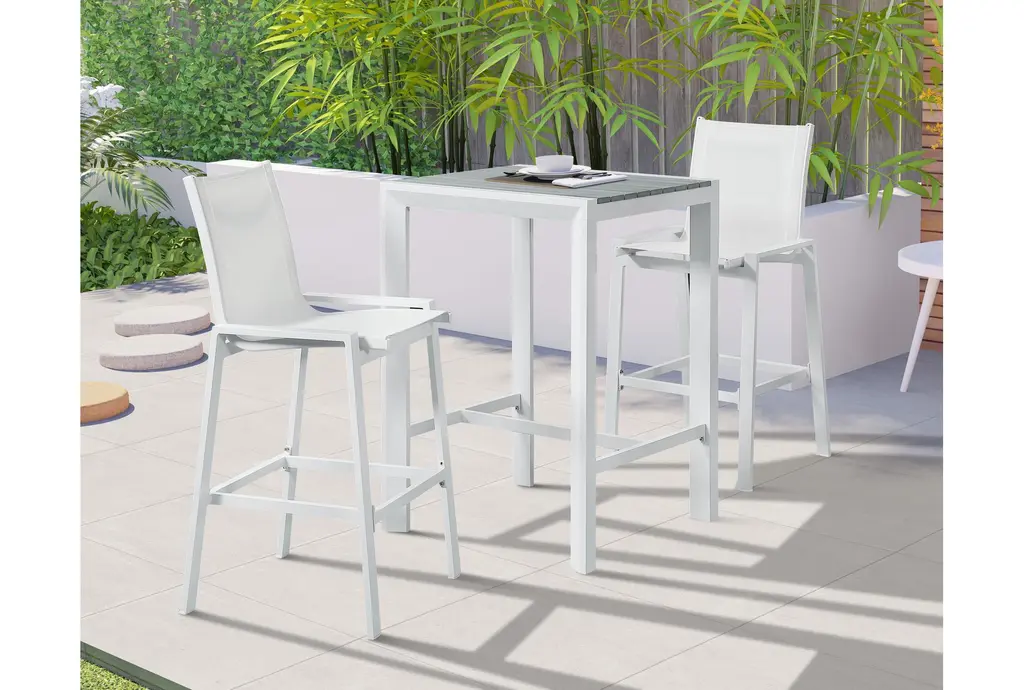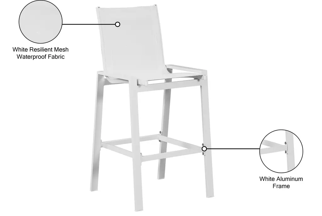 Enhance your outdoor space with the Lucas White Mesh Water Resistant Fabric Outdoor Patio Aluminum Mesh Barstool Set Of 2. These modern, armless barstools feature a sleek design that complements any outdoor setting. The water-resistant mesh fabric and sturdy aluminum construction ensure durability and comfort for long-lasting enjoyment.