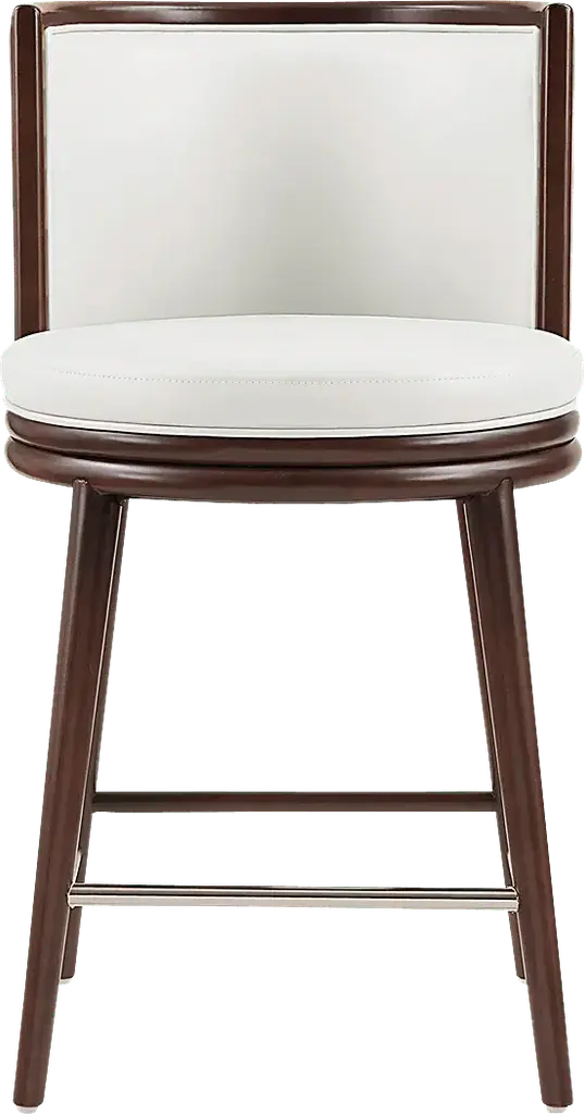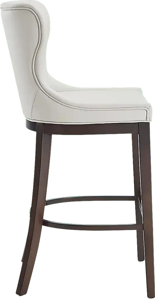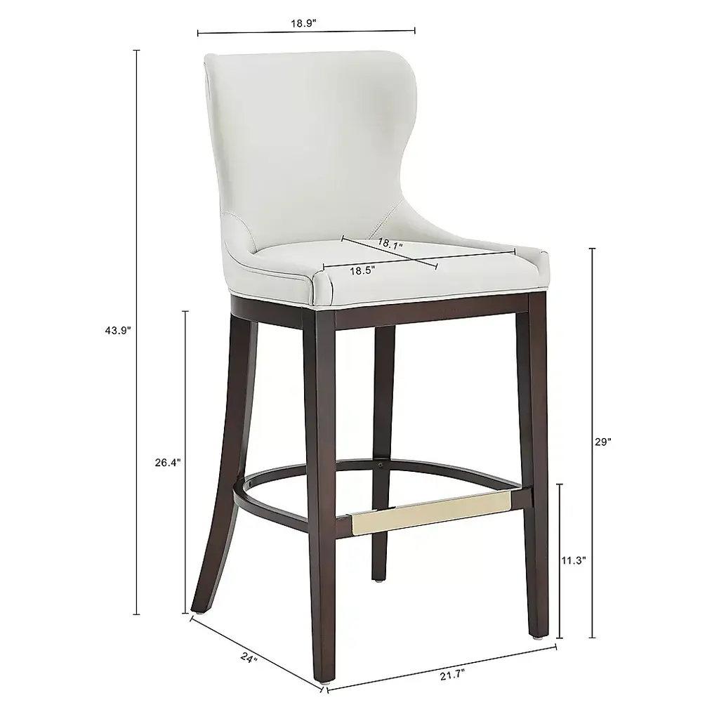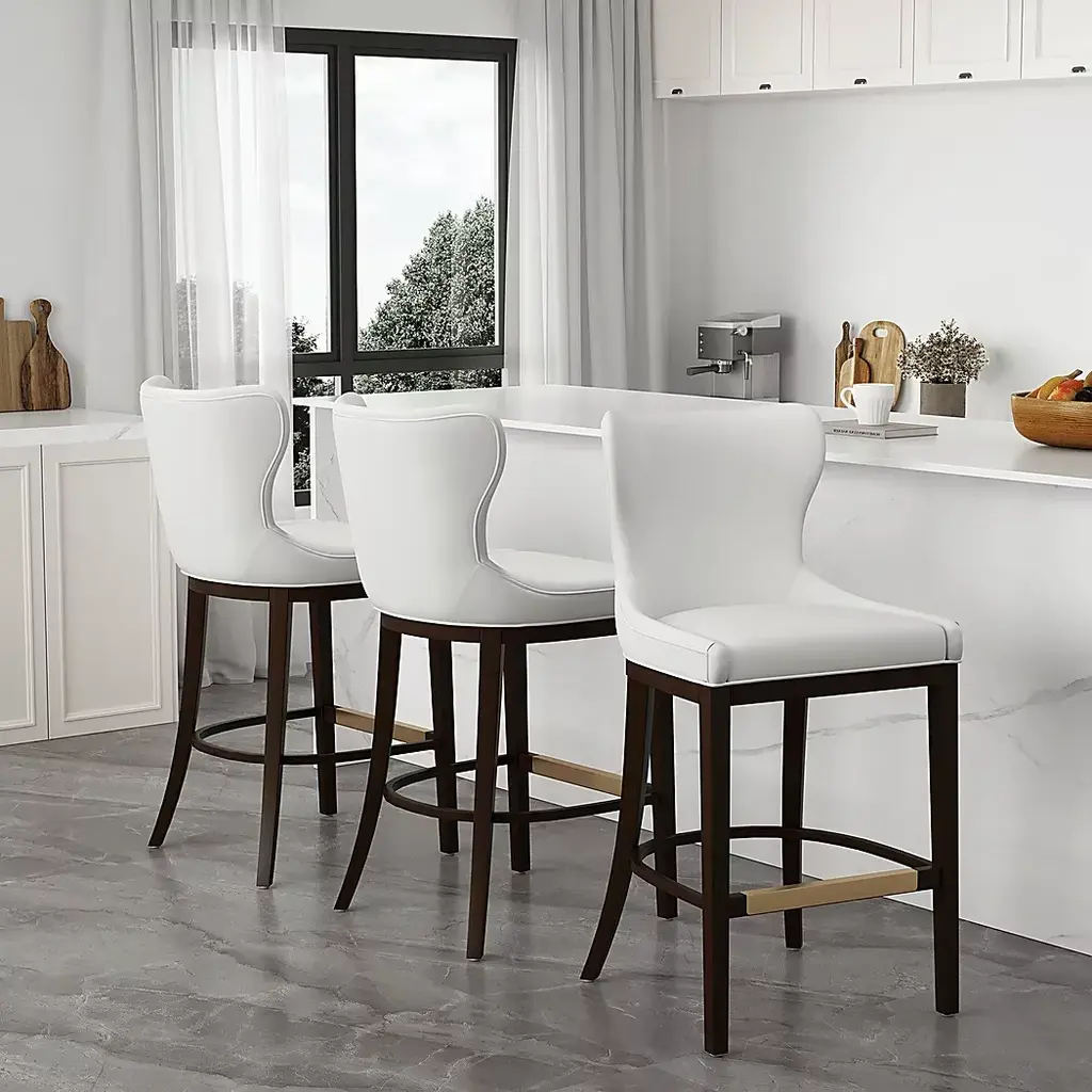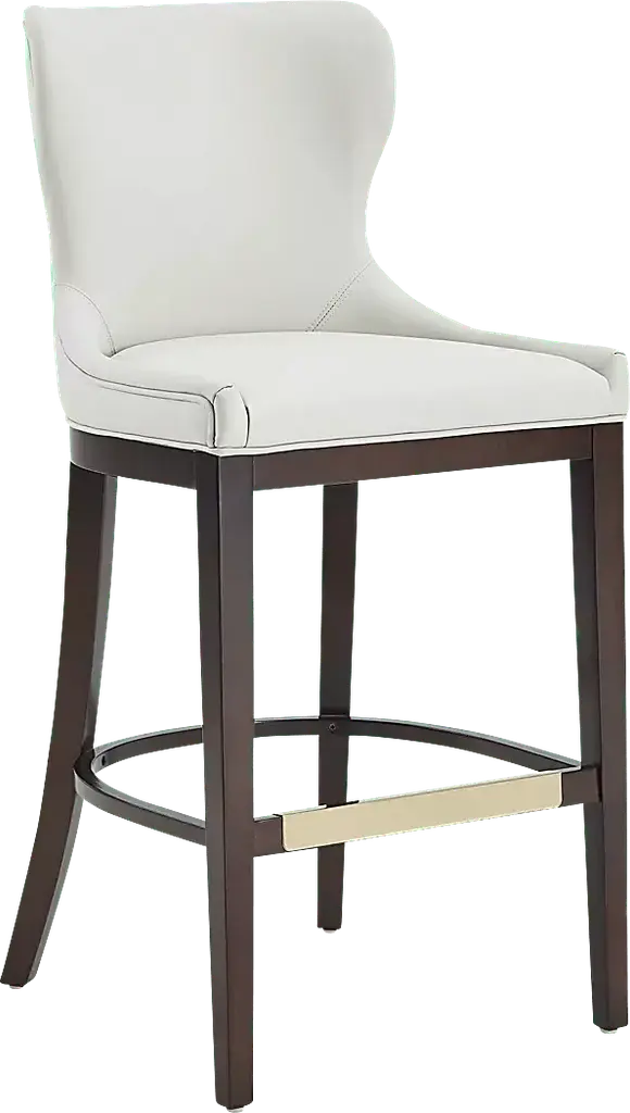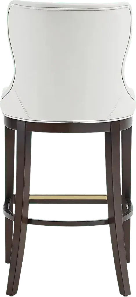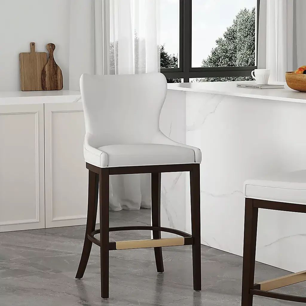 Elevate your everyday with the Lucentwater white barstool. A gently curved backrest and plush padded seat deliver the perfect balance of style and support, wrapped in smooth faux leather for a sleek, modern feel. The dark wood frame is grounded in warmth, while a gold-finished footrest adds just the right touch of polish. Whether you're sipping coffee or sharing cocktails, this stool brings comfort and elegance to every moment.