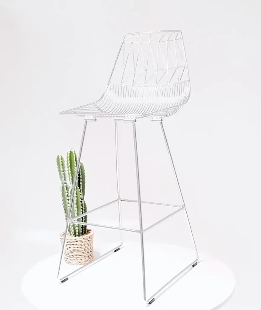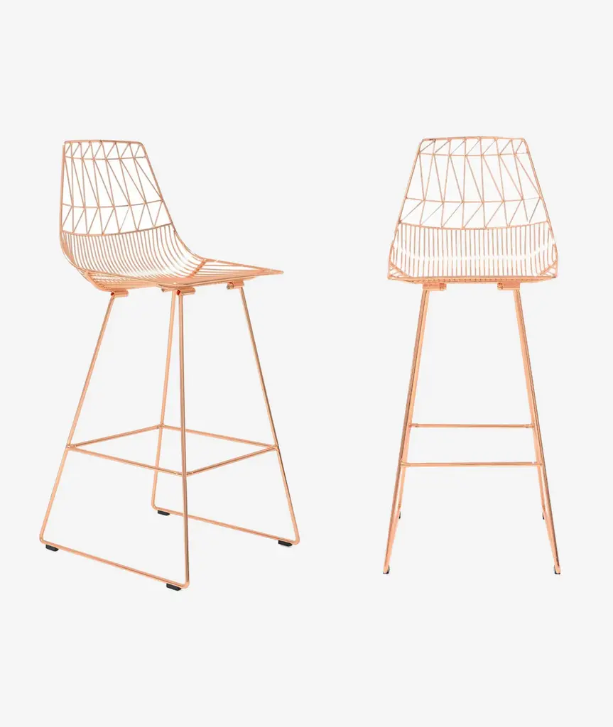 With the modern elegance of Bend Goods' signature Lucy Chair, The Lucy Bar Stool elevates the bar experience. Stunning in a commercial setting or as an accent to a home bar, this contemporary wire bar stool is durable and customizable with metallic finishes, stainless steel, or a variety of colors to suit any interior design aesthetic. *Please note: this item is for the Lucy Wire Bar Stool without seat pads. Shop seat cushions in Sunbrella color options here.