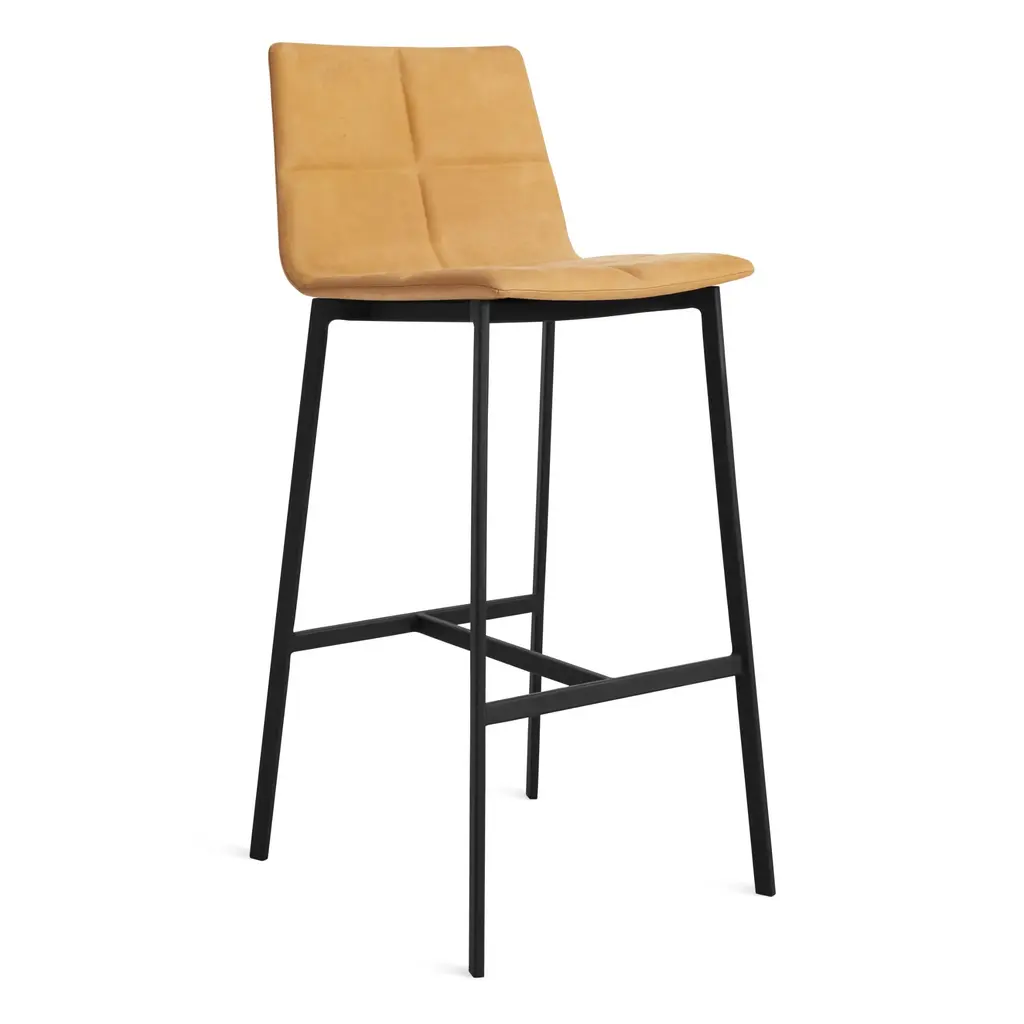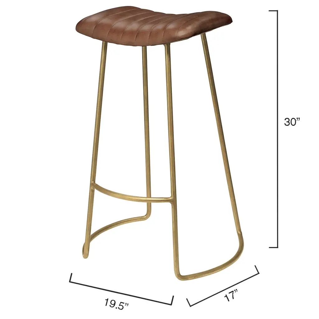 Luke Leather Barstool, Caramel/gold Leather
