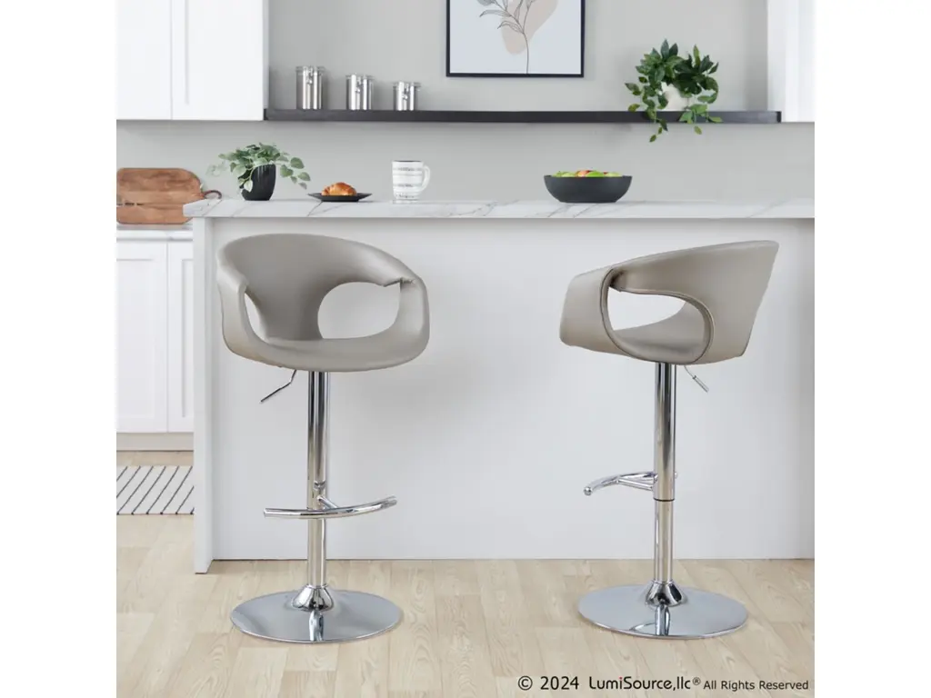 Introducing the Curva Adjustable Barstool by LumiSource, where modern design meets unparalleled comfort. With its stylish, fully-upholstered seat and sleek adjustable metal base, this stool adds a touch of sophistication to any space. The unique cut-out armrests and cushioned seat ensure that style doesn't compromise comfort. Elevate your kitchen or bar area with the perfect blend of form and function!