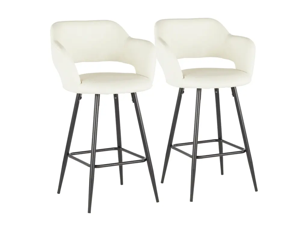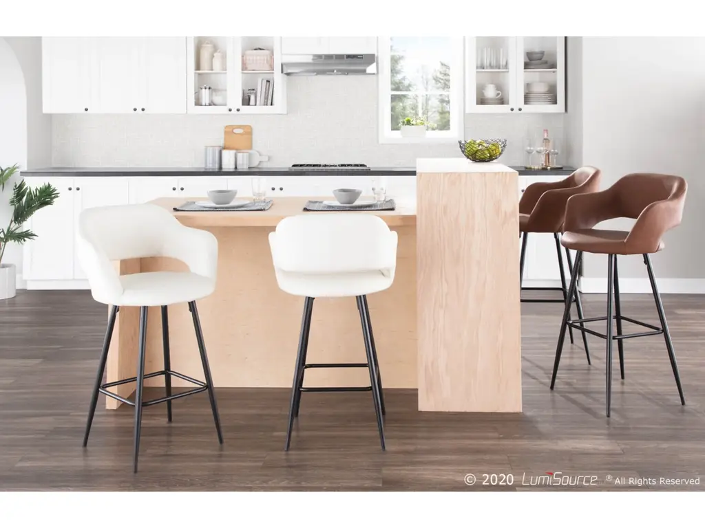 Inspired by contemporary design, the Margarite Counter Stool features a low backrest with a slight opening, ergonomically designed to fit your body, armrests for additional comfort and tapered black metal legs. Available in a variety of color options, choose the color that suits your space best!