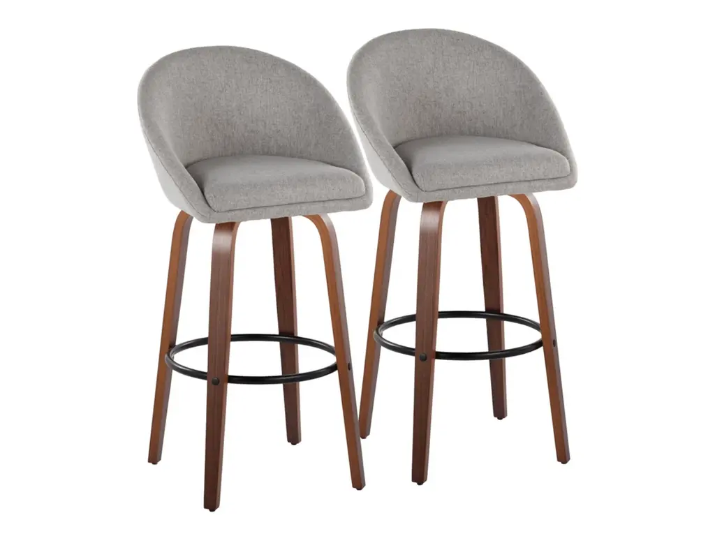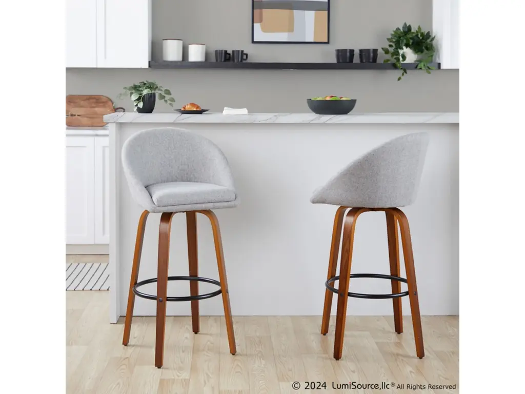 Elevate your space with the Matisse Highback Fixed-Height Barstool by LumiSource, where modern elegance meets exceptional comfort. Featuring a stylish rounded seat design and plush upholstery, this stool is perfect for any kitchen or bar setting. Its sleek bent wood legs and round metal footrest provide both stability and sophistication. Transform your dining experience with the Matisse, where style and functionality come together beautifully.