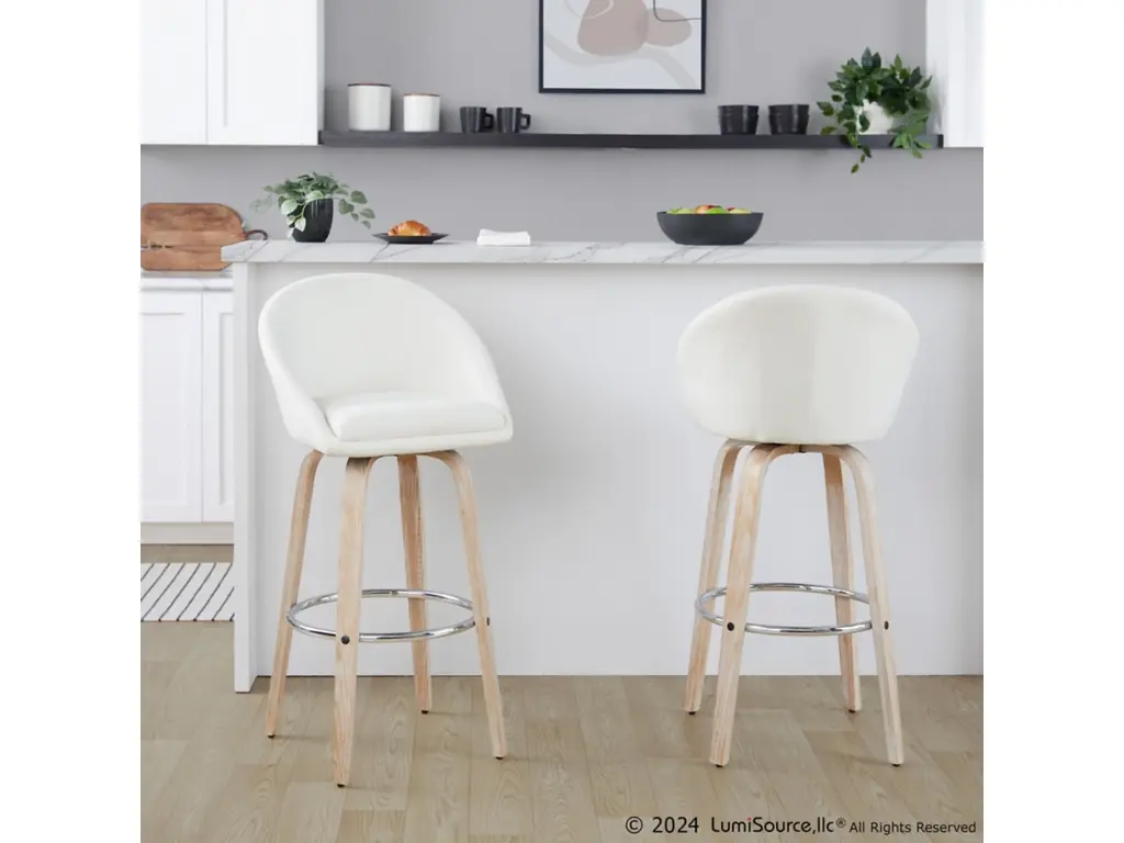Elevate your space with the Matisse Highback Fixed-Height Barstool by LumiSource, where modern elegance meets exceptional comfort. Featuring a stylish rounded seat design and plush upholstery, this stool is perfect for any kitchen or bar setting. Its sleek bent wood legs and round metal footrest provide both stability and sophistication. Transform your dining experience with the Matisse, where style and functionality come together beautifully.