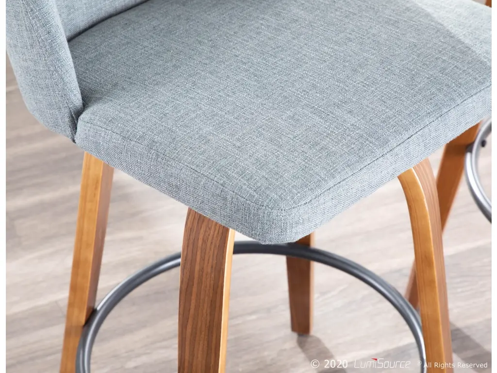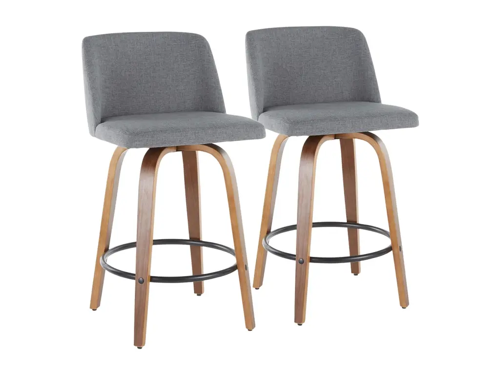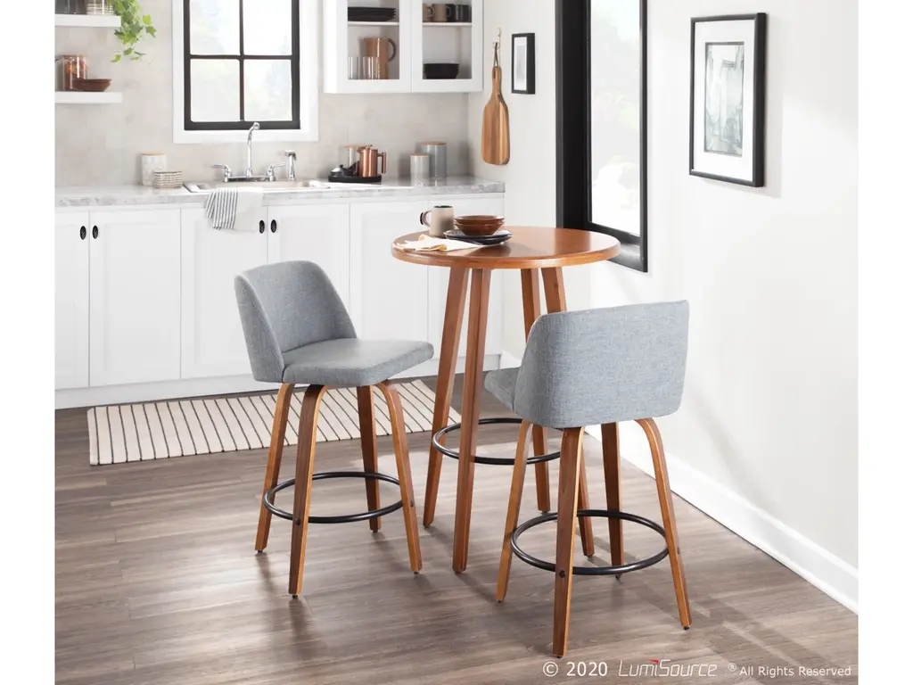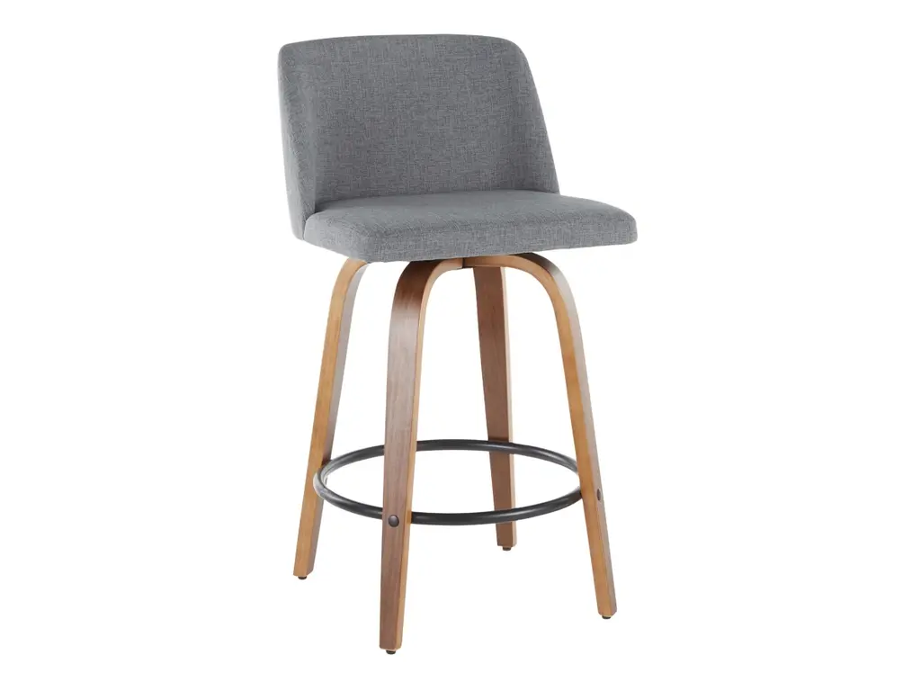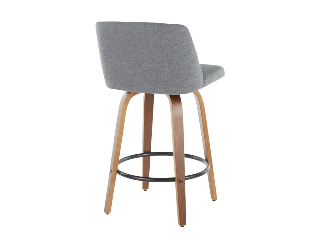 Comfort, modern simplicity, and classic lines define the appealing look of the Toriano Counter Stool by LumiSource. A padded upholstered seat sits on a fixed-height Mid-Century inspired tapered leg base with a round footrest. Available in various colors, choose the one that suits your space best!