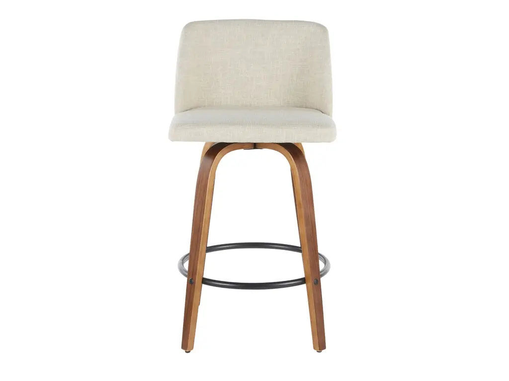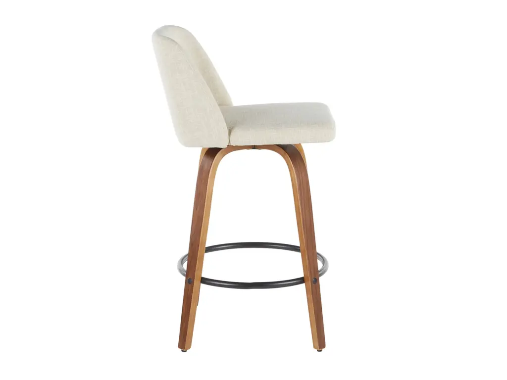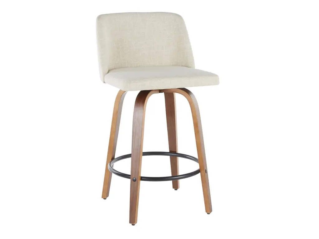 Comfort, modern simplicity, and classic lines define the appealing look of the Toriano Counter Stool by LumiSource. A padded upholstered seat sits on a fixed-height Mid-Century inspired tapered leg base with a round footrest. Available in various colors, choose the one that suits your space best!