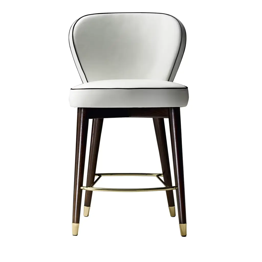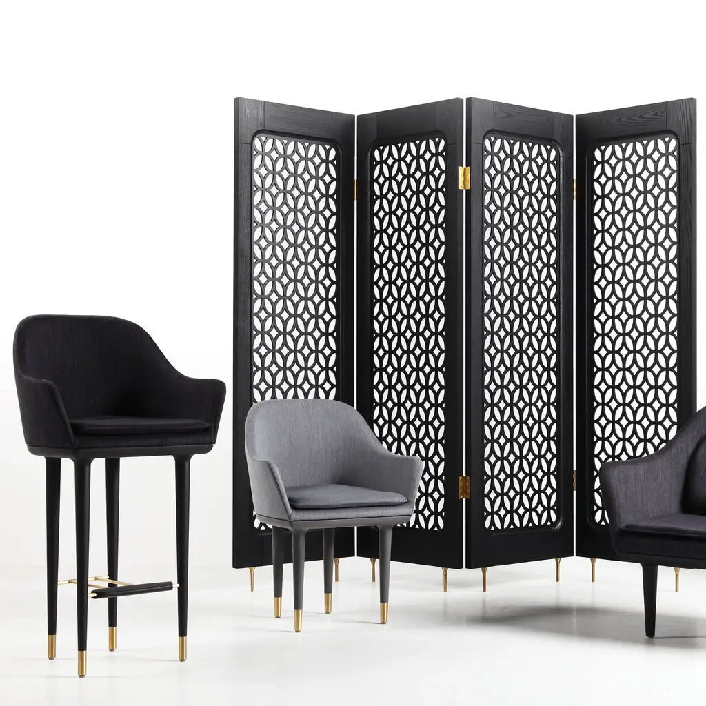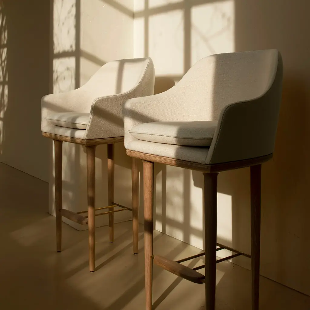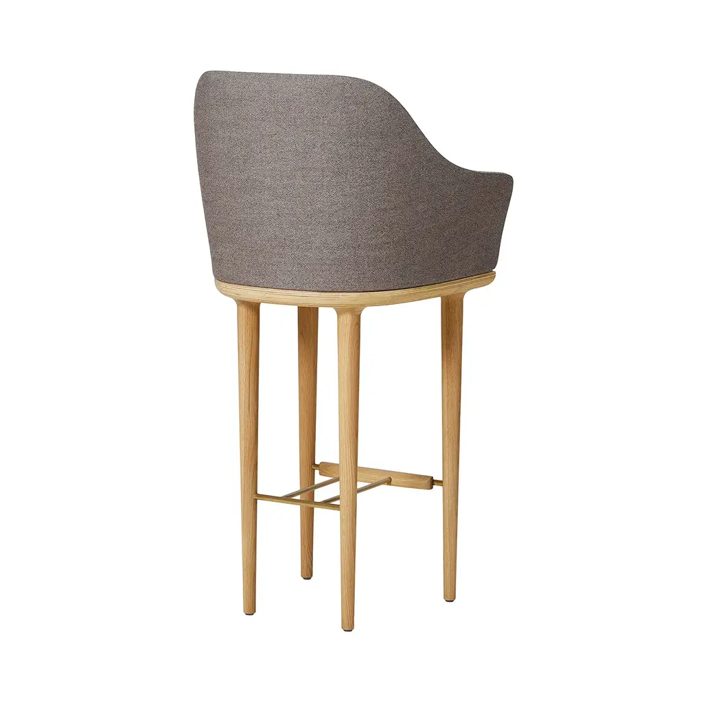 Stellar Works expands its Lunar Chair collection in a barstool-height version with the same molded-foam contours sheathed in fine upholstery. Taking its cue from the meditative goddess of the moon, Chang’e, the designers at Space Copenhagen sought to emulate her sense of tranquility into expressly comfortable seating. With the richness of an ash or walnut base and discreet finishing touches of plated brass, the chair has an appropriately timeless quality.