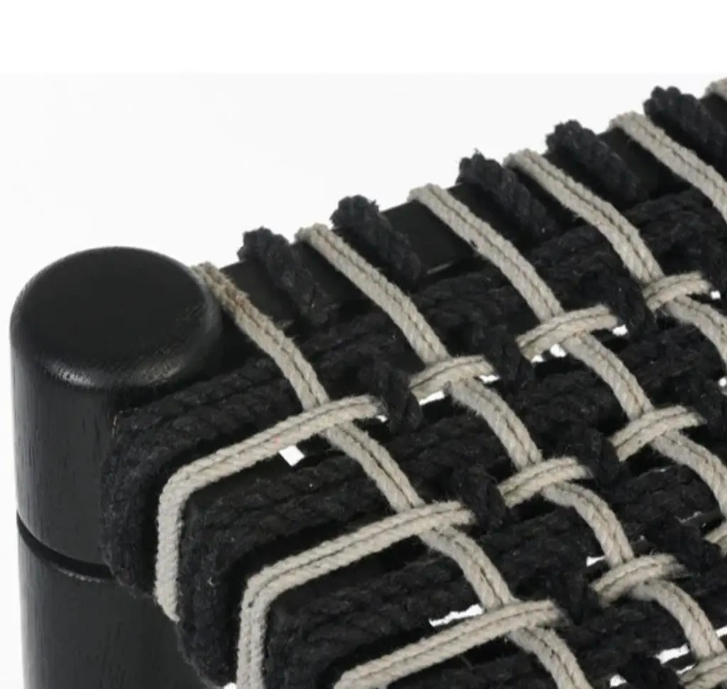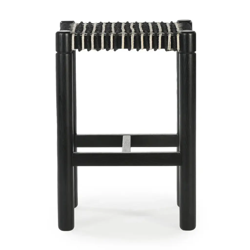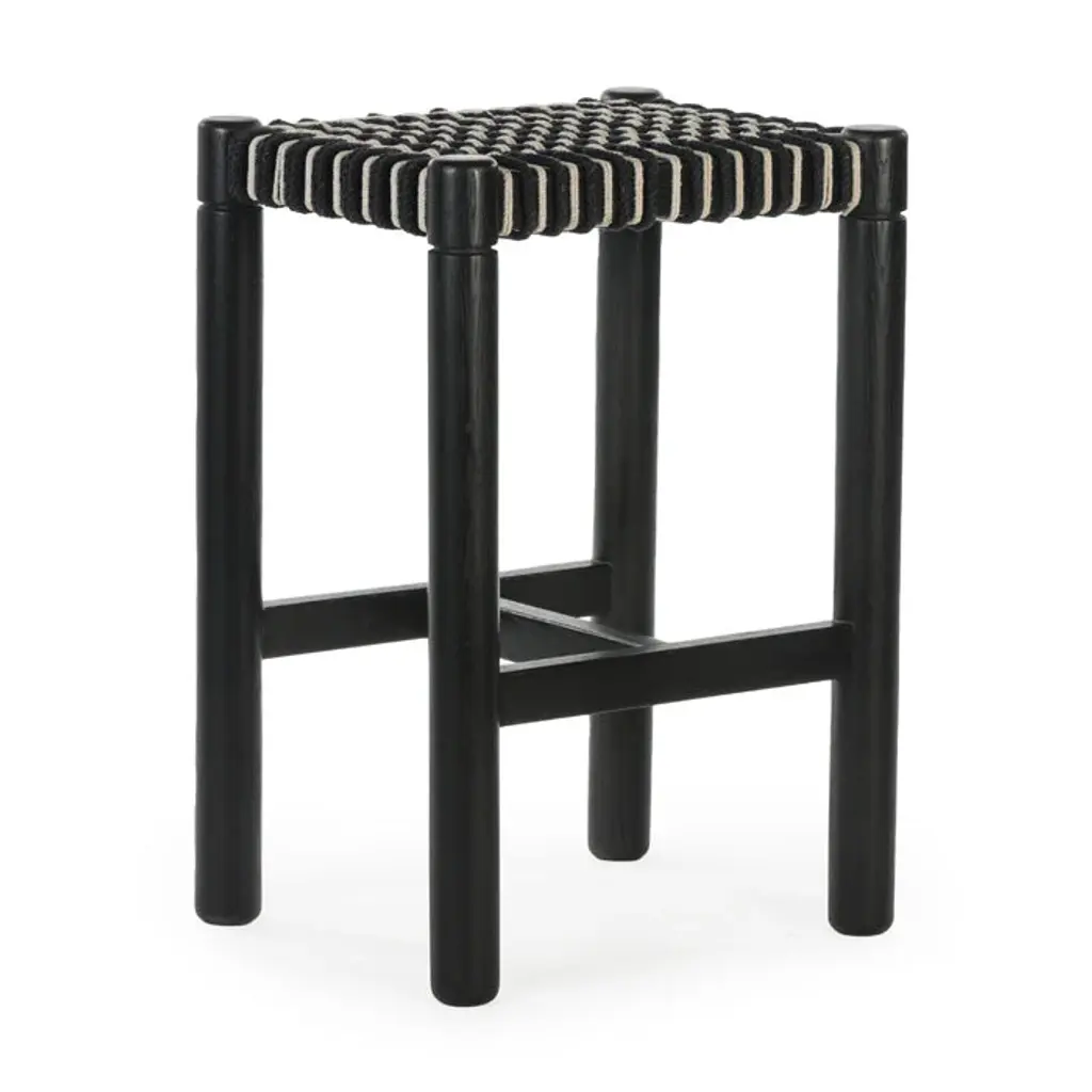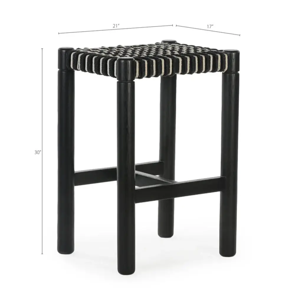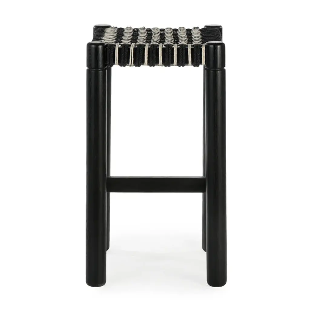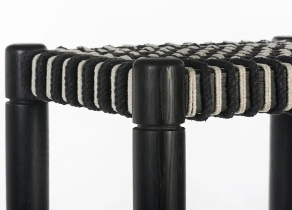 The Lyla bar stool features an intricate, hand woven cord seat with a geometric motif. Turned, solid FSC Certified Oak legs support this refined combination of modern design and traditional craft.:
