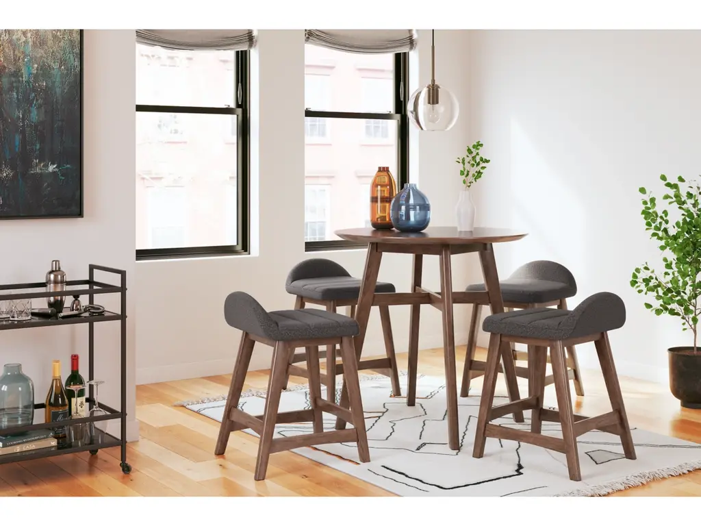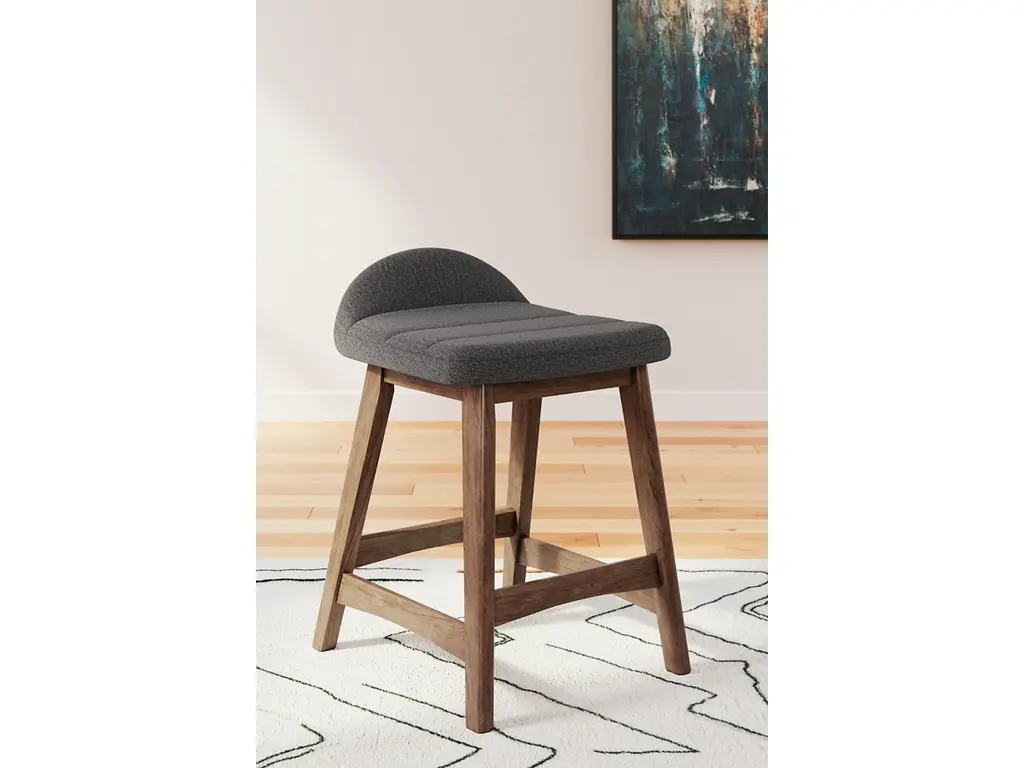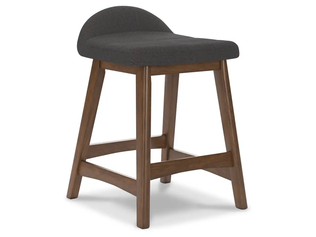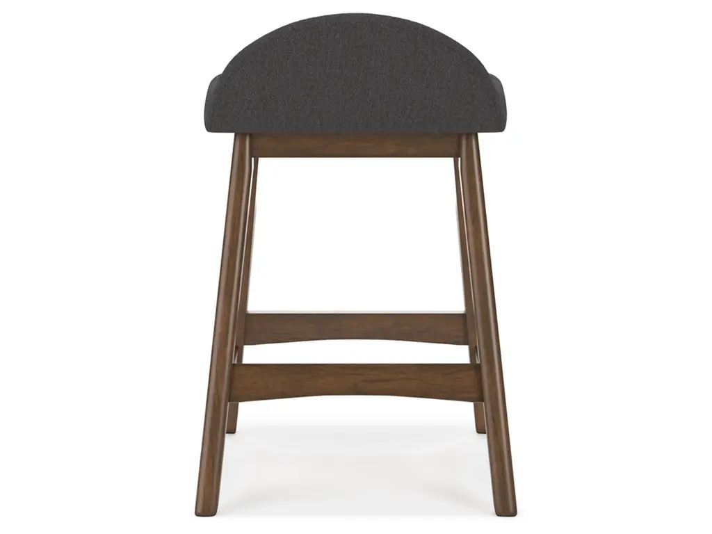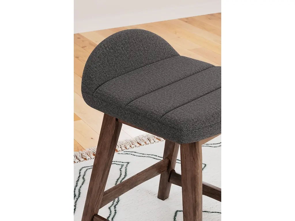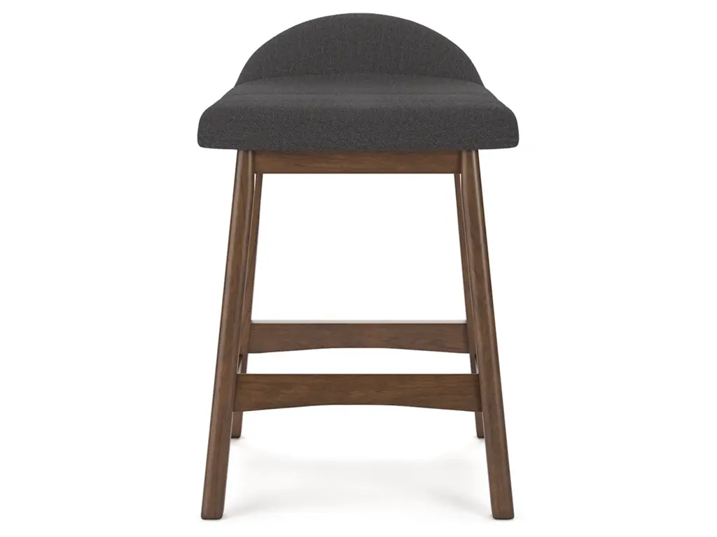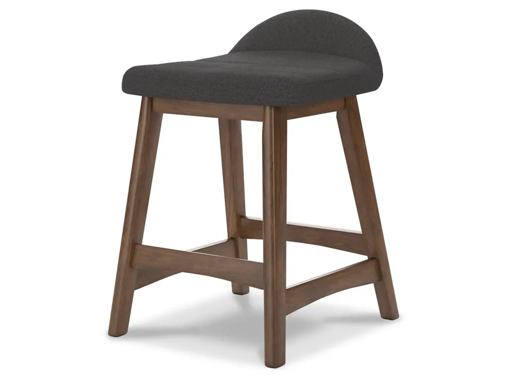 A refreshed take on retro aesthetics. The Lyncott upholstered bar stool adds an air of playful simplicity to your dining space, capturing the architectural language of mid-century stylings. The seat invites the eye with a soft-edged silhouette and charcoal-hued cushion. A casual, yet timeless, finish on the frame creates visual contrast to complete this study in form and function.