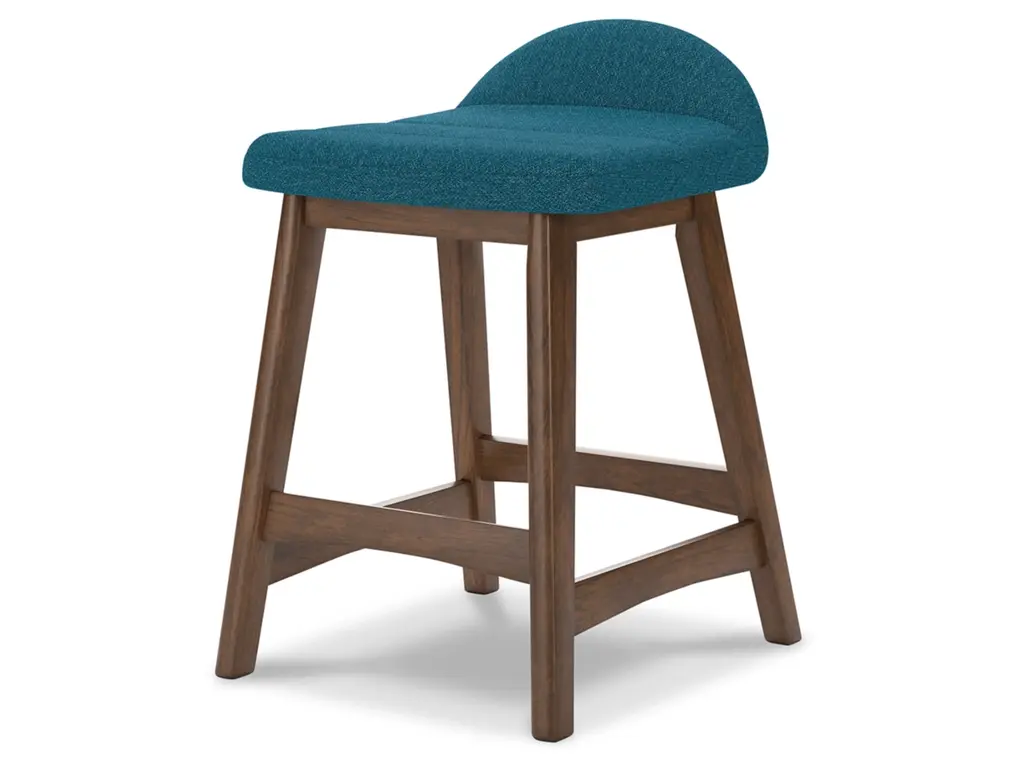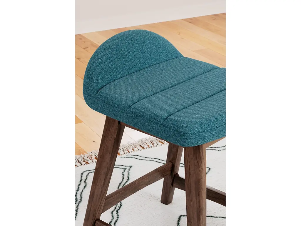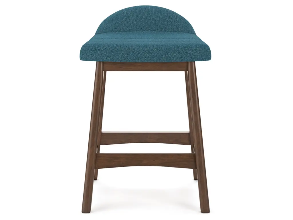 A refreshed take on retro aesthetics. The Lyncott upholstered bar stool adds an air of playful simplicity to your dining space, capturing the architectural language of mid-century stylings. The seat invites the eye with a soft-edged silhouette and chic blue cushion. A casual, yet timeless, finish on the frame creates visual contrast to complete this study in form and function.