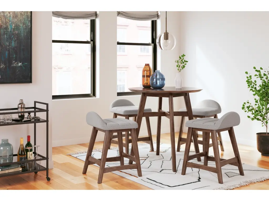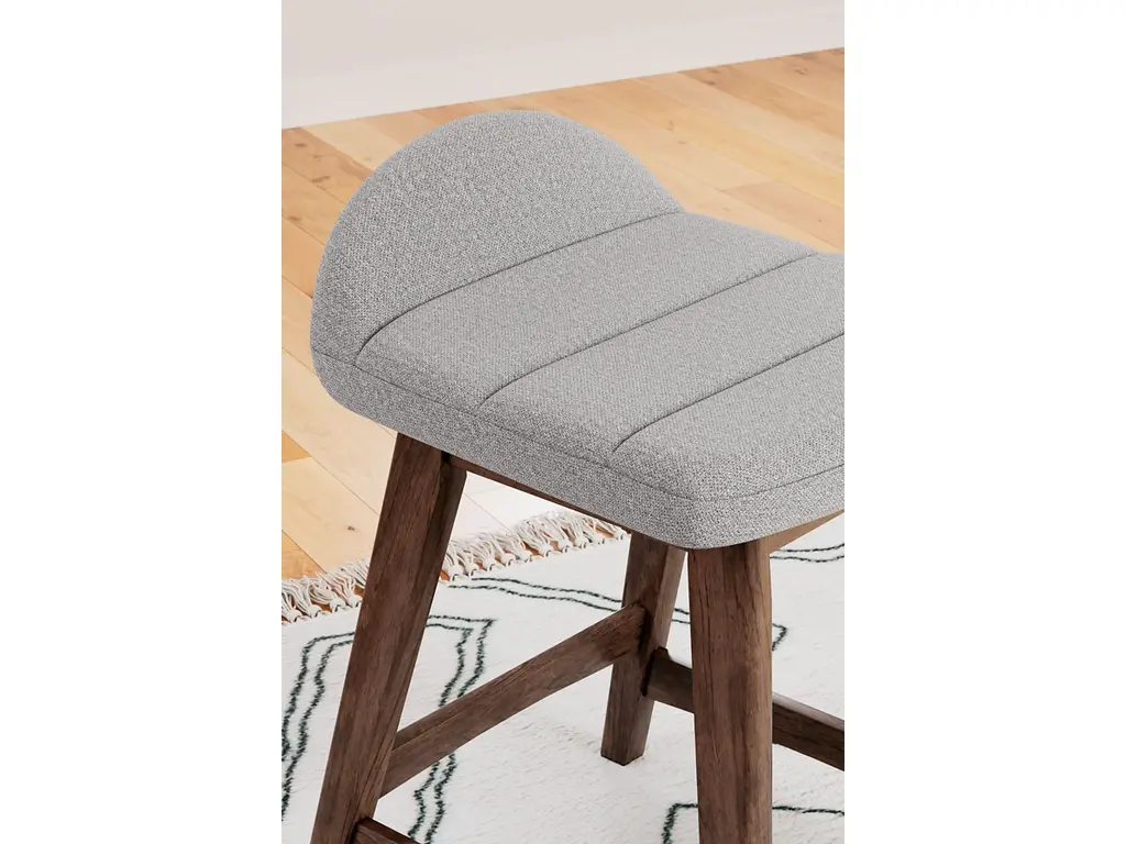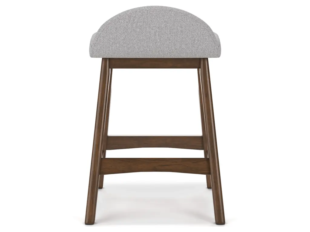 A refreshed take on retro aesthetics. The Lyncott upholstered bar stool adds an air of playful simplicity to your dining space, capturing the architectural language of mid-century stylings. The seat invites the eye with a soft-edged silhouette and light gray cushion. A casual, yet timeless, finish on the frame creates visual contrast to complete this study in form and function.